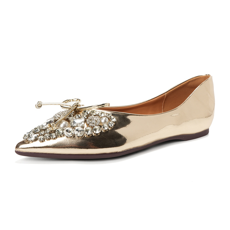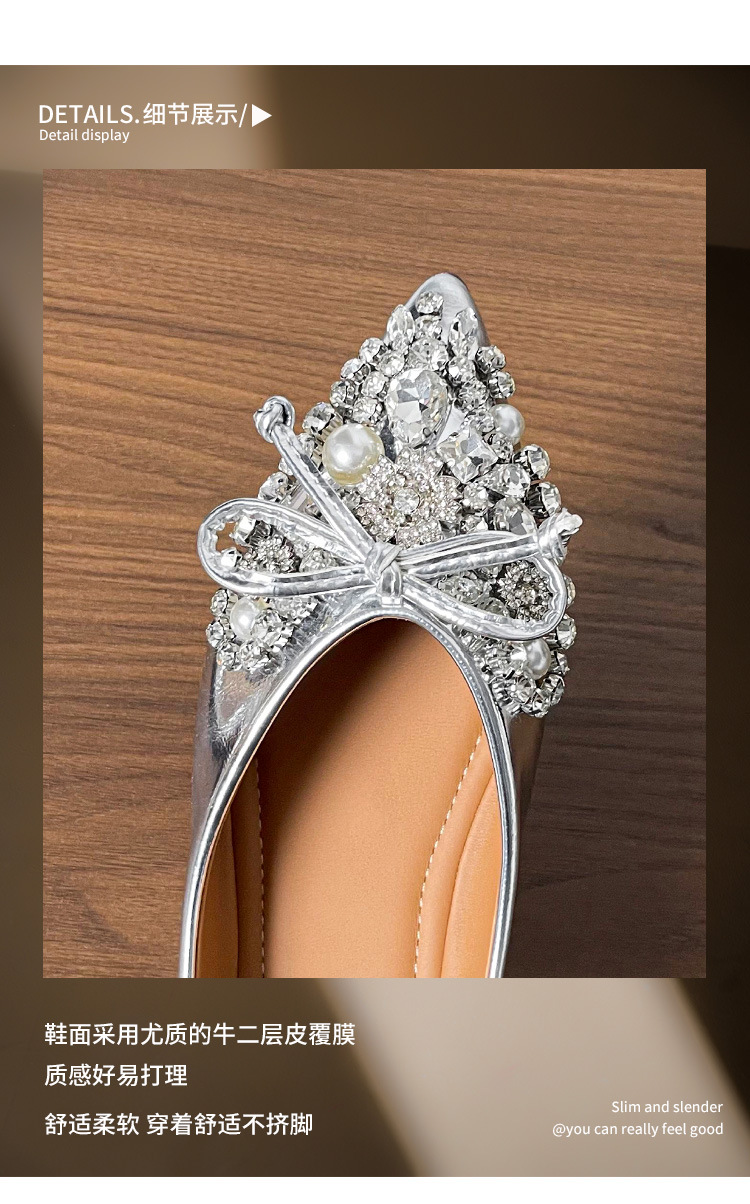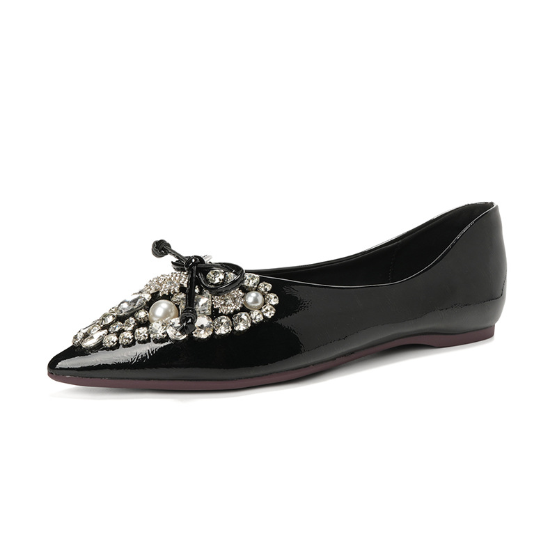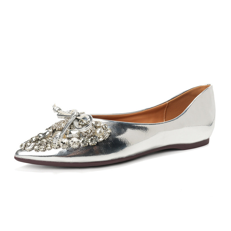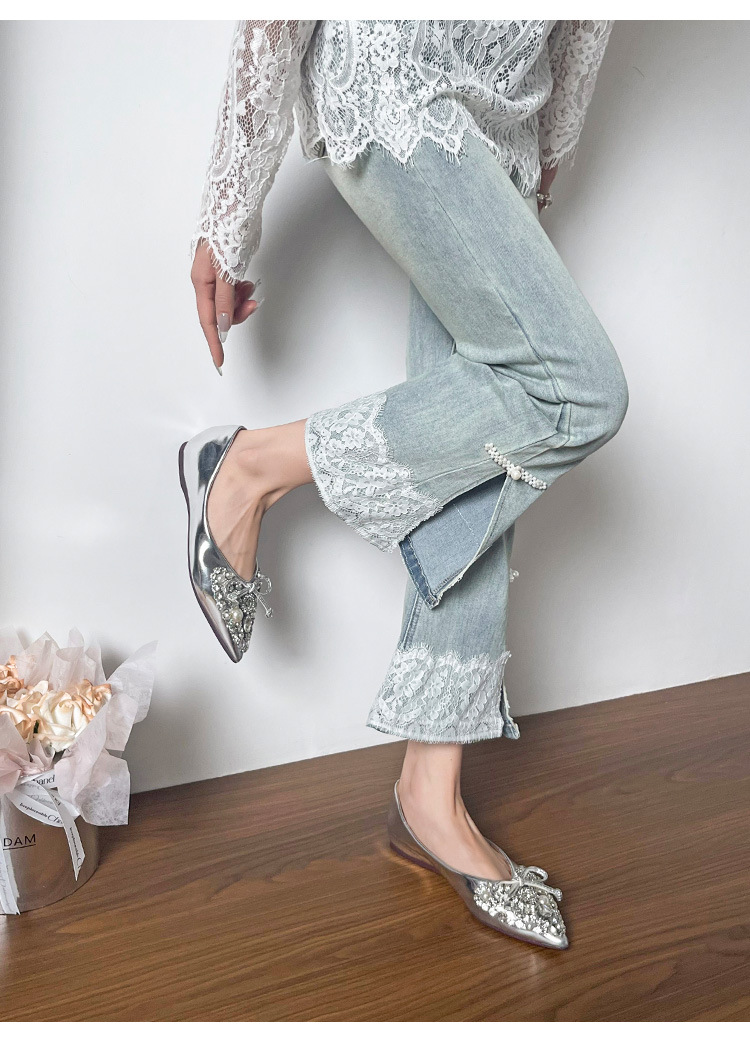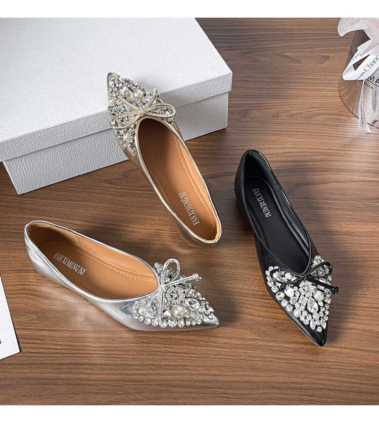 789-41 여름 신상품 여성용 라인스톤 뾰족코 구두 리본 장식 부드러운 밑창 편안한 키높이 플랫 슈즈