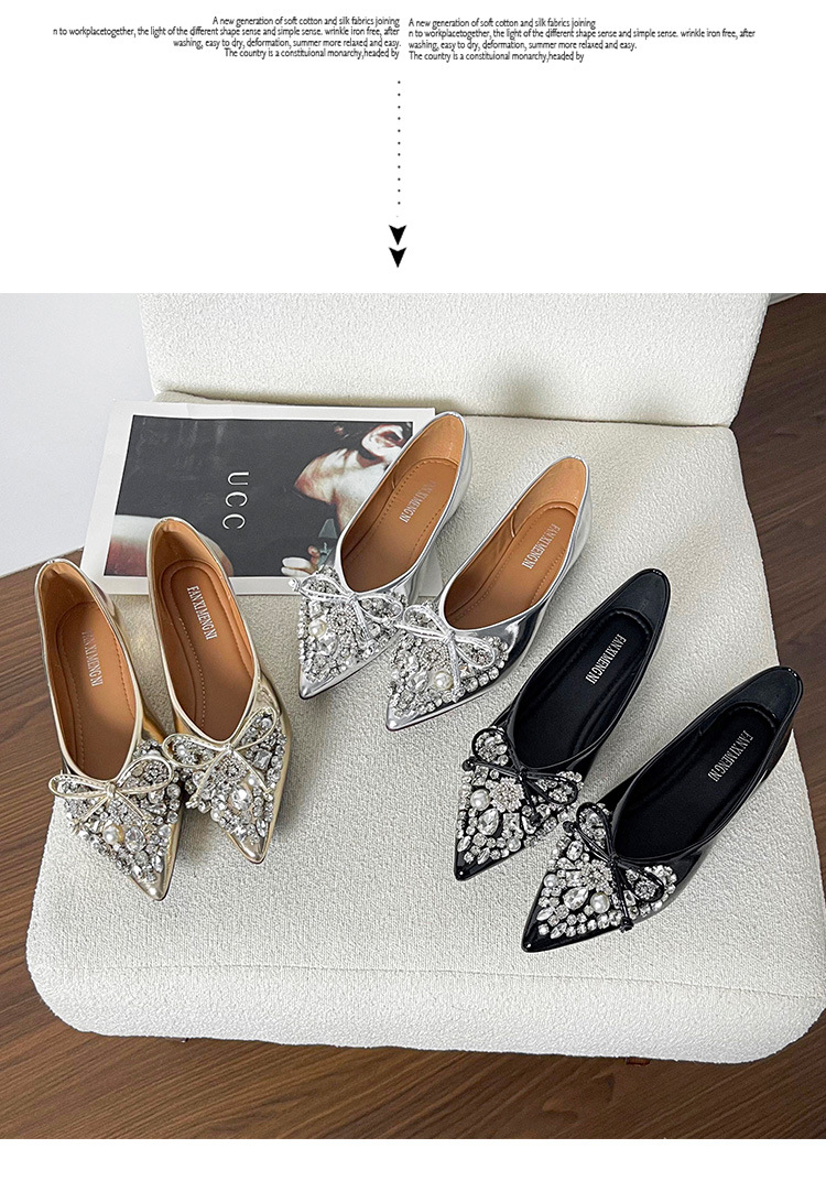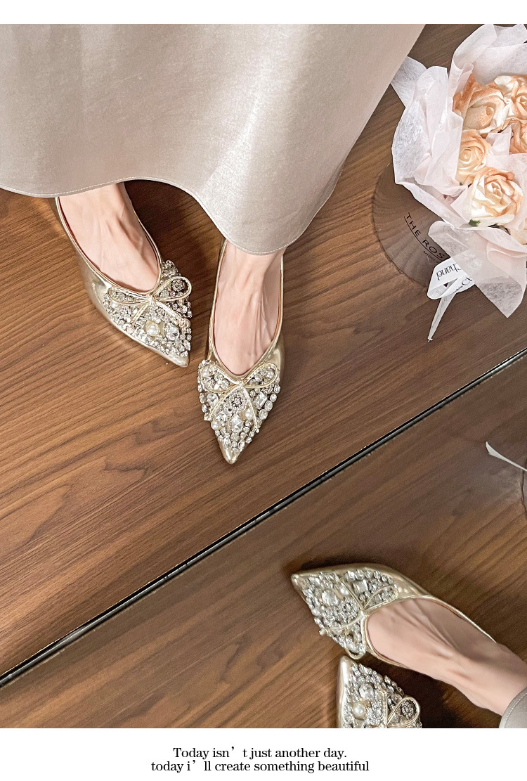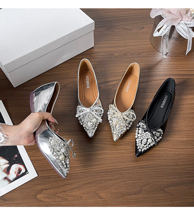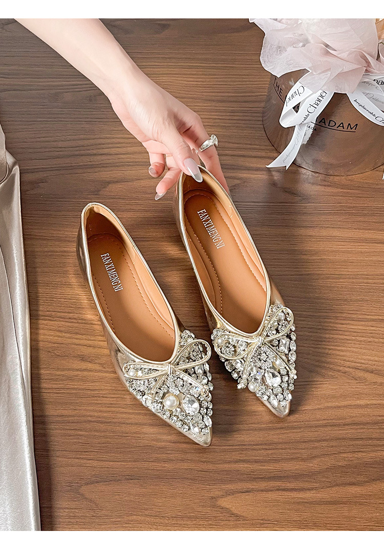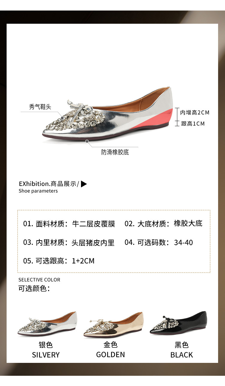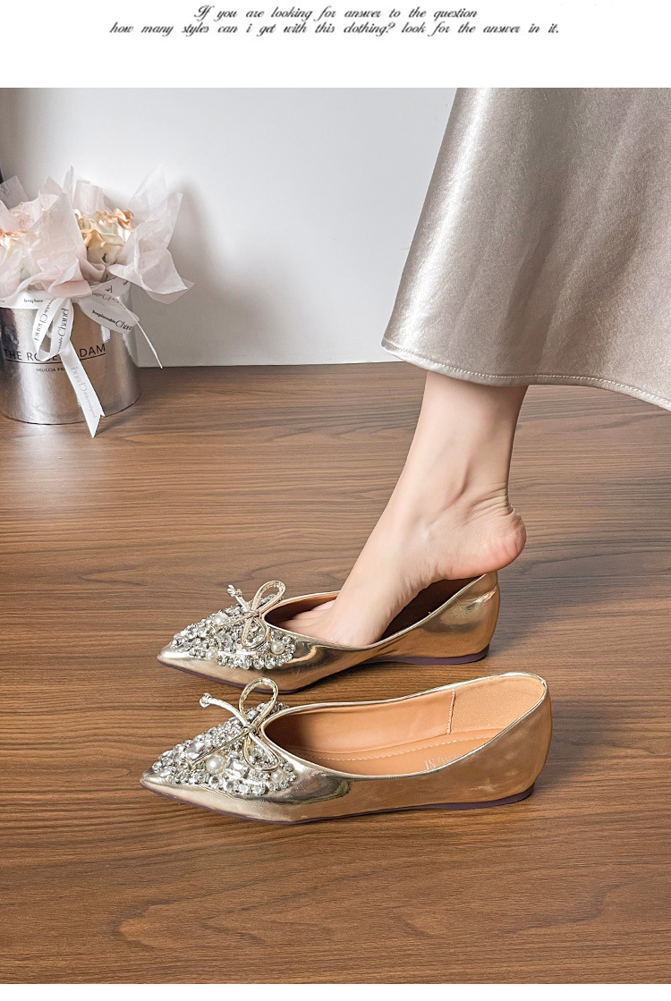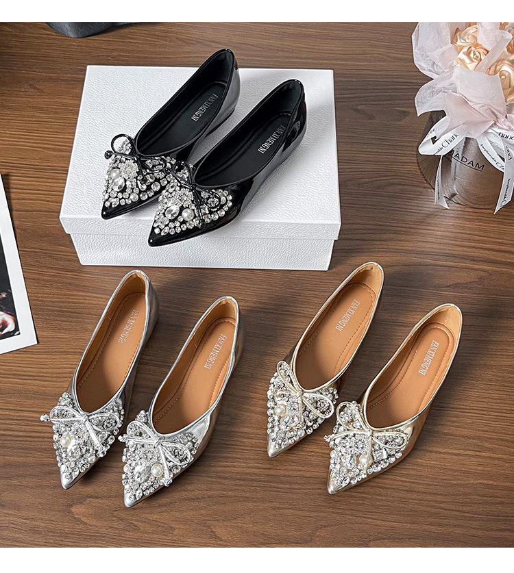 789-41 여름 신상품 여성용 라인스톤 뾰족코 구두 리본 장식 부드러운 밑창 편안한 키높이 플랫 슈즈스토어 가기