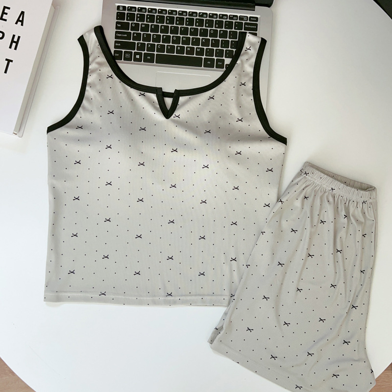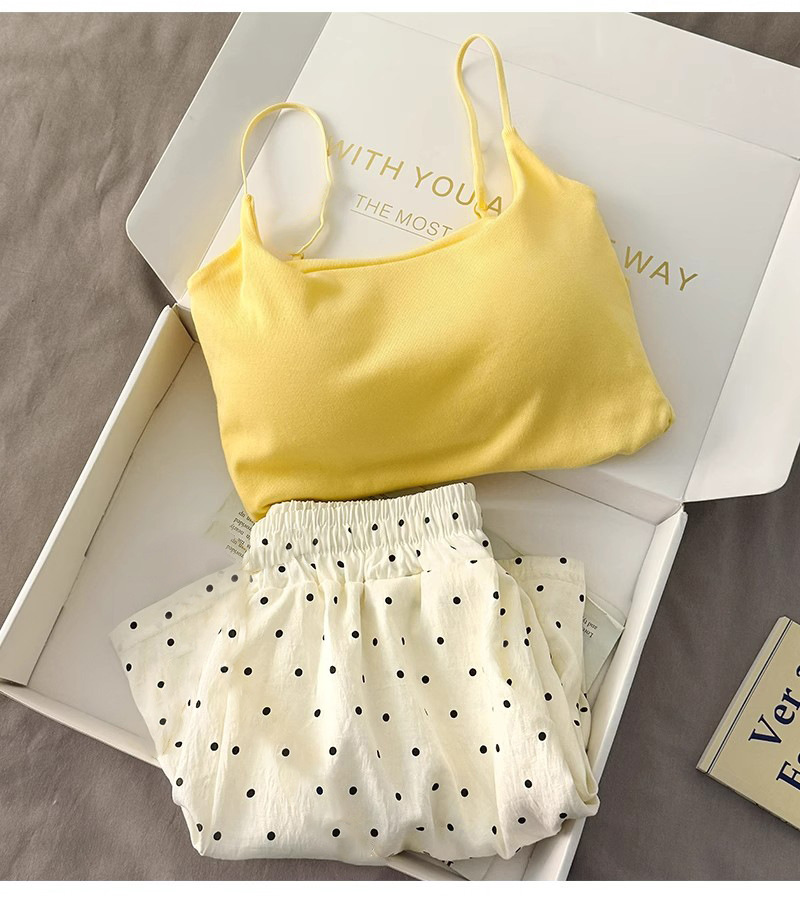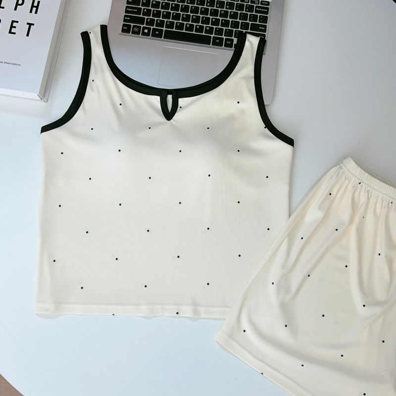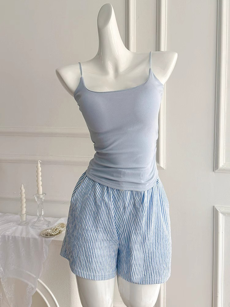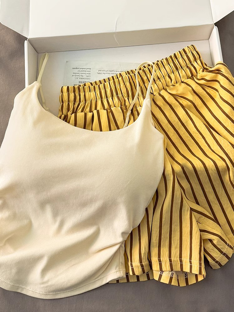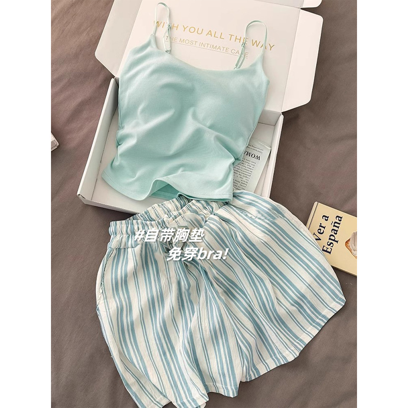 가슴 패드가 있는 여성용 올인원 캐미솔 여름 순수한 욕망 스타일 서스펜더 스트라이프 반바지 잠옷 홈웨어 투피스 세트스토어 가기