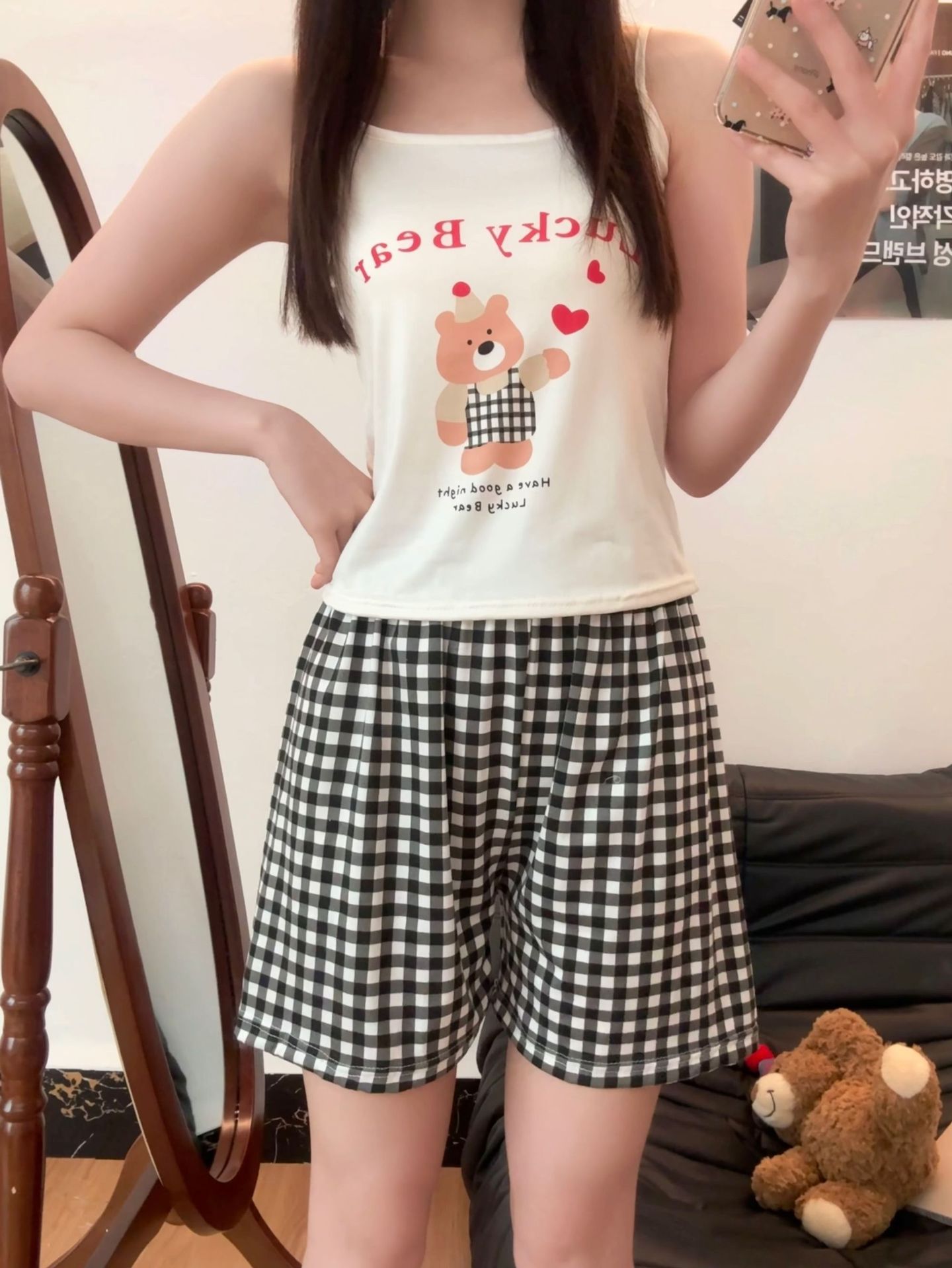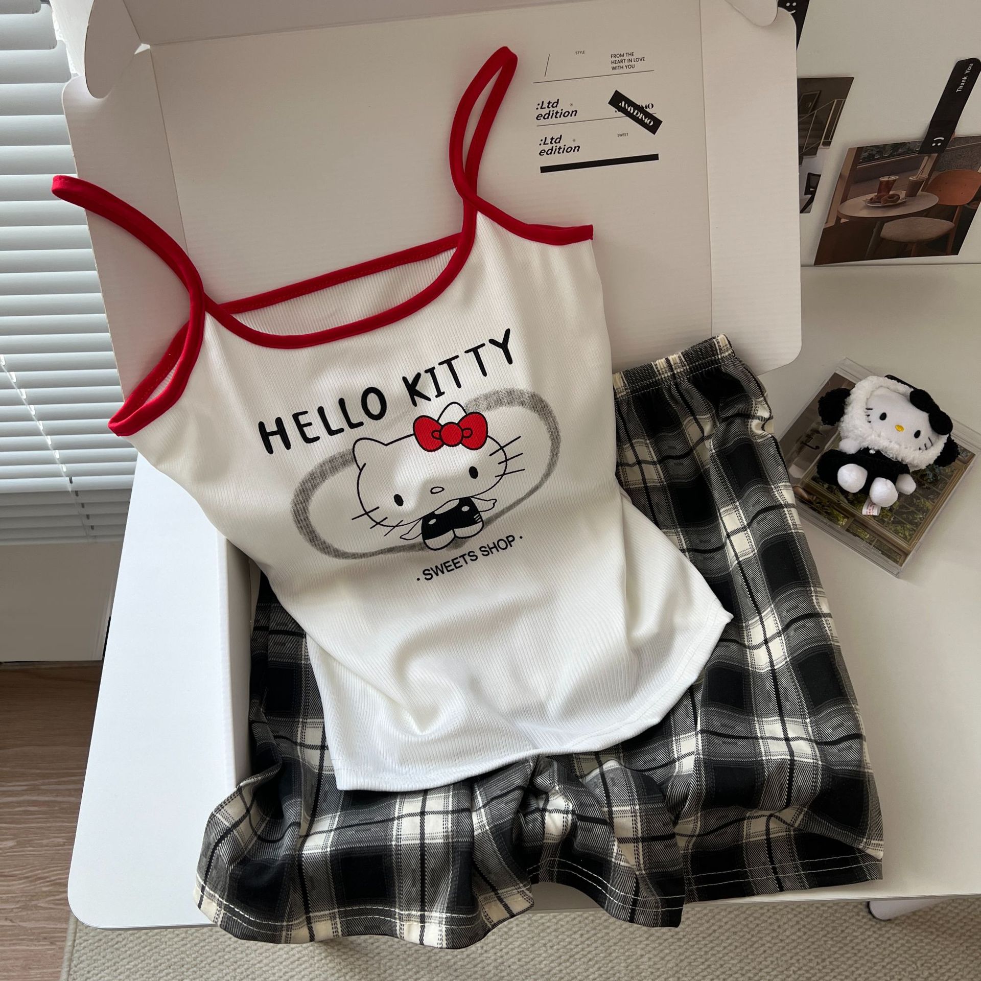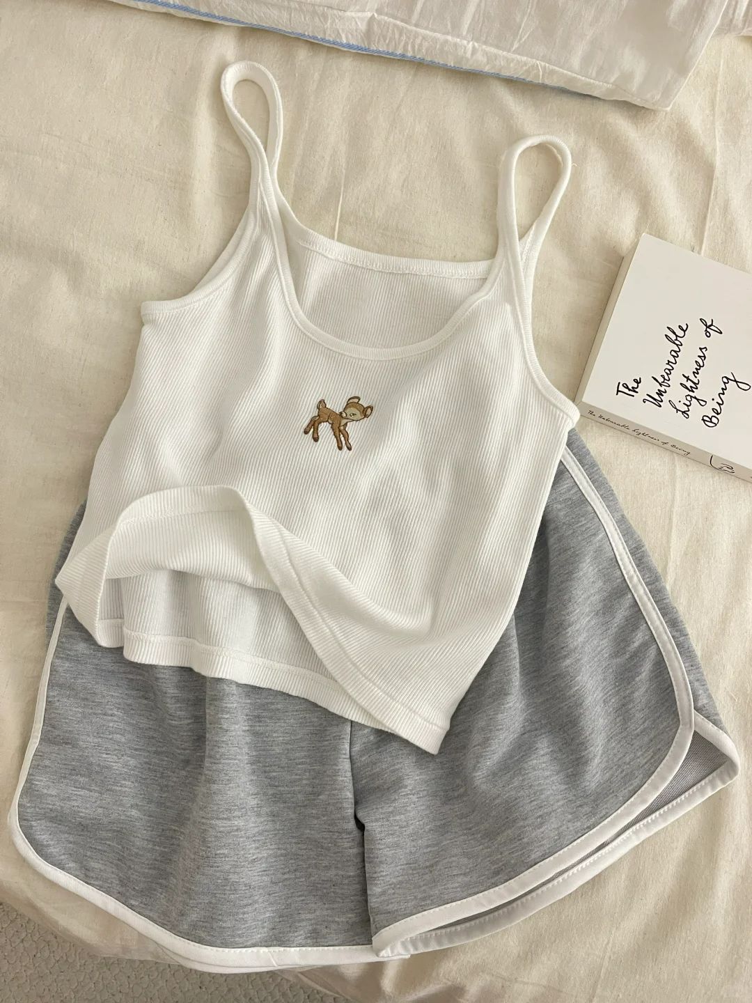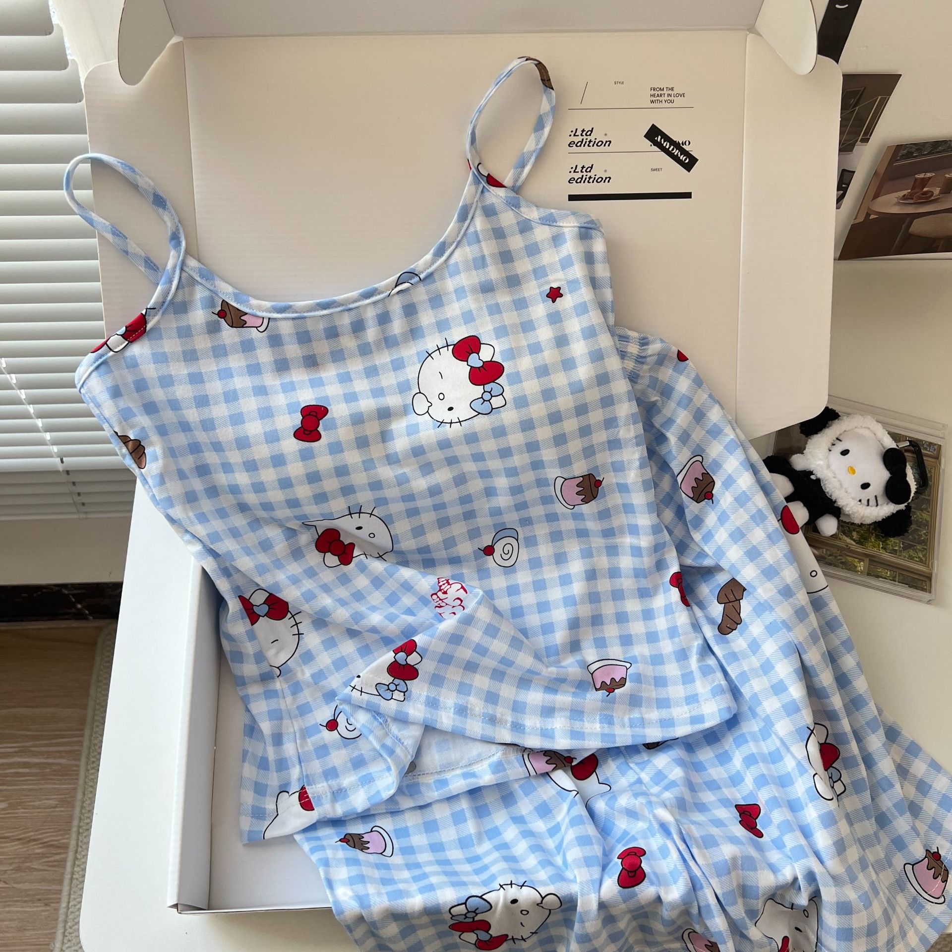 가슴 패드가 있는 여성용 올인원 캐미솔 여름 순수한 욕망 스타일 서스펜더 스트라이프 반바지 잠옷 홈웨어 투피스 세트스토어 가기