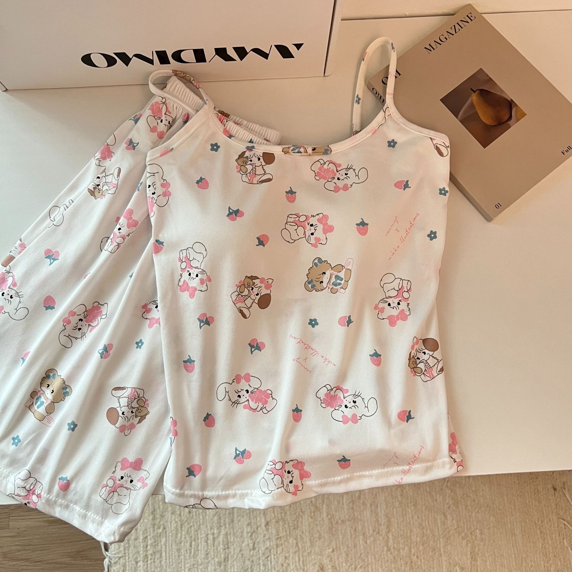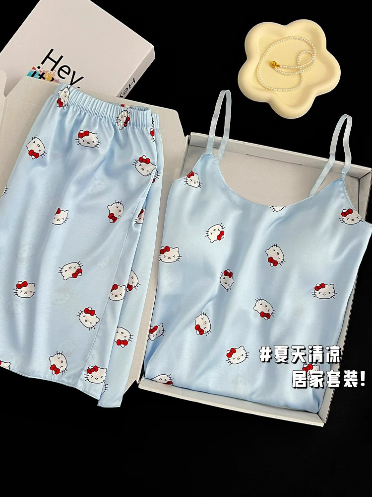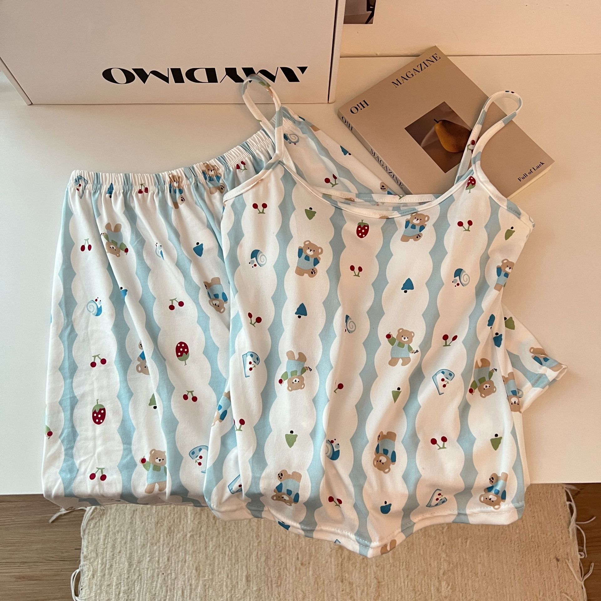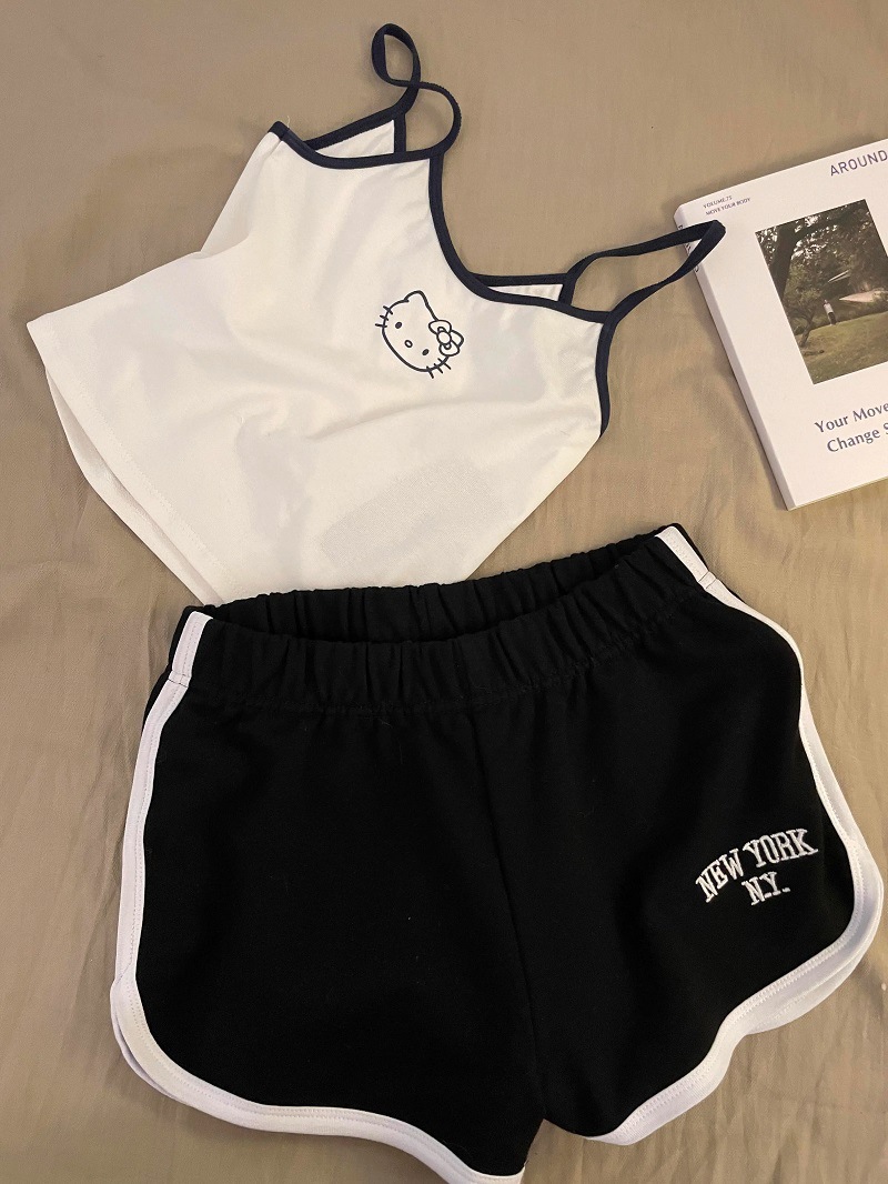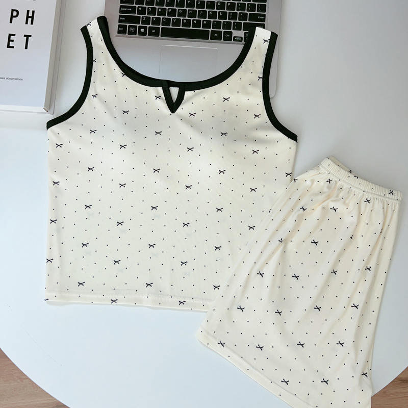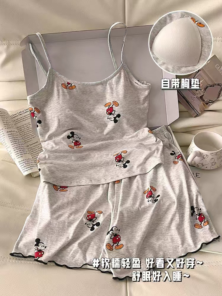 가슴 패드가 있는 여성용 올인원 캐미솔 여름 순수한 욕망 스타일 서스펜더 스트라이프 반바지 잠옷 홈웨어 투피스 세트