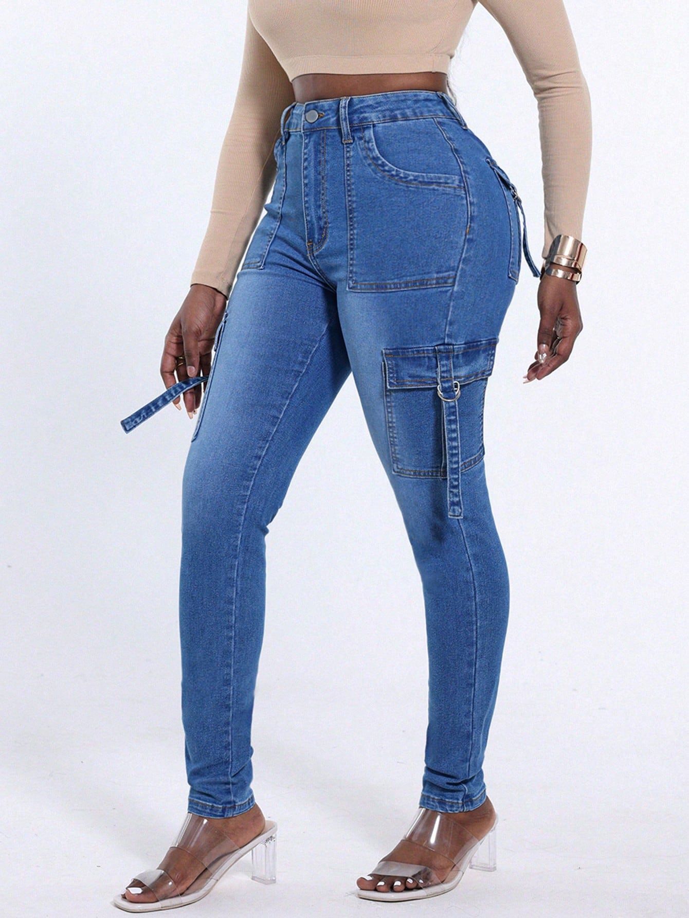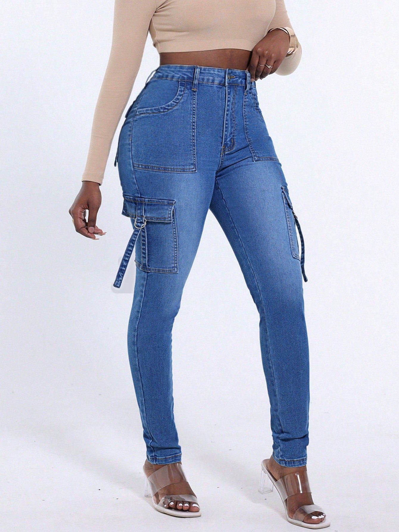 Amazon Wish AliExpress 스트레치 레이스 업 플랩 포켓 슬림핏 엉덩이 리프팅 여성 데님 바지