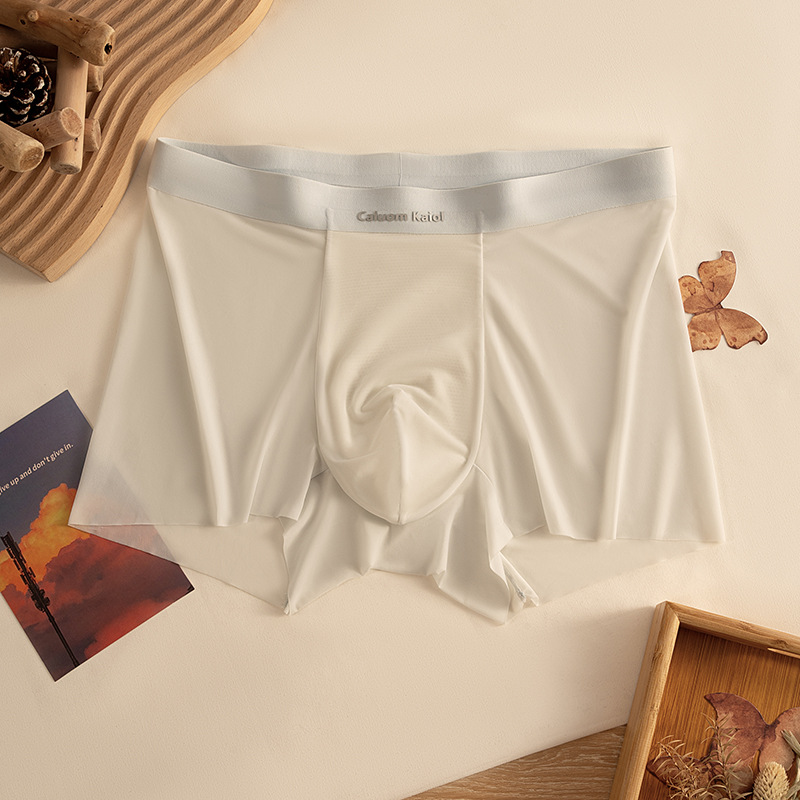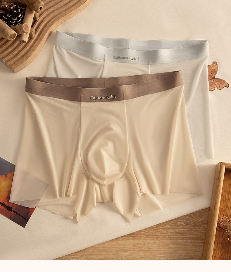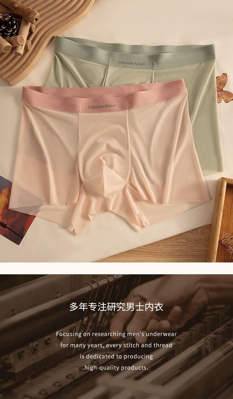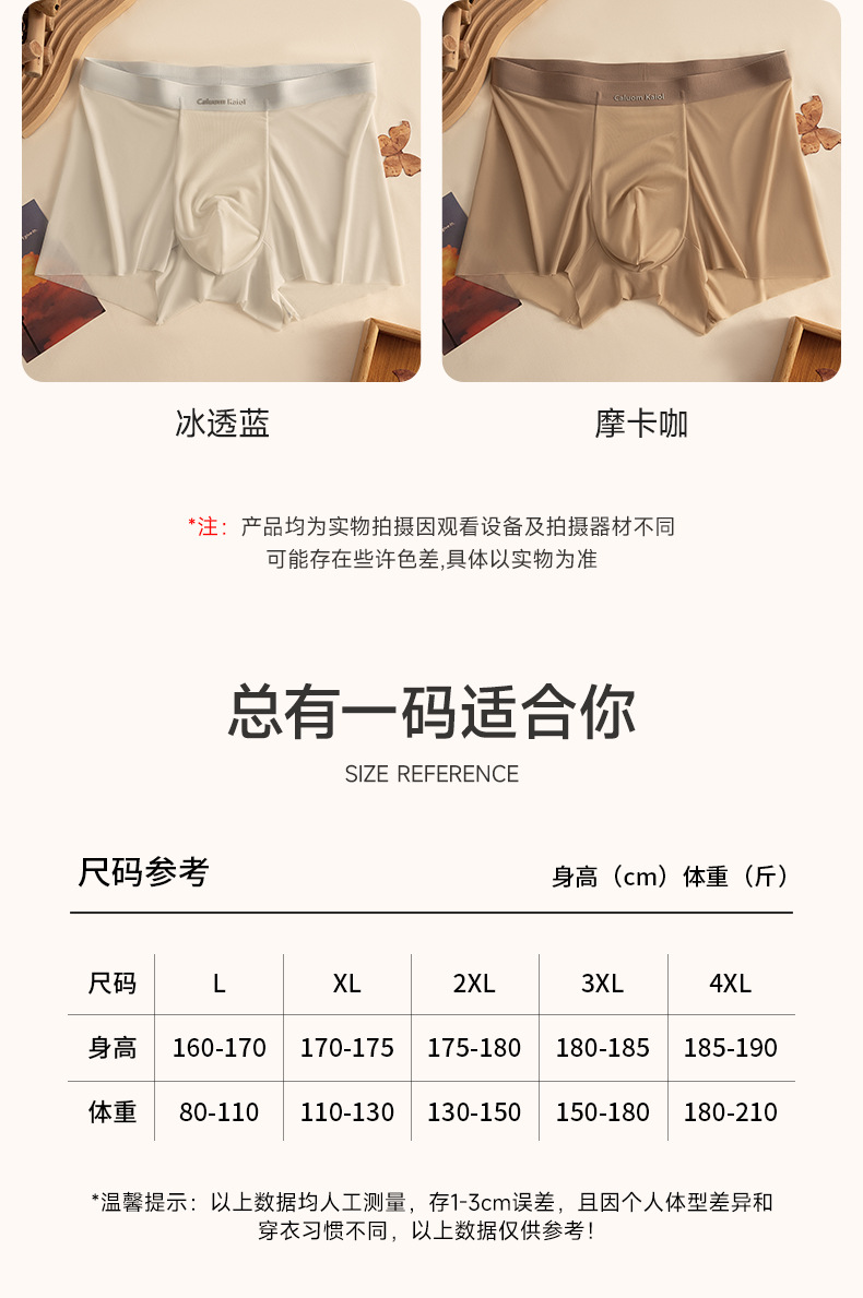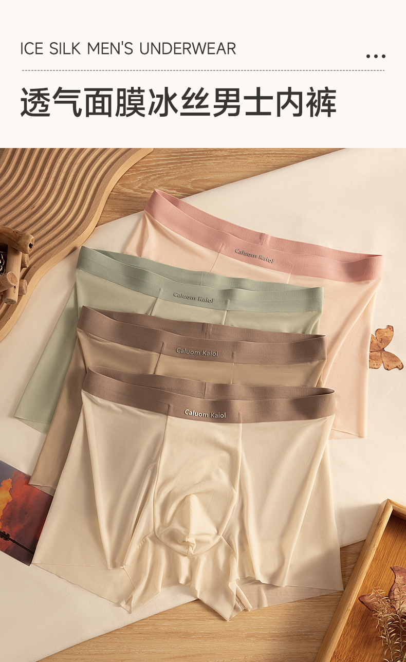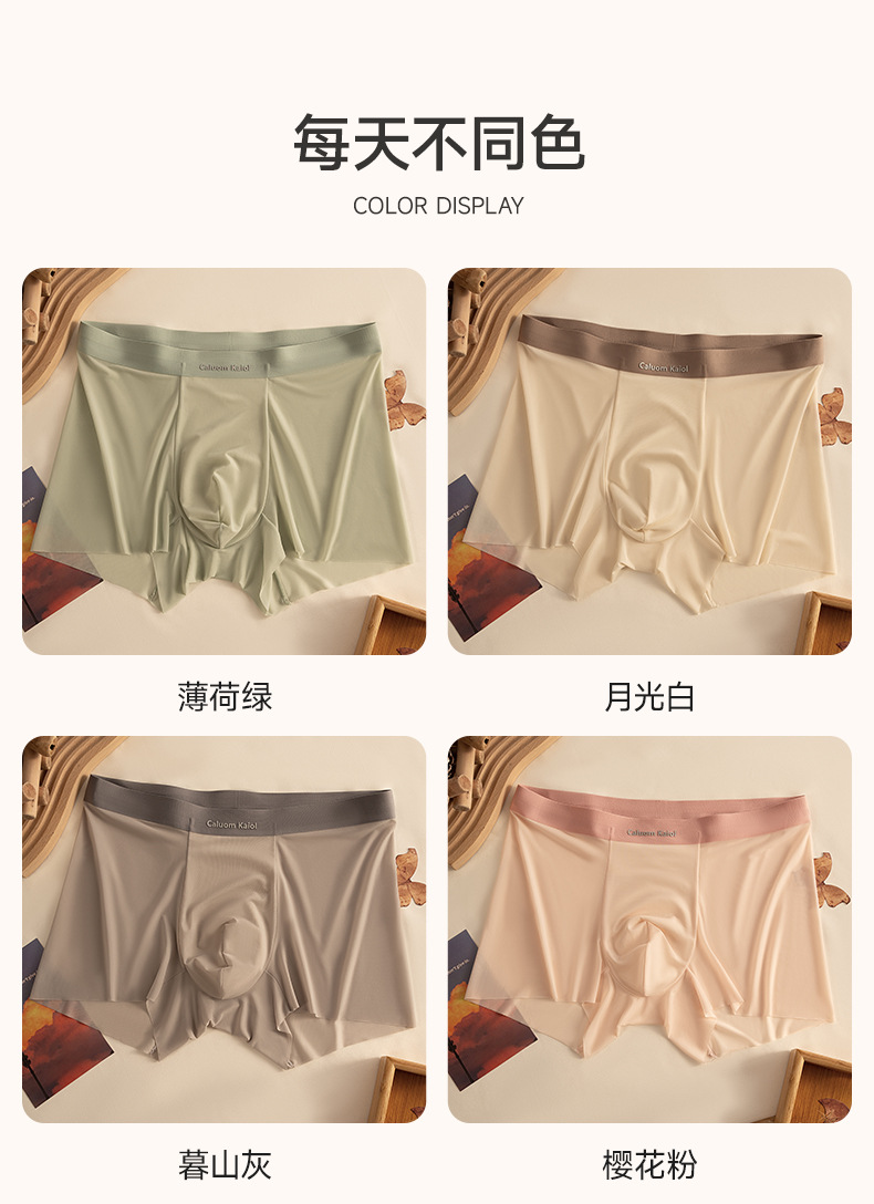 2025 새로운 여름 대비 색상 원활한 얼음 실크 남자 복서 팬티 초박형 0.01 속건성 통기성 얼음 사각형스토어 가기