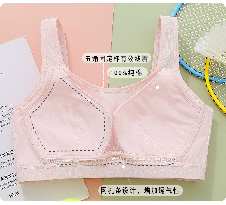여자 고등학생 스포츠 충격 방지 와이어 프리 브라 중학생 및 큰 어린이 발달 조끼 청소년 속옷