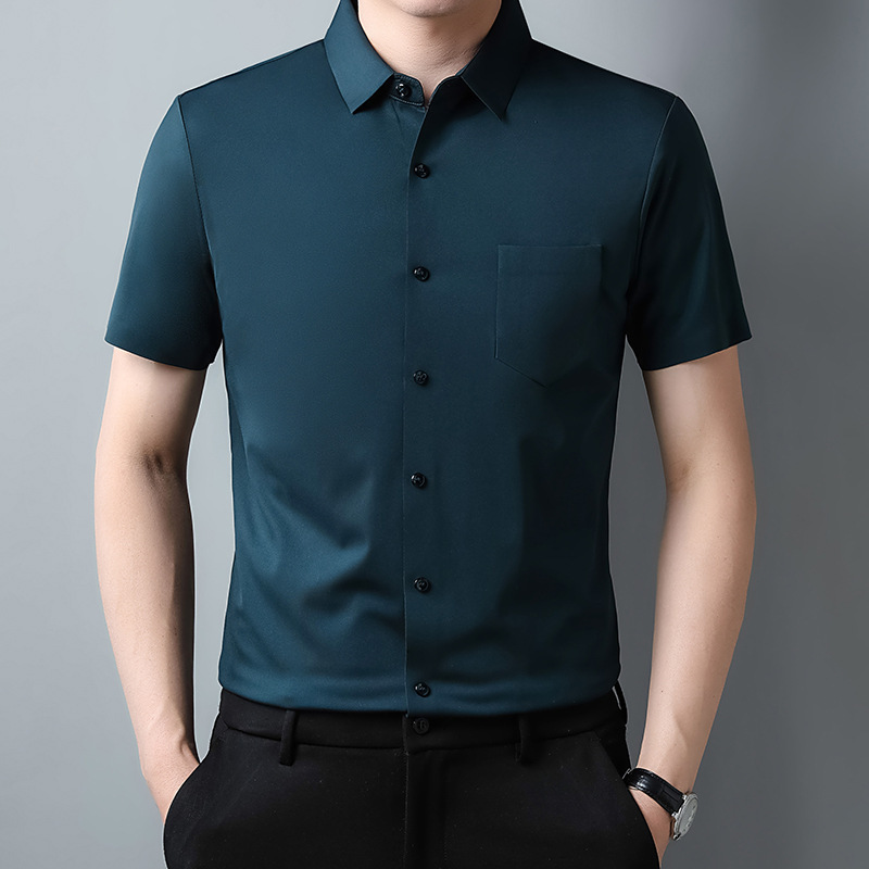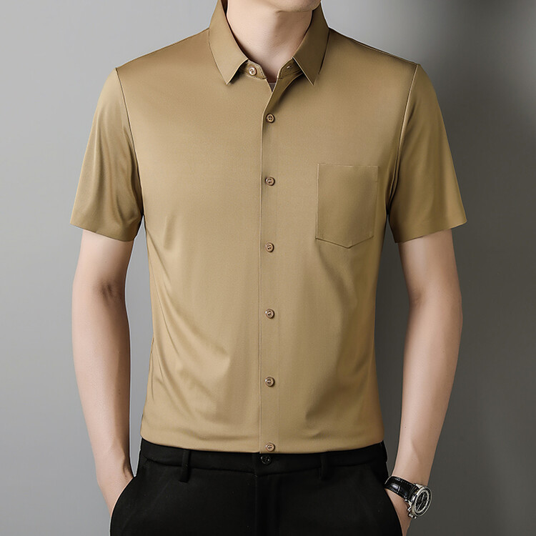 남성용 반팔 셔츠 라펠 솔리드 컬러 카디건 여름 짧은 셔츠 트렌디 캐주얼 포켓 셔츠 남성용 반팔