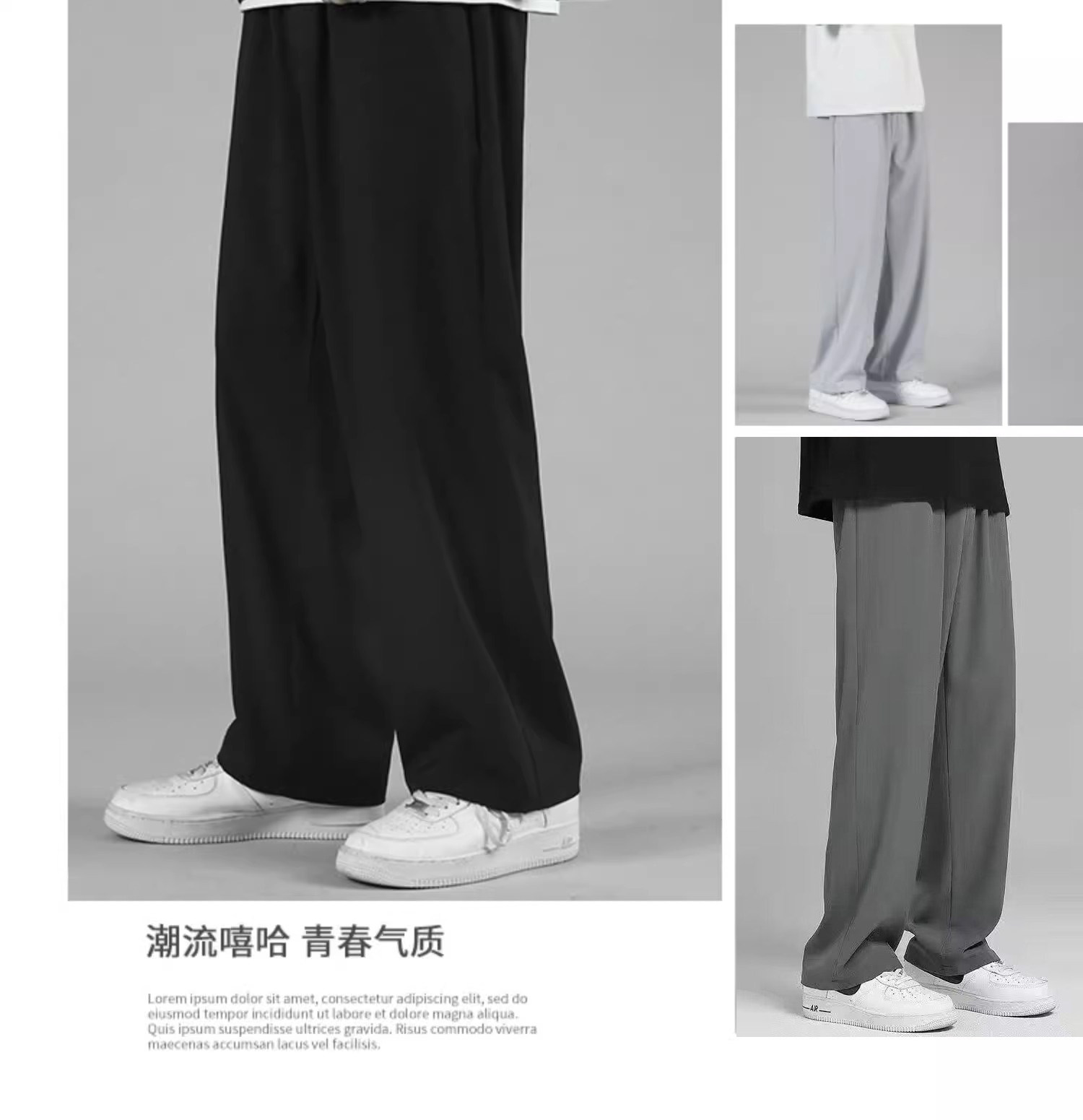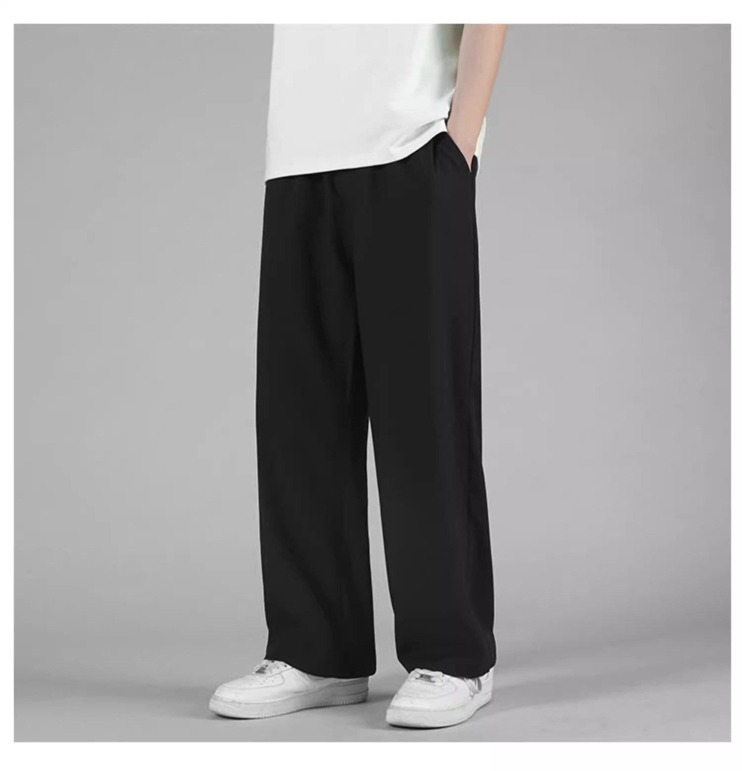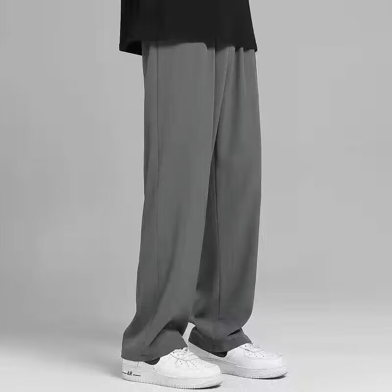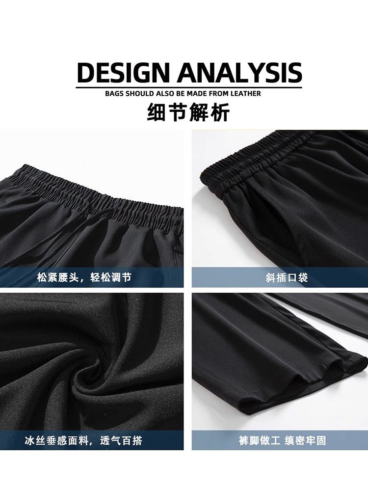 남성용 여름 아이스 실크 캐주얼 바지, 얇고 시원하며 속건성 스포츠 스트레이트 블랙 트렌디한 남성용 다용도 루즈 팬츠