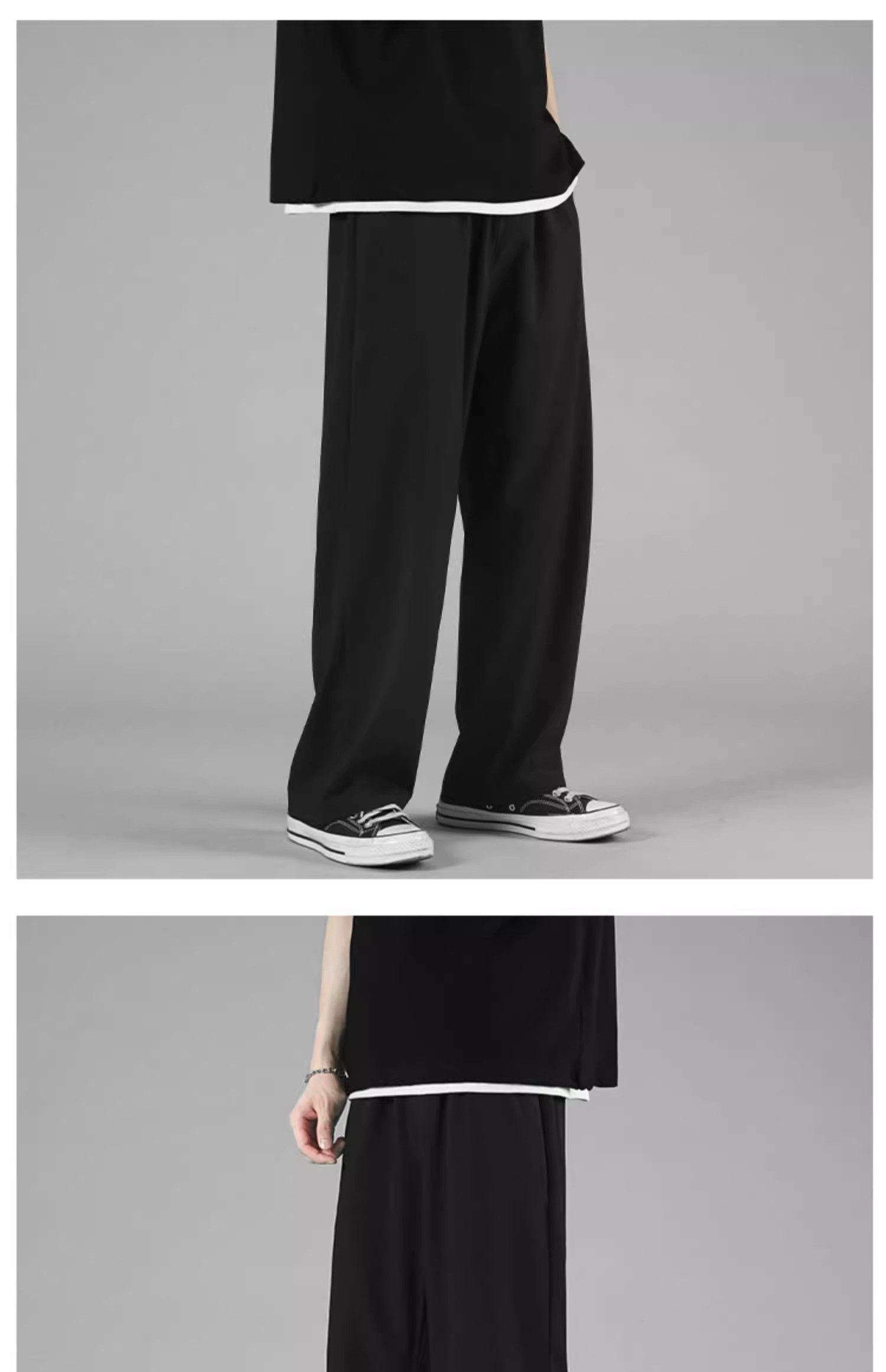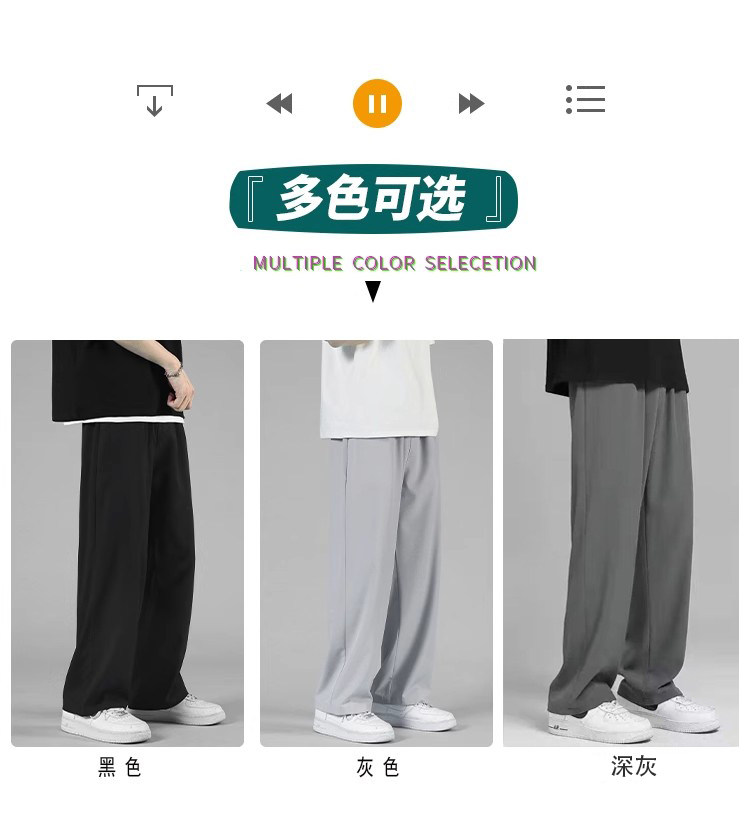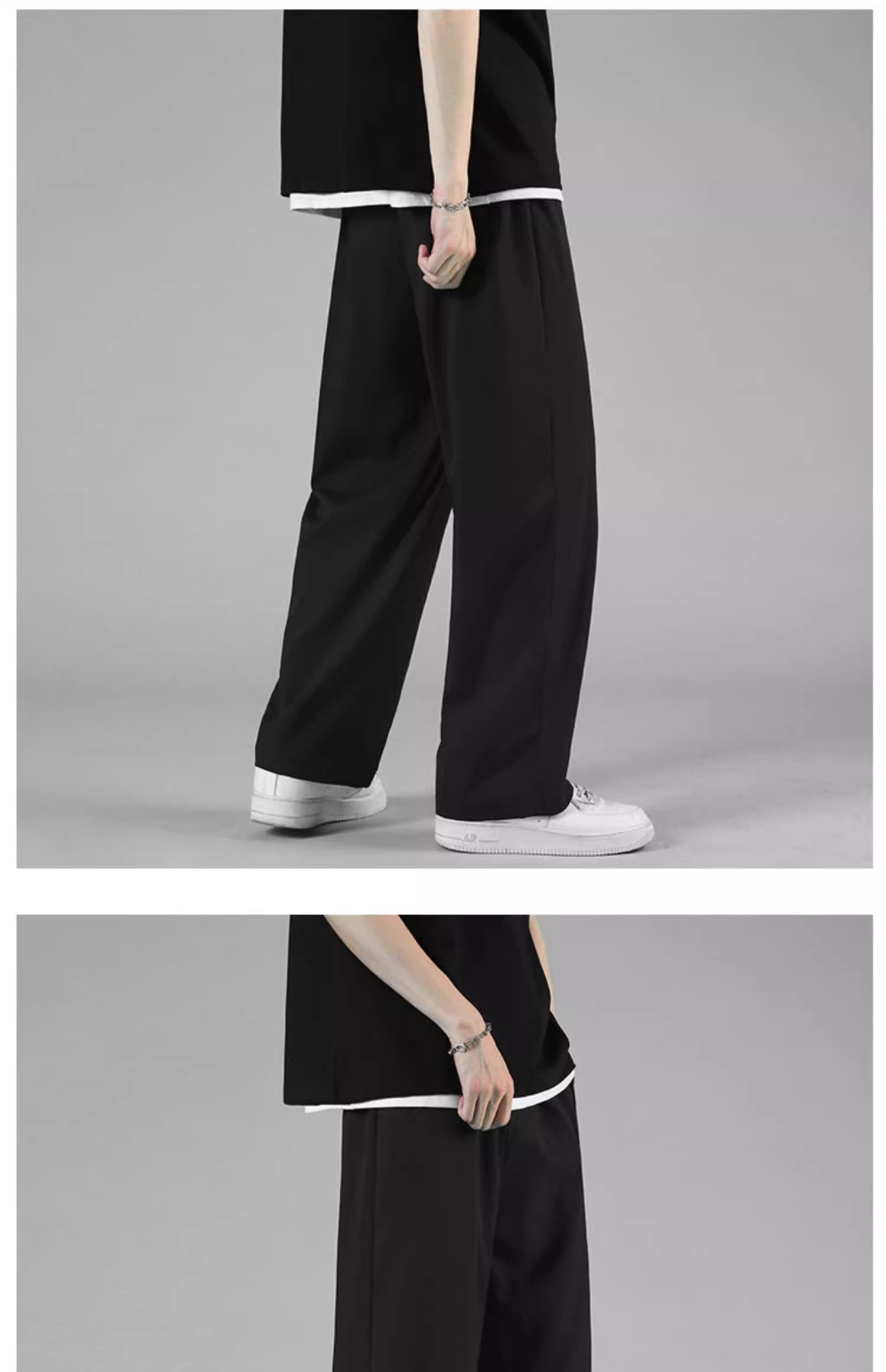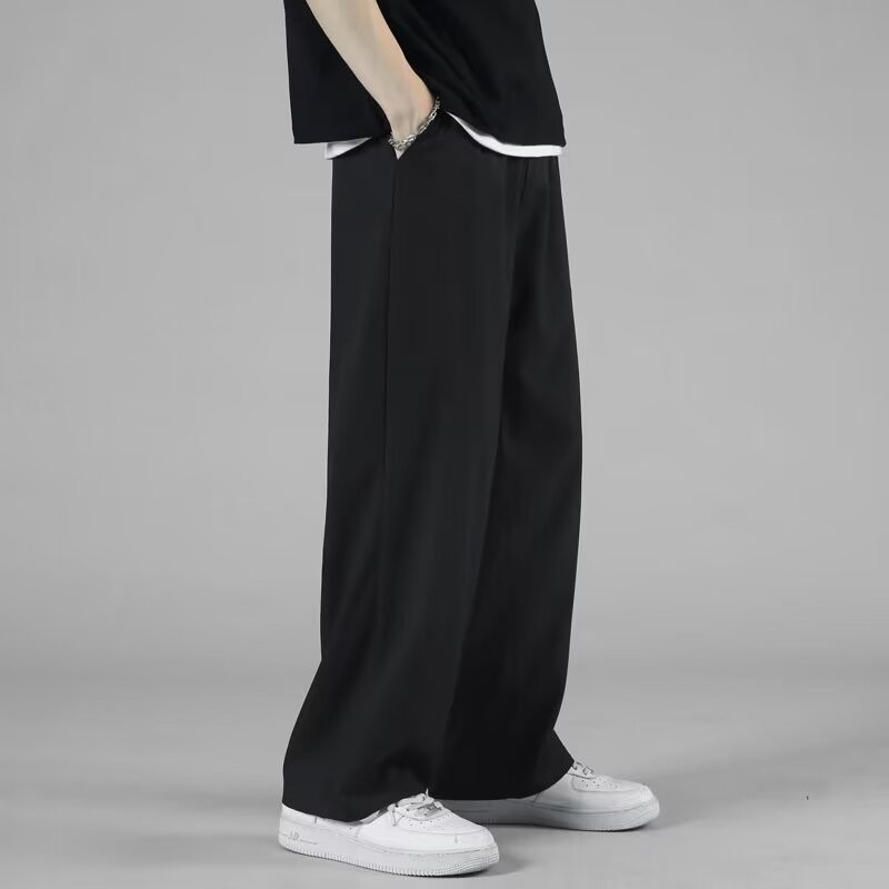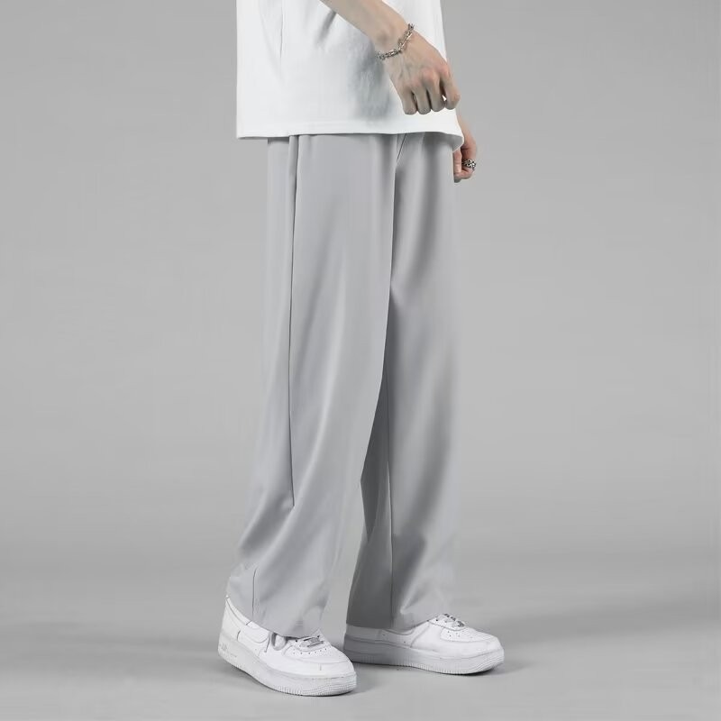 남성용 여름 아이스 실크 캐주얼 바지, 얇고 시원하며 속건성 스포츠 스트레이트 블랙 트렌디한 남성용 다용도 루즈 팬츠