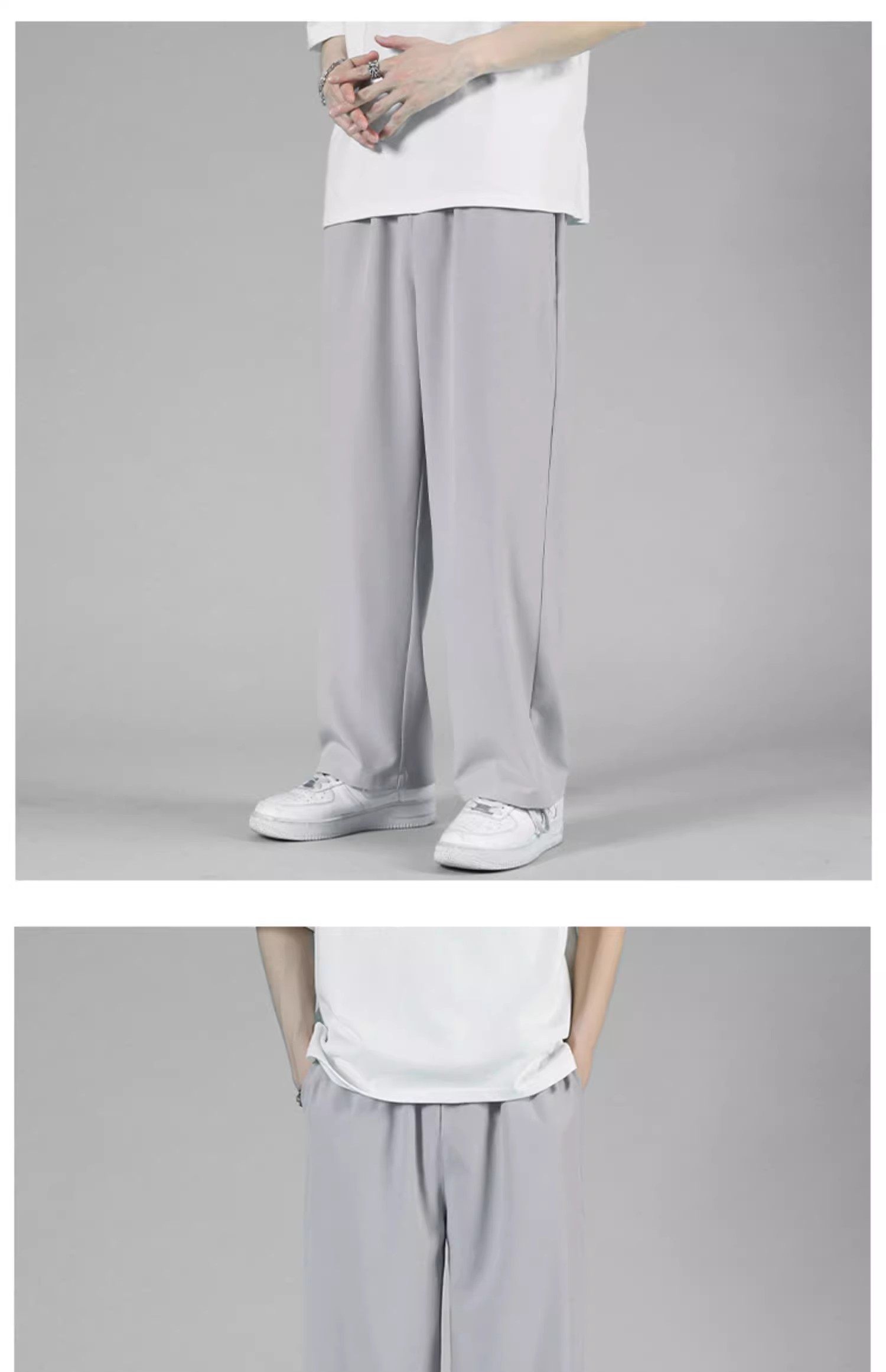 남성용 여름 아이스 실크 캐주얼 바지, 얇고 시원하며 속건성 스포츠 스트레이트 블랙 트렌디한 남성용 다용도 루즈 팬츠스토어 가기