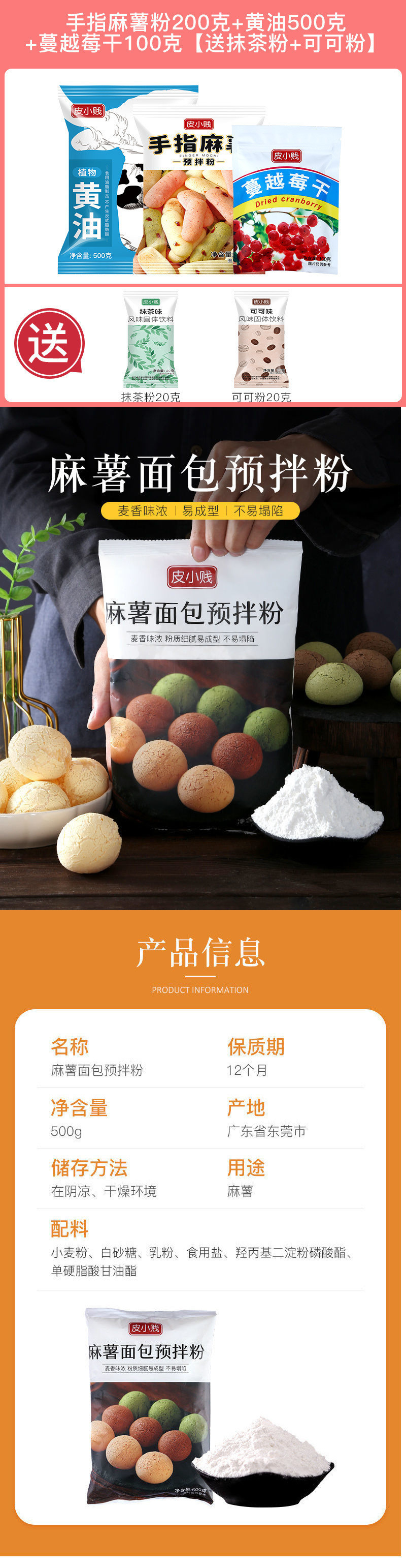 모찌 프리믹스 가루 가정용 모찌볼 베이킹 재료 한국식 Q-탄성 모찌빵 프리믹스 가루 상업용 도매스토어 가기