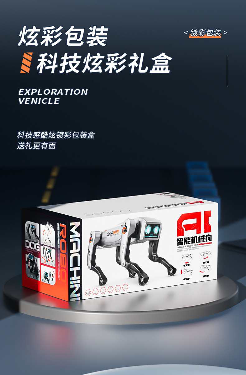 AI 지능형 로봇 개 음성 제어 원격 제어 프로그래밍 ai 핸드 쉐이크 반전 생체 공학 동반자 4 다리 기계 개 장난감스토어 가기