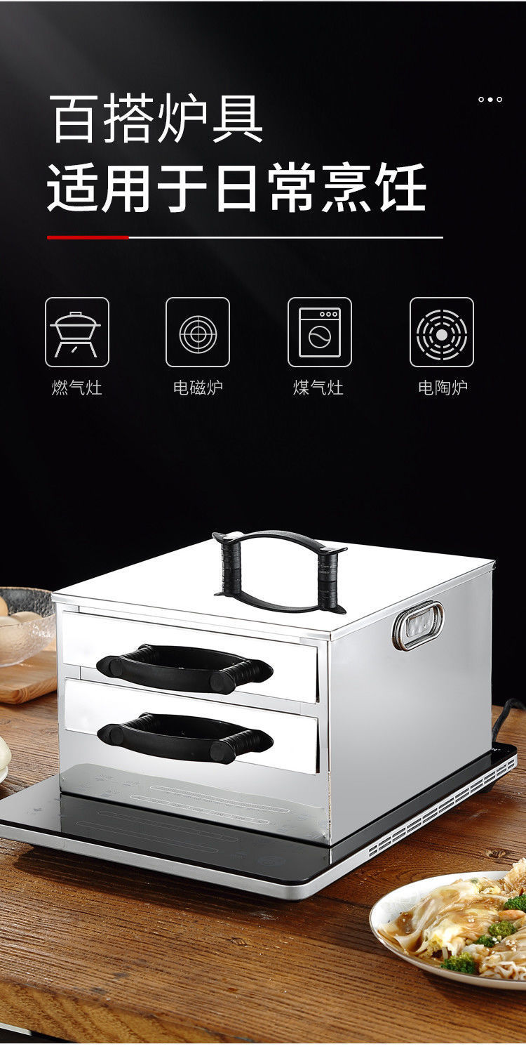 • 더블 레이어(평평한 찜 트레이 2개 + 구멍이 있는 찜 트레이 1개)
