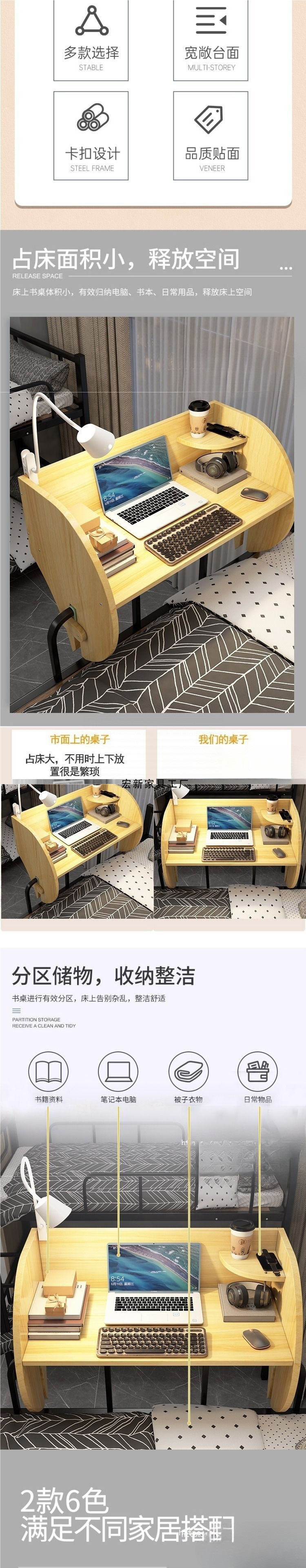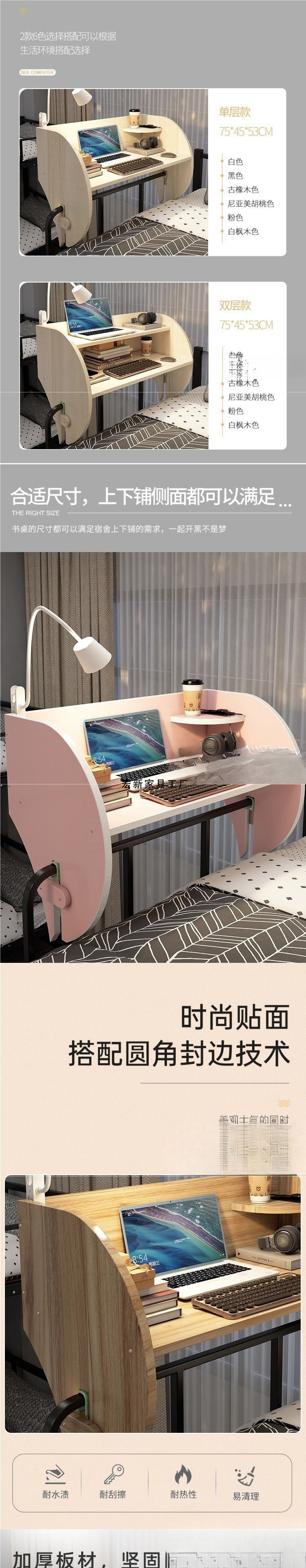 Hx2 대학생 침대 컴퓨터 책상 이층 침대 책상 기숙사 설치가 필요 없는 침대 옆 테이블 공중에 뜨는 접이식 테이블스토어 가기