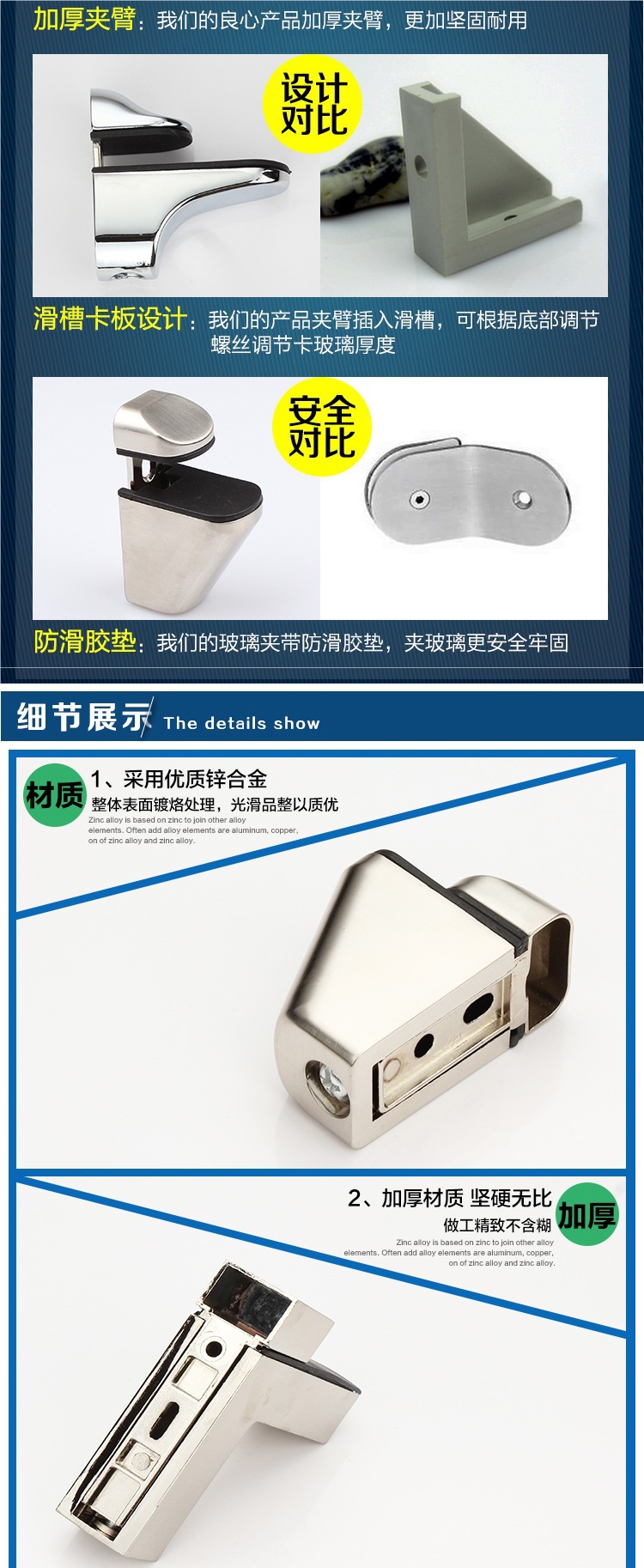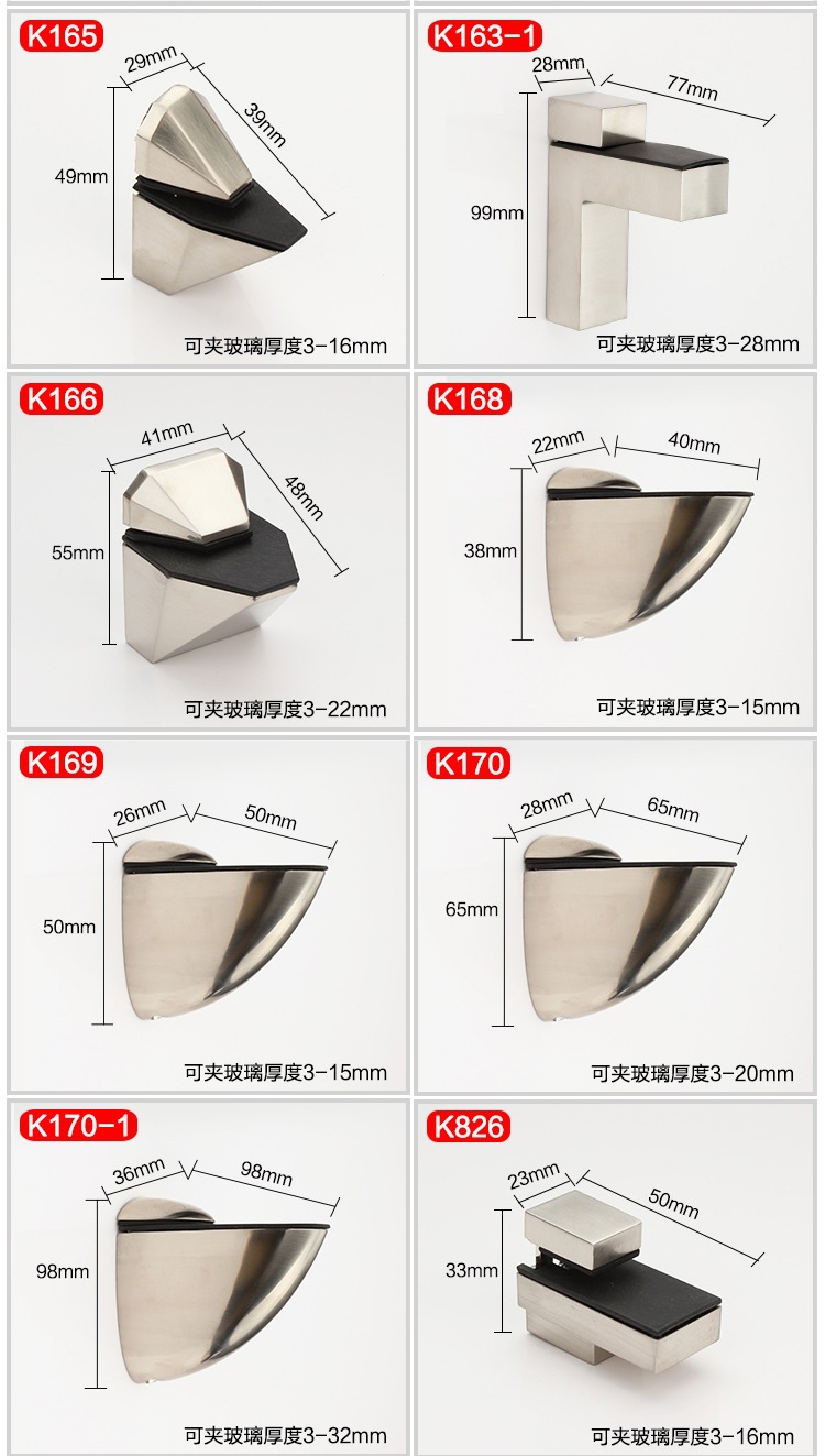 • 23호 유리 클립[브러시 처리]은 10-40mm를 고정할 수 있습니다.