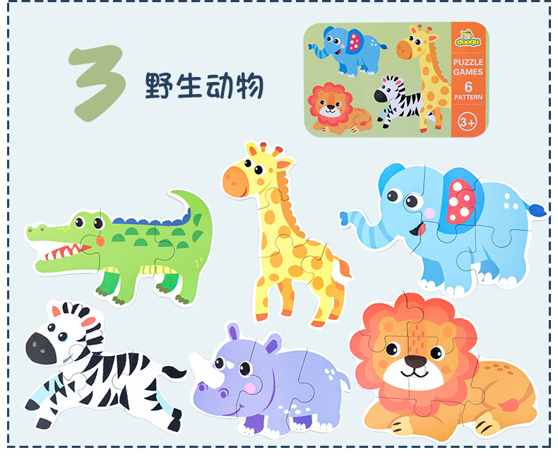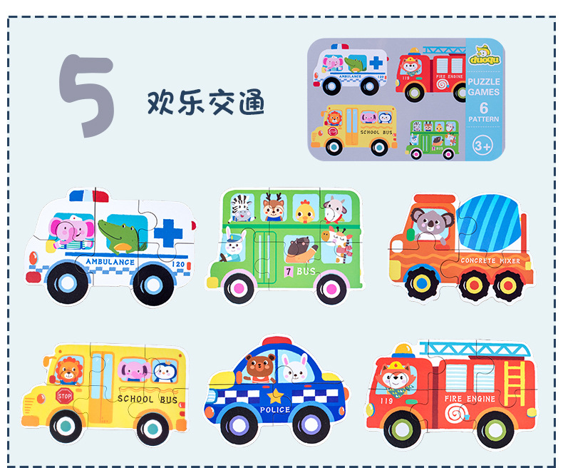 교육용 어린이 블록 퍼즐 나무 만화 동물 과일 및 야채 교통 인식 철 상자 보관 퍼즐 어린이 장난감스토어 가기