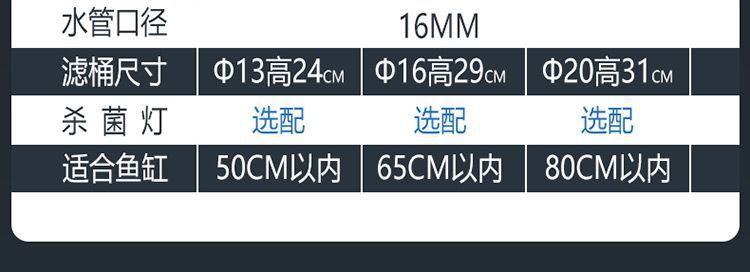• Y80 필터 배럴 + 필터 재료 + 살균 램프 + 분무 + 공기 펌프 B