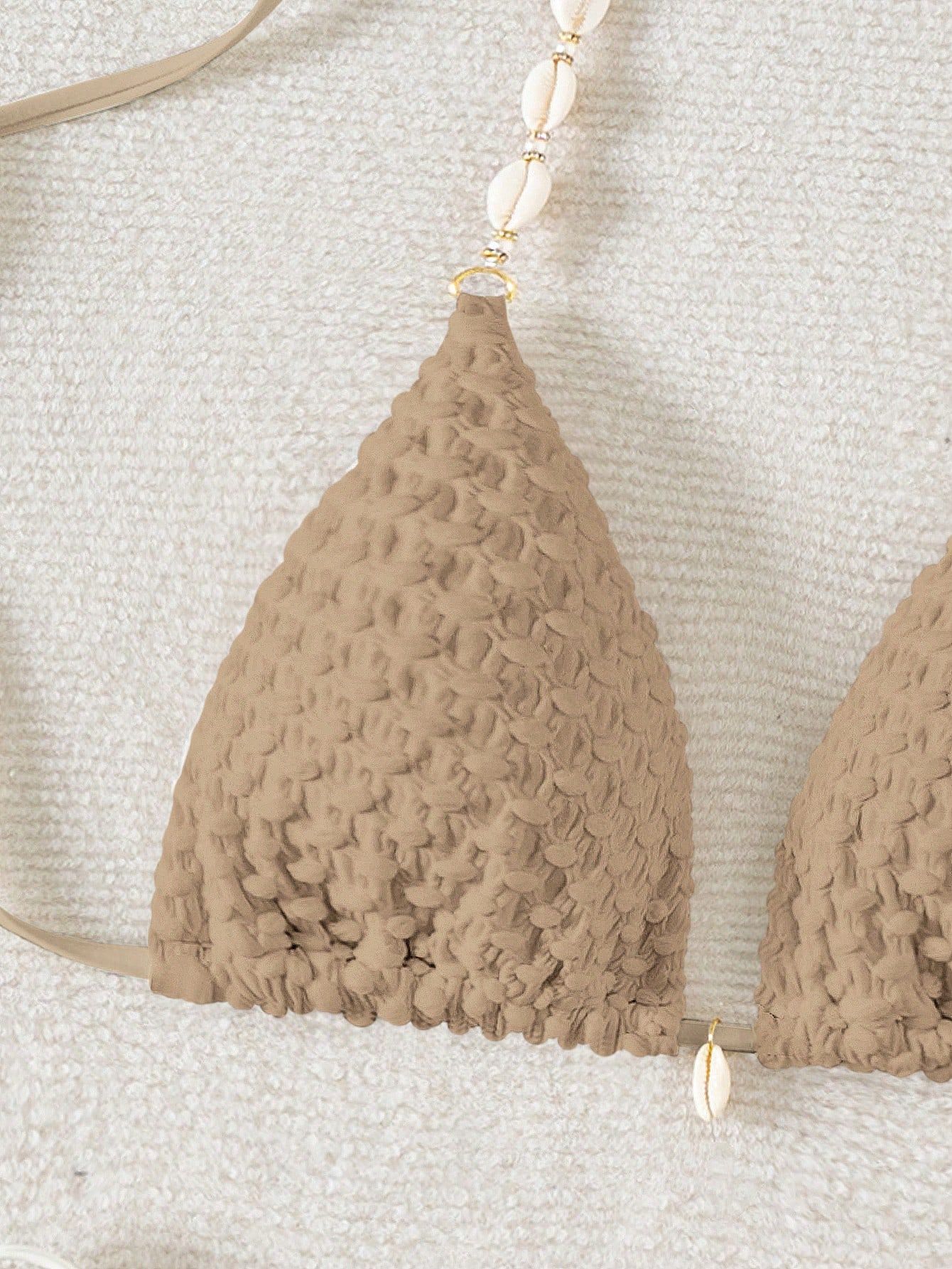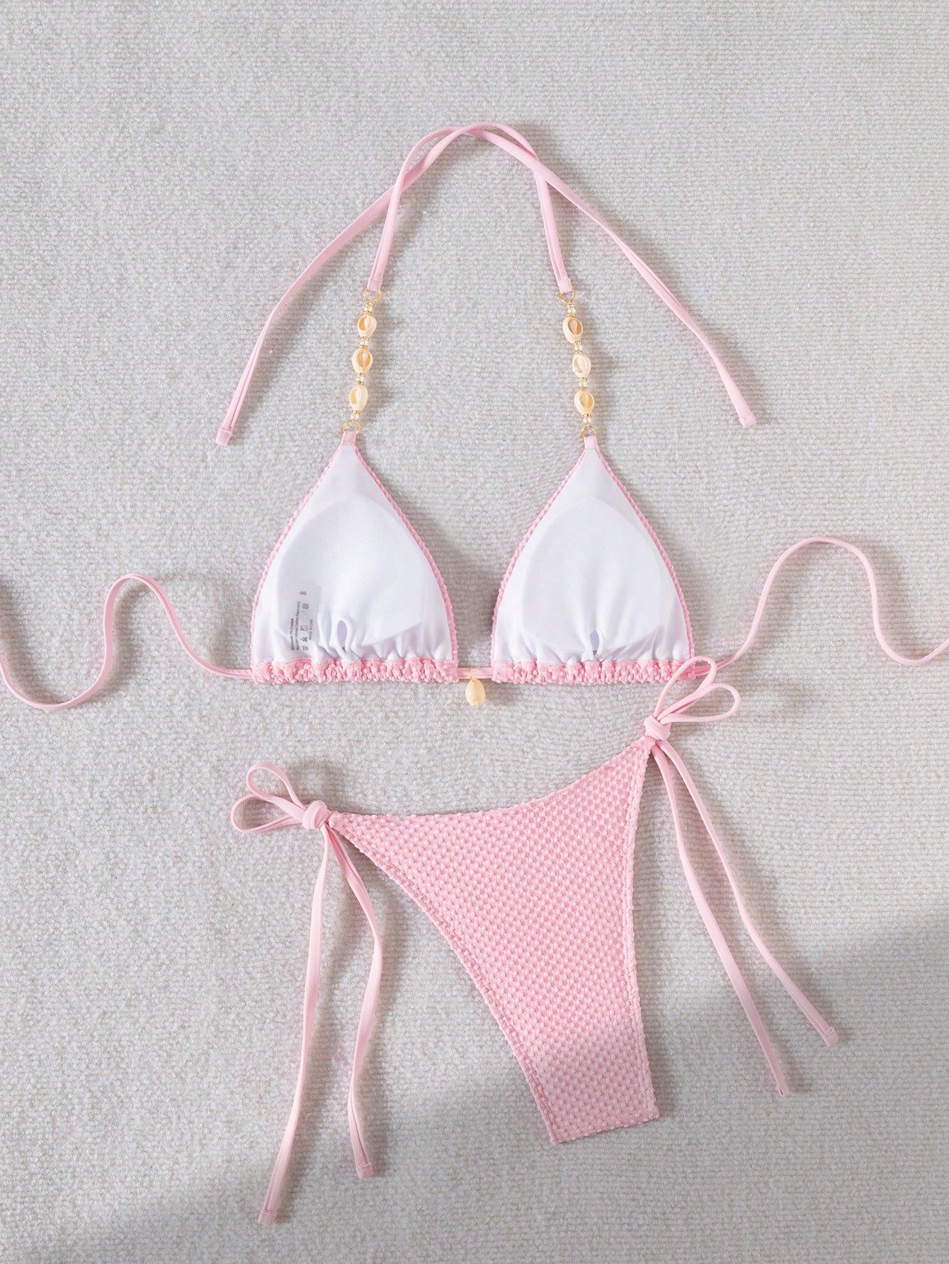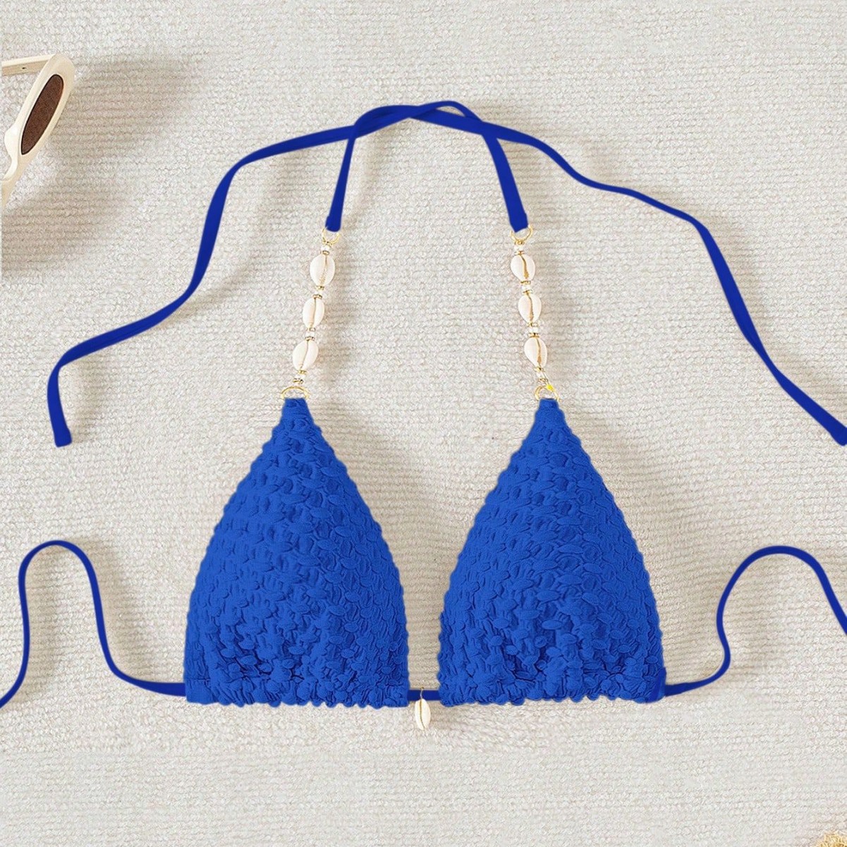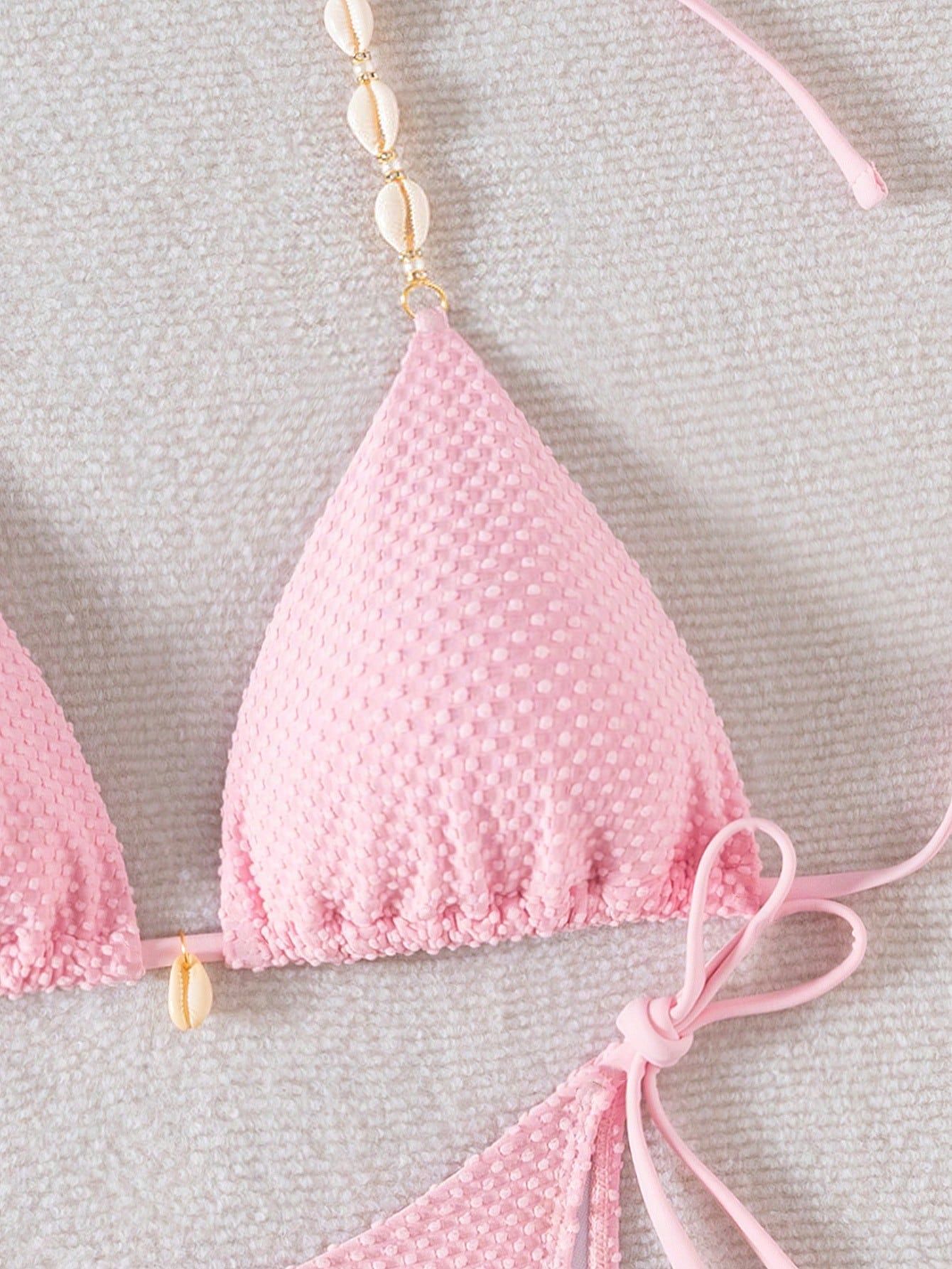 2025 유럽과 미국의 수영복 새로운 솔리드 컬러 쉘 섹시한 비키니 레이스 업 홀터 스플릿 비키니 수영복 도매스토어 가기