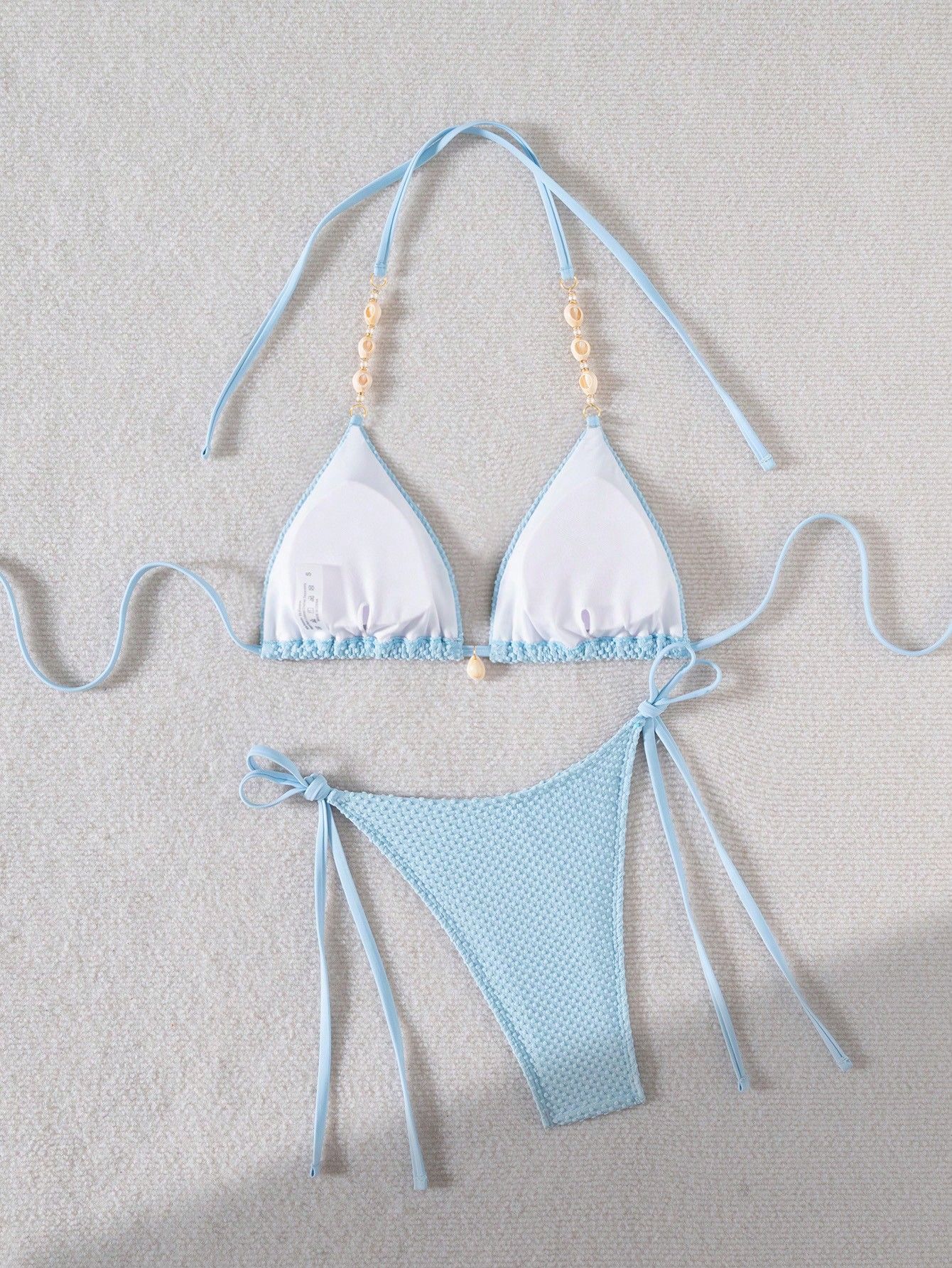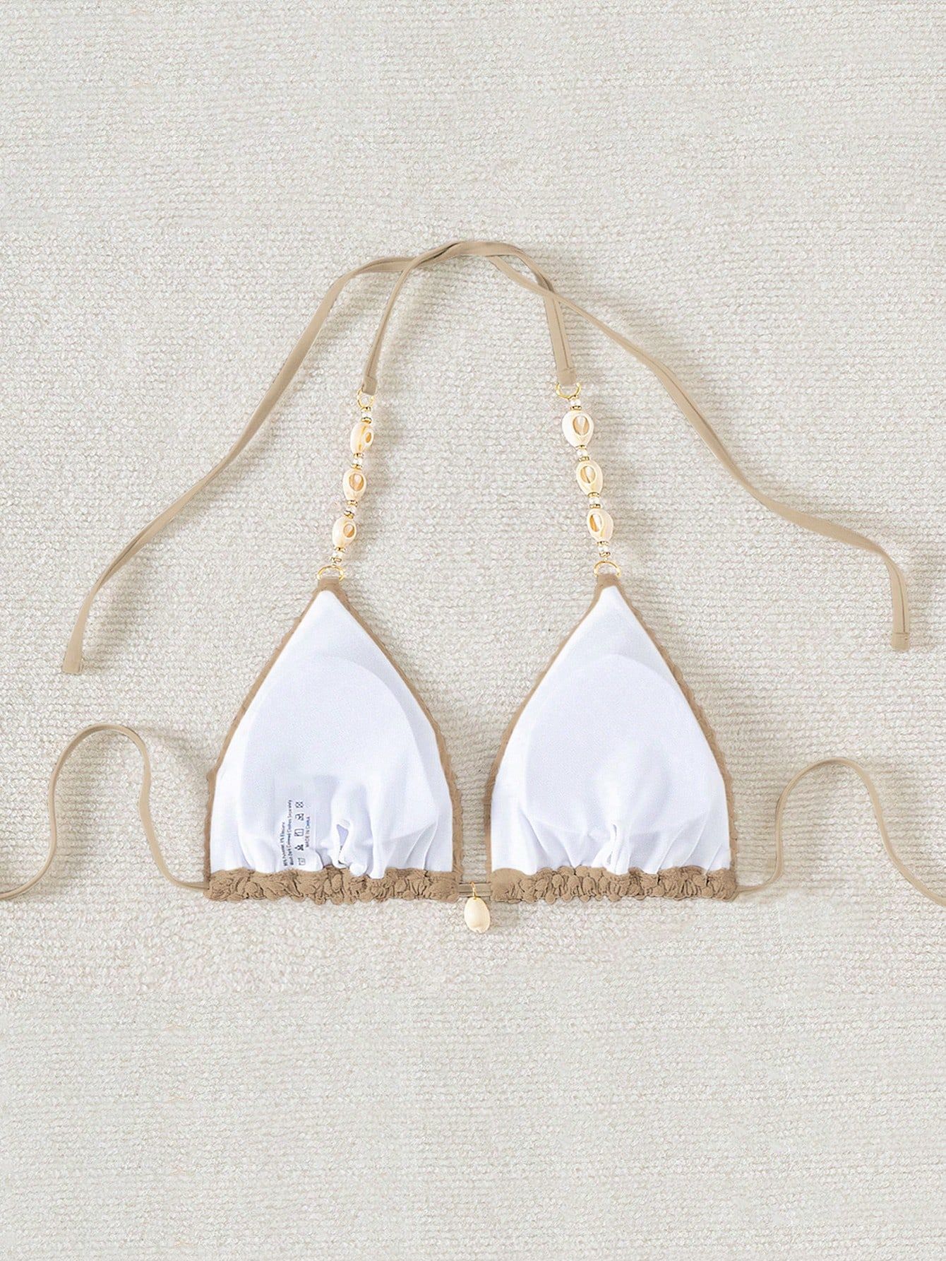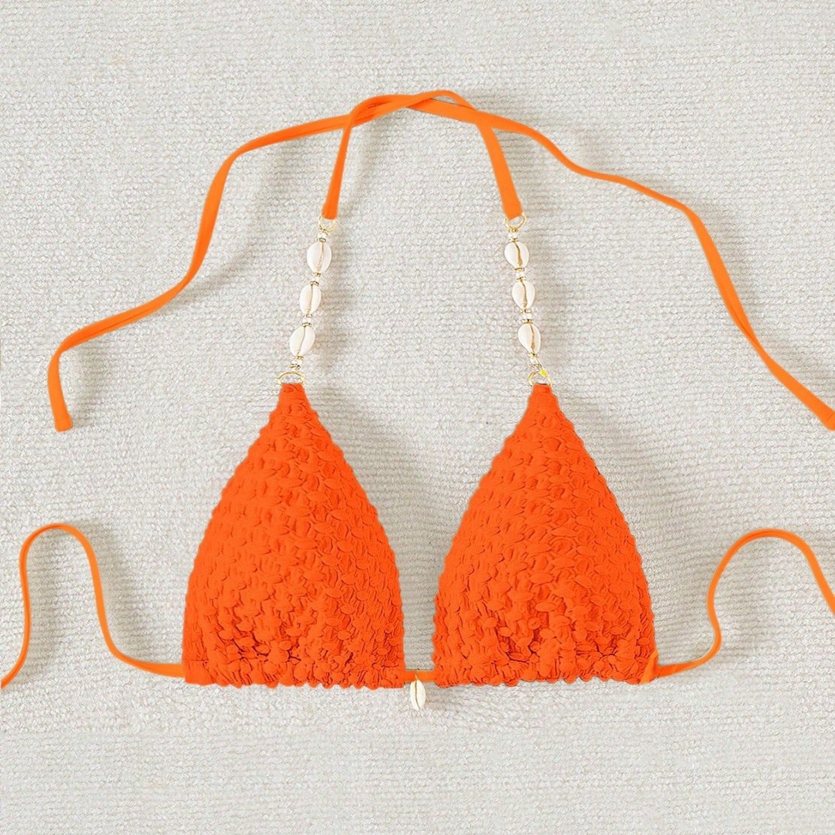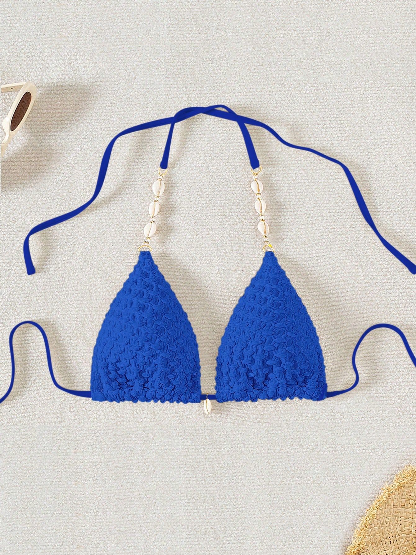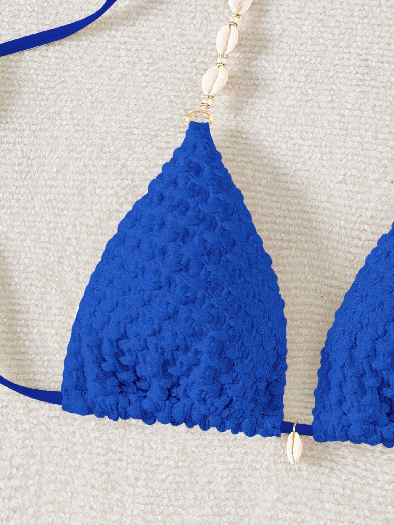 2025 유럽과 미국의 수영복 새로운 솔리드 컬러 쉘 섹시한 비키니 레이스 업 홀터 스플릿 비키니 수영복 도매스토어 가기