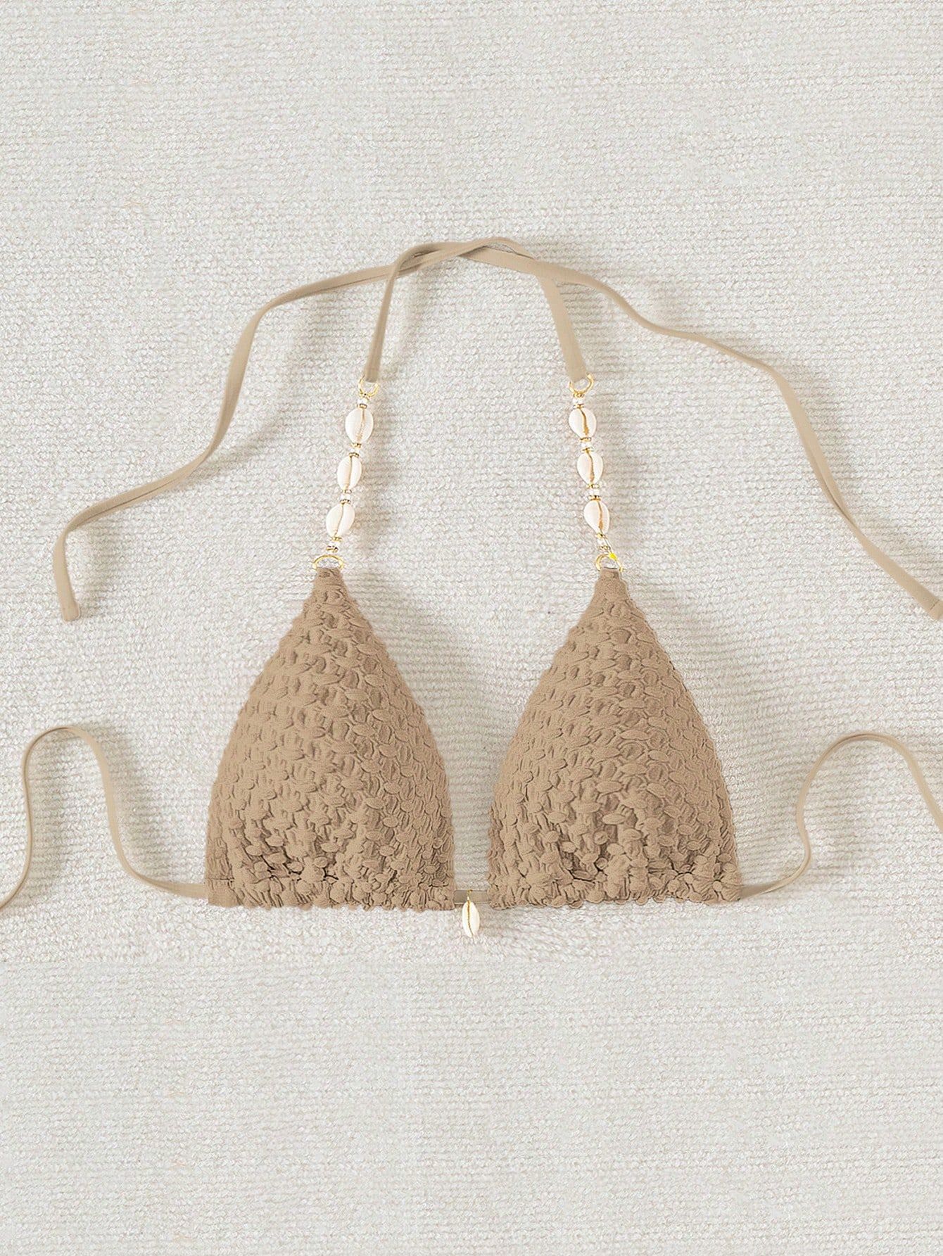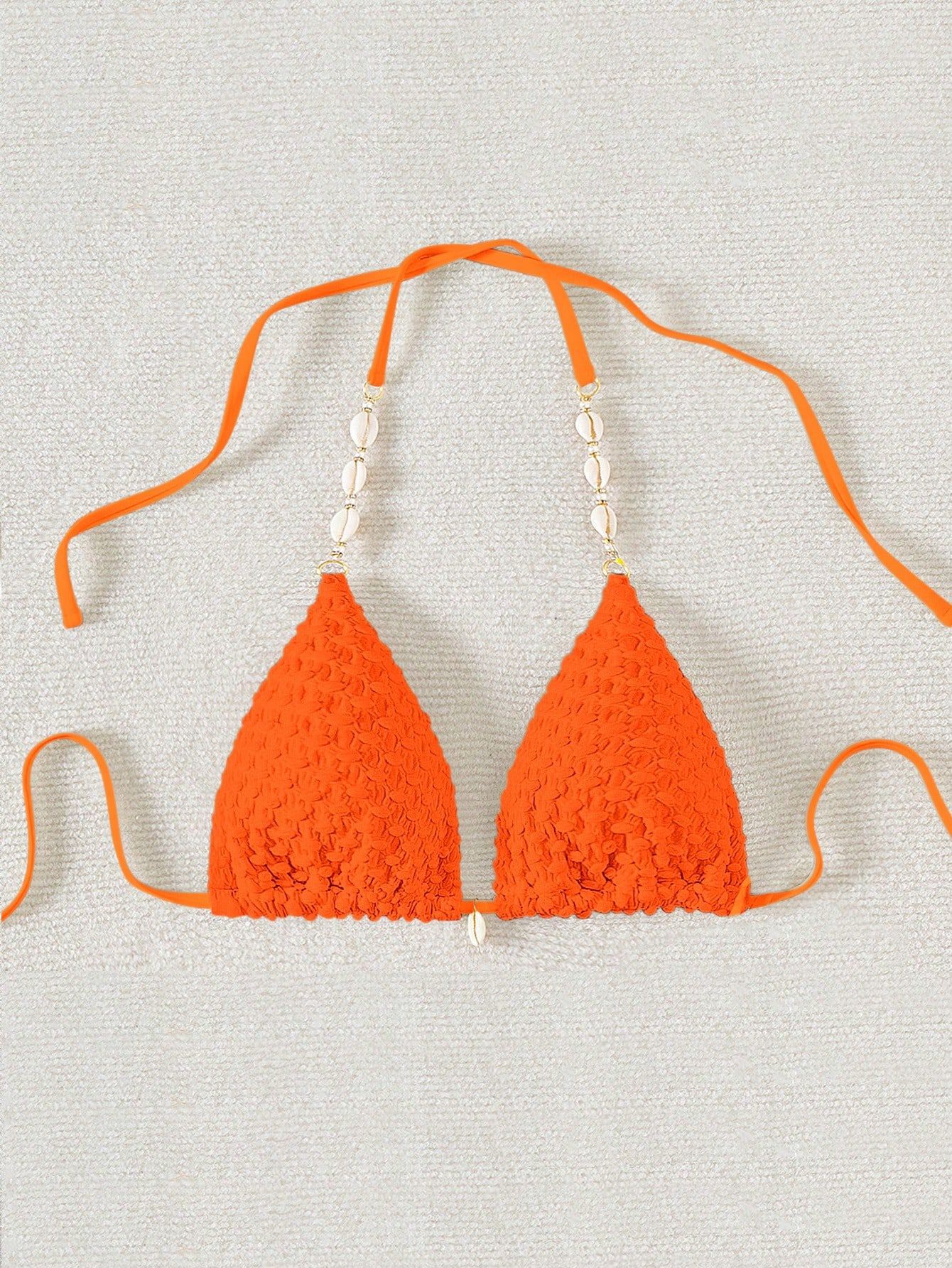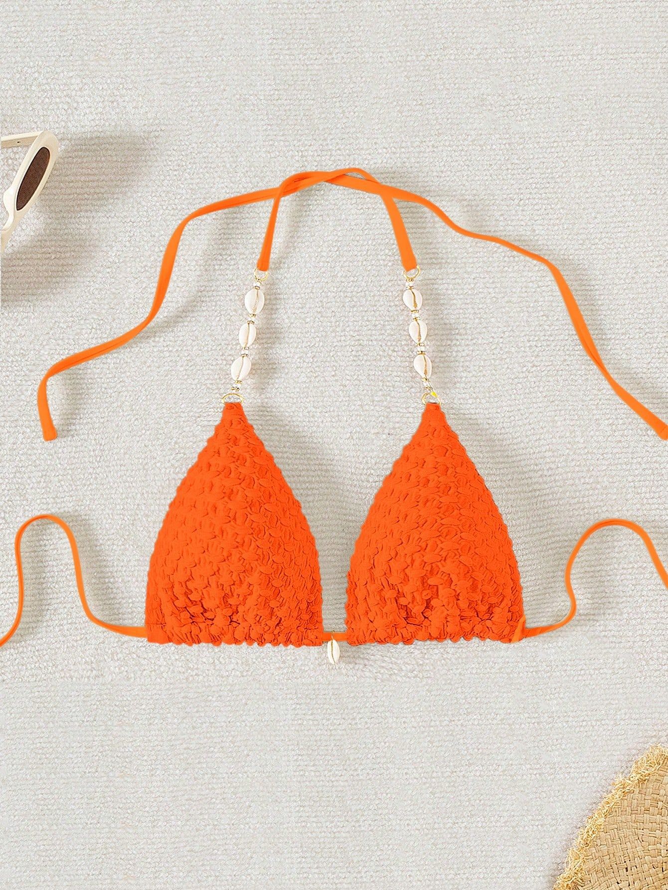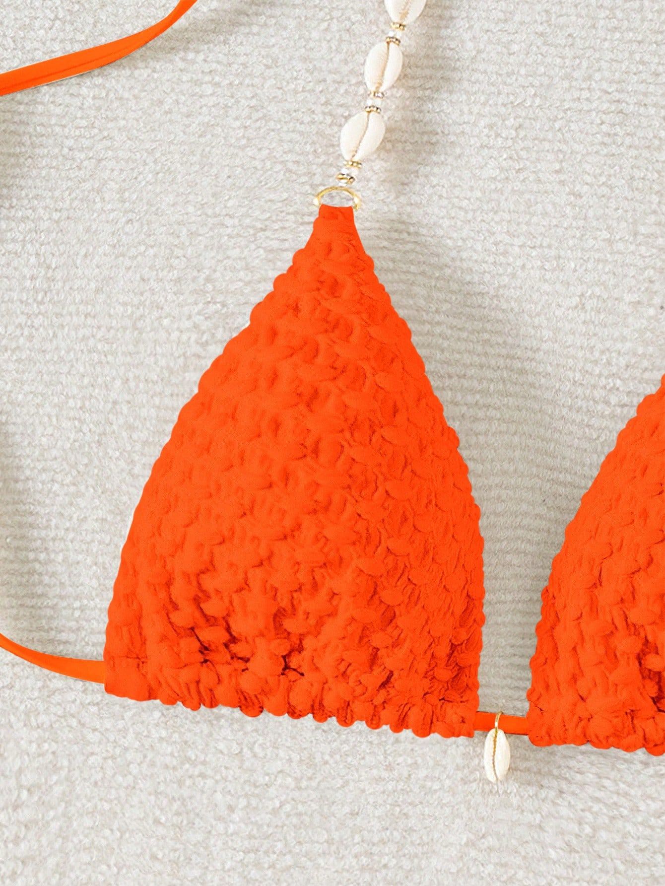 2025 유럽과 미국의 수영복 새로운 솔리드 컬러 쉘 섹시한 비키니 레이스 업 홀터 스플릿 비키니 수영복 도매스토어 가기