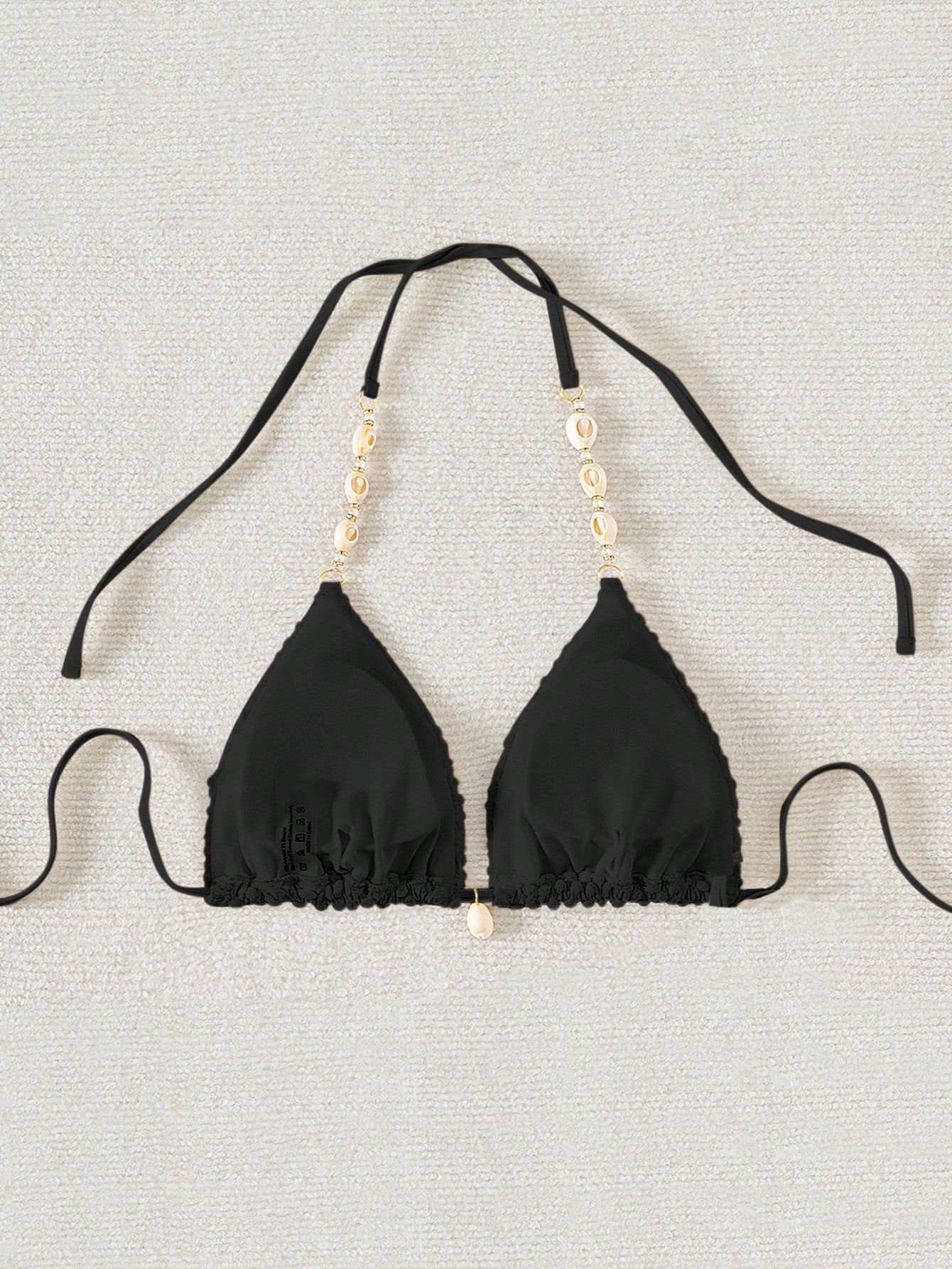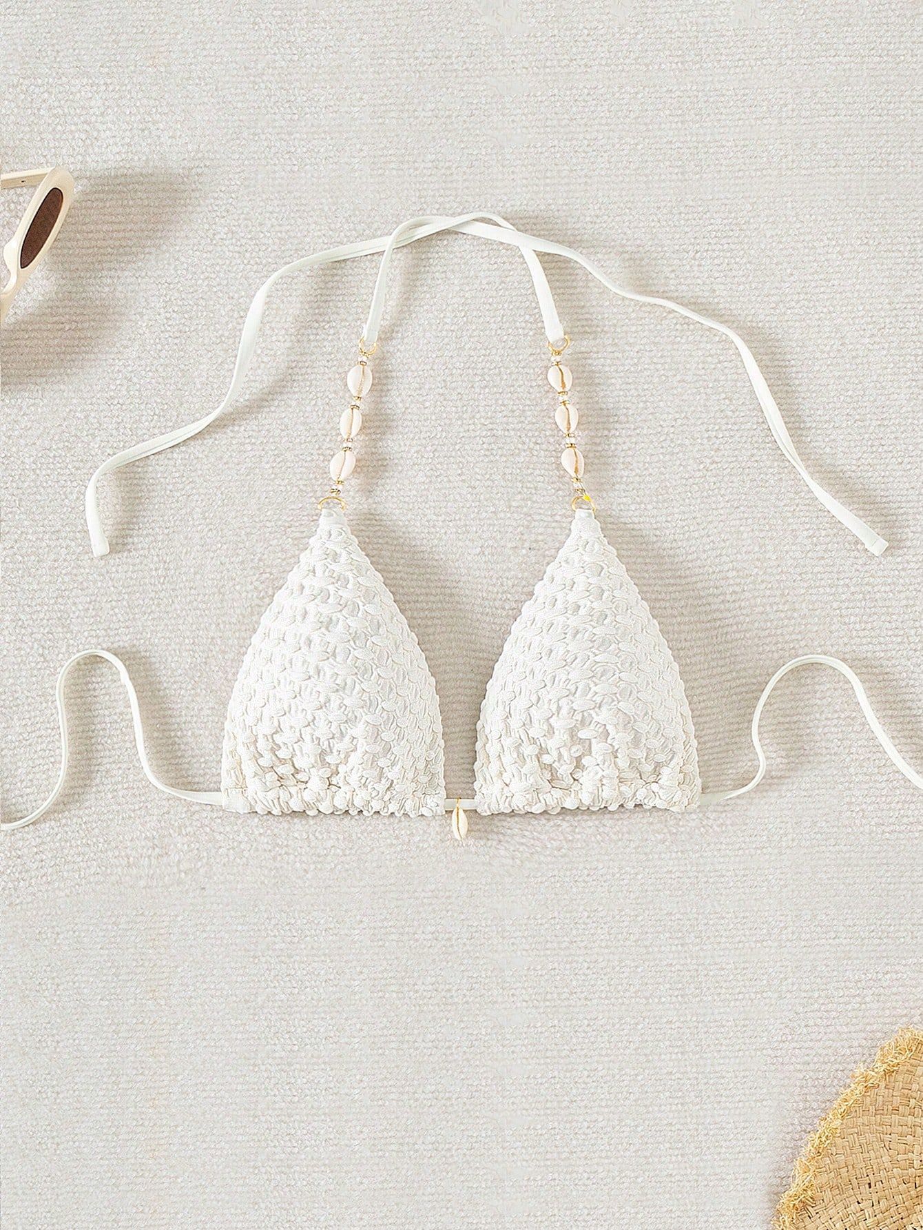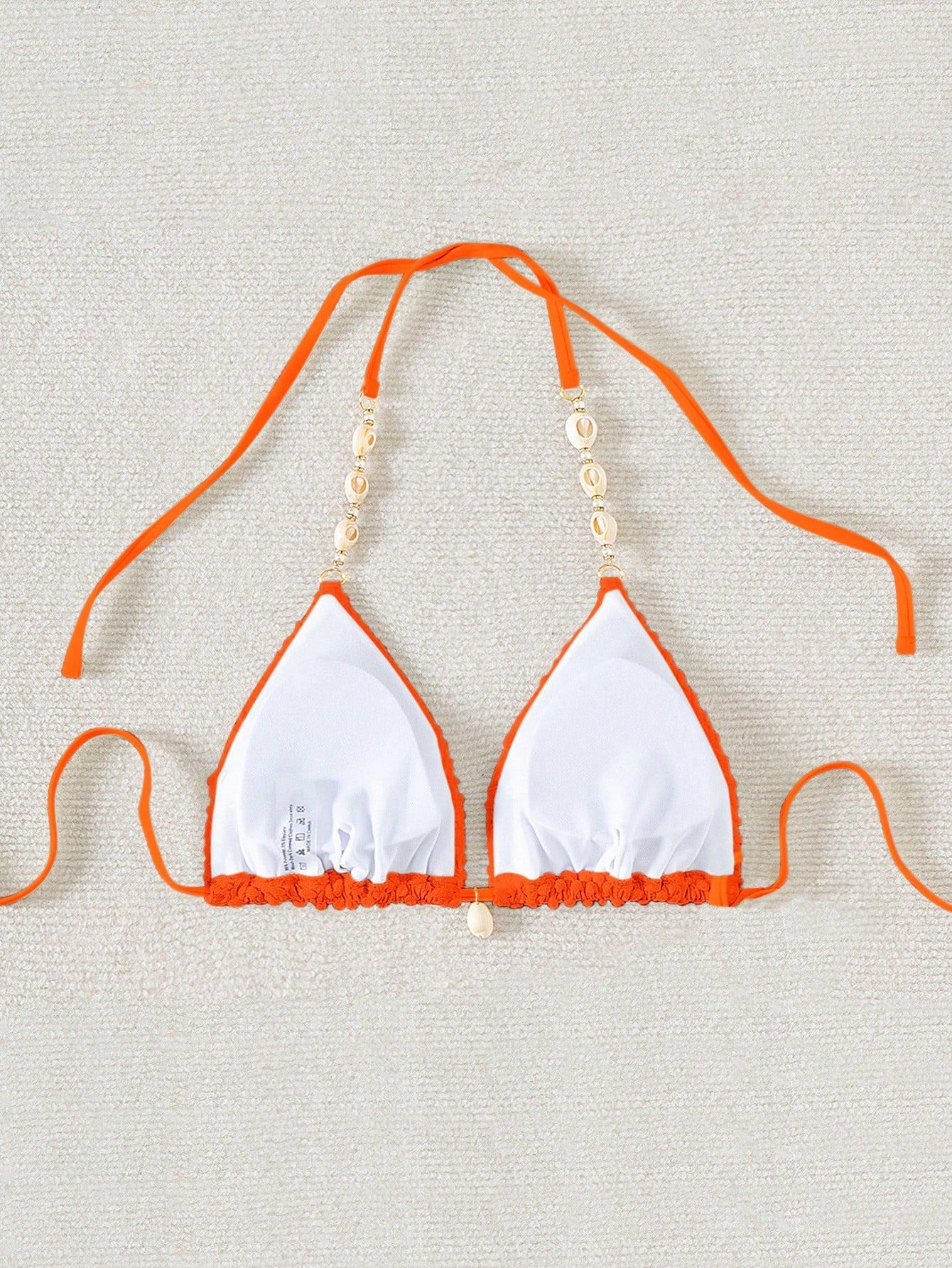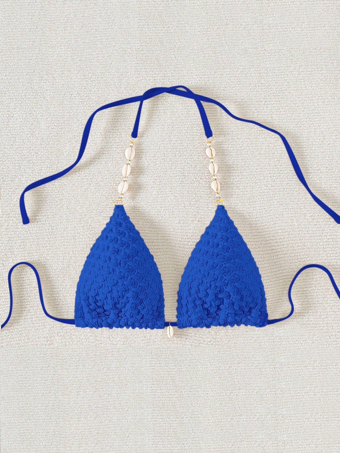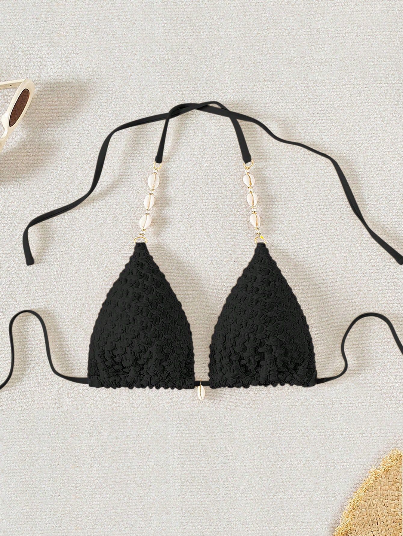 2025 유럽과 미국의 수영복 새로운 솔리드 컬러 쉘 섹시한 비키니 레이스 업 홀터 스플릿 비키니 수영복 도매스토어 가기