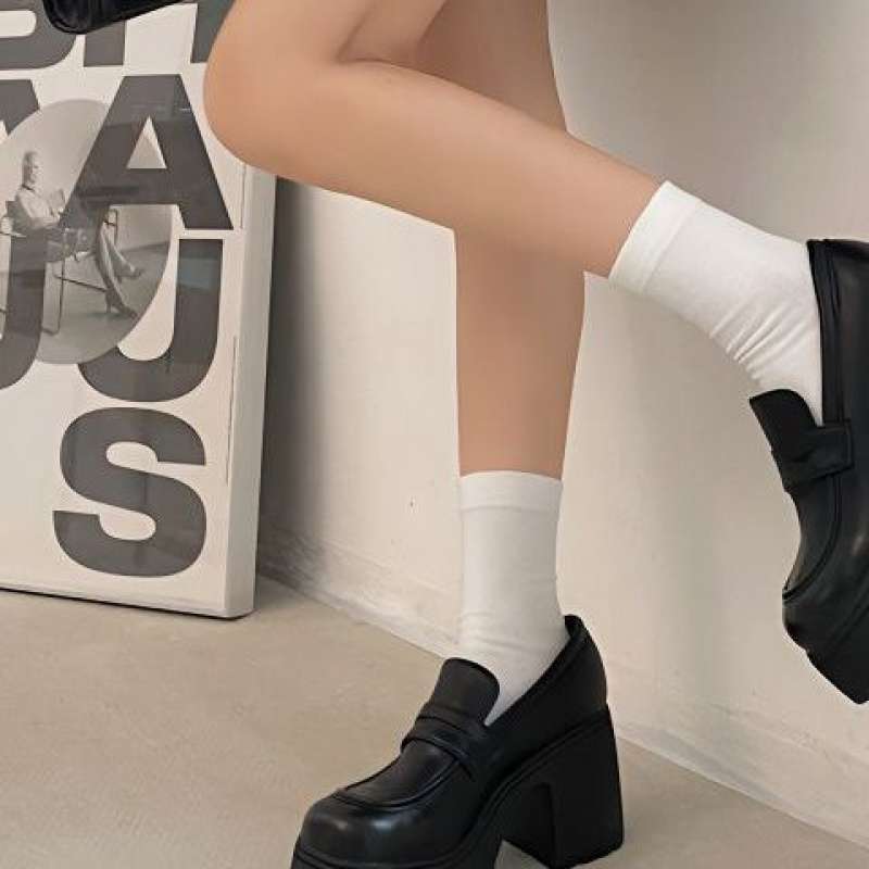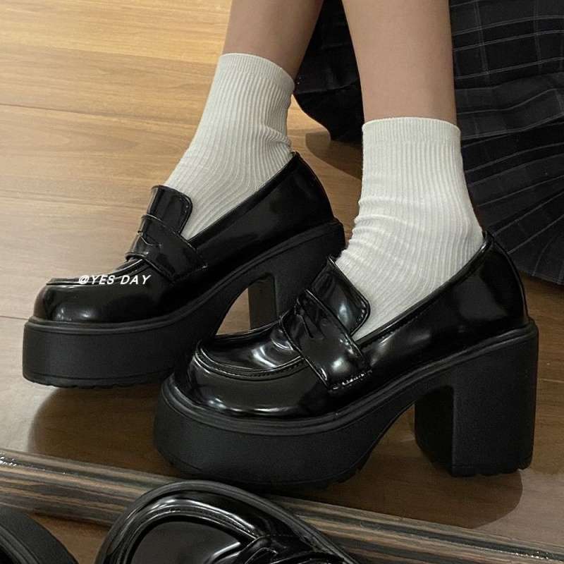 8cm 작은 jk 작은 가죽 신발 두꺼운 밑창 유니폼 신발 하이힐 2025 여성을위한 새로운 뜨거운 소녀 로퍼스토어 가기
