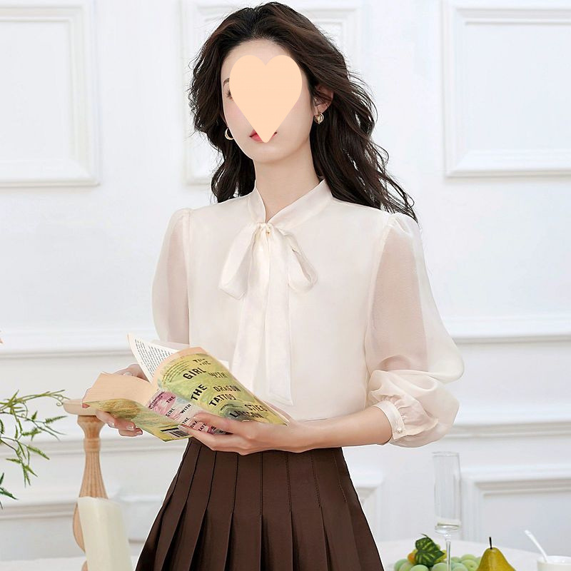 달콤하고 신선한 2025 봄 Li 새로운 스타일 스마트 요정 긴팔 보우 리본 셔츠 탑 여성용스토어 가기