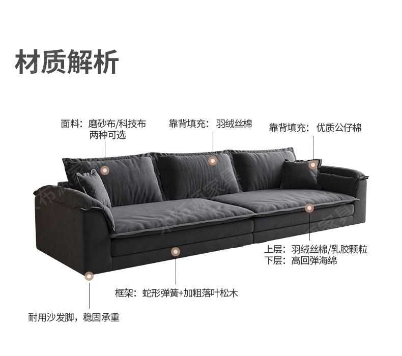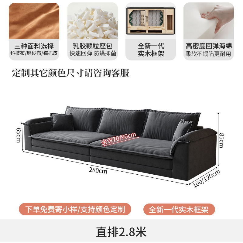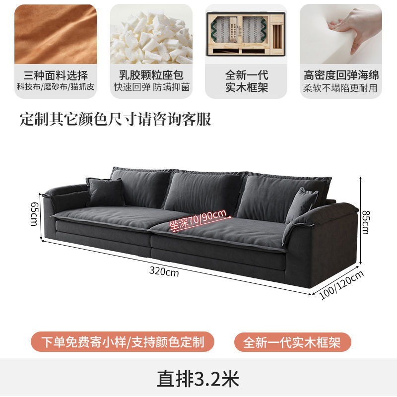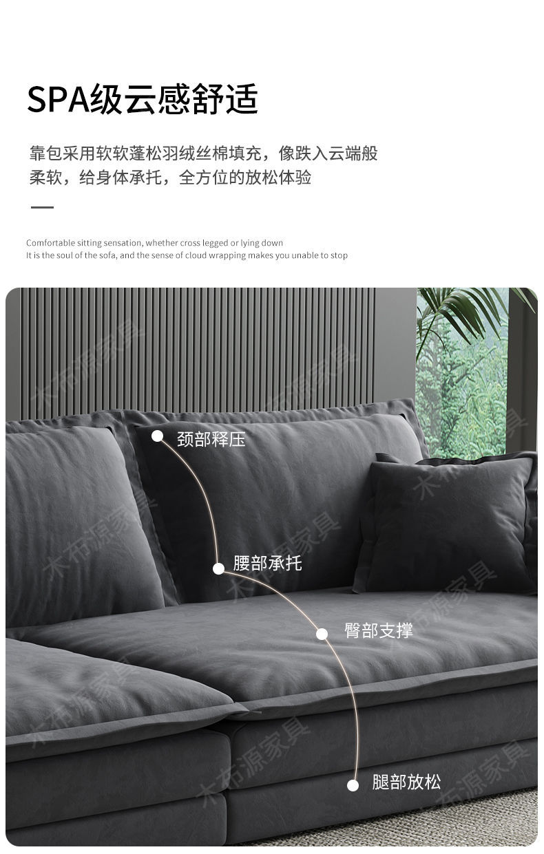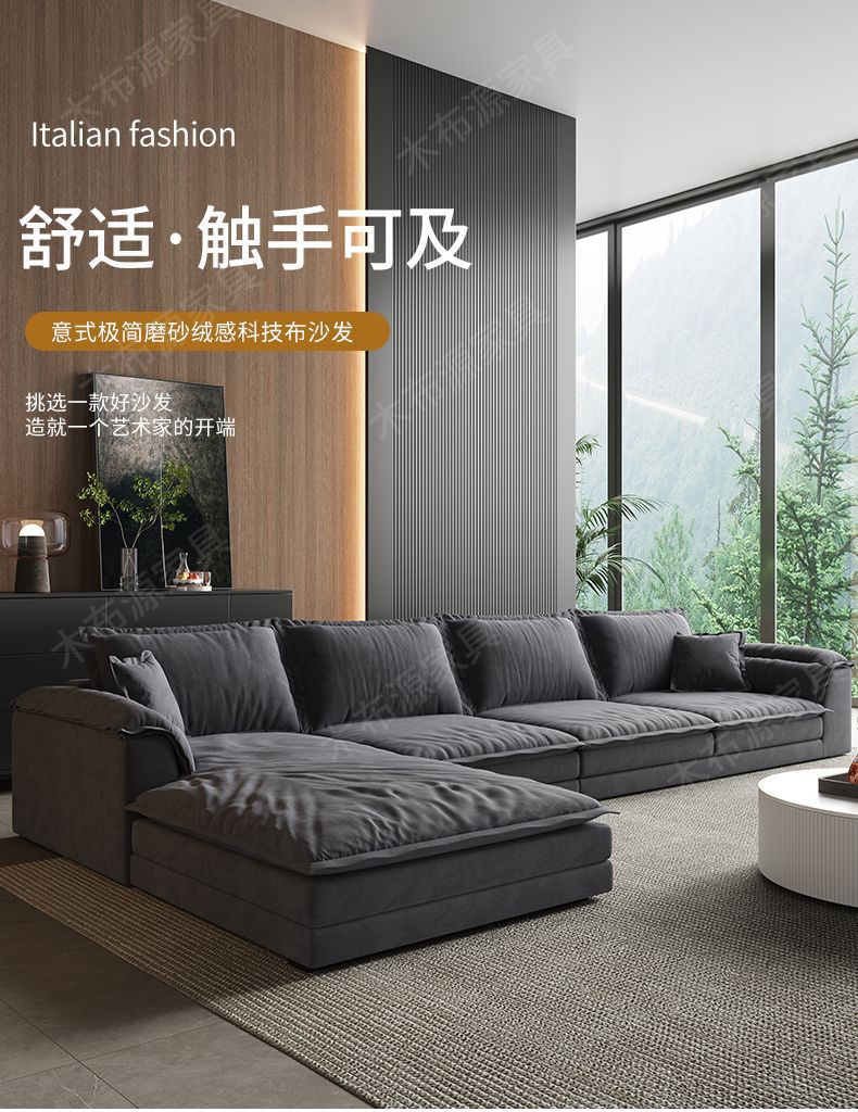 이탈리안 다운 반투명 패브릭 소파 거실 현대적인 매우 간단한 크고 작은 가정용 와이드 시트 딥 라텍스 스트레이트 소파스토어 가기