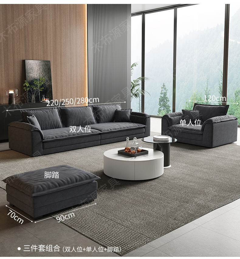 이탈리안 다운 반투명 패브릭 소파 거실 현대적인 매우 간단한 크고 작은 가정용 와이드 시트 딥 라텍스 스트레이트 소파