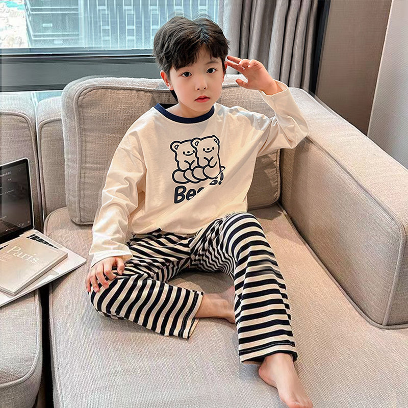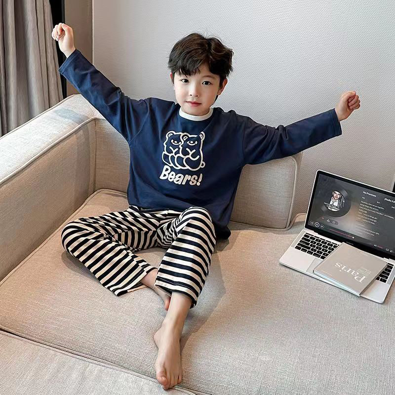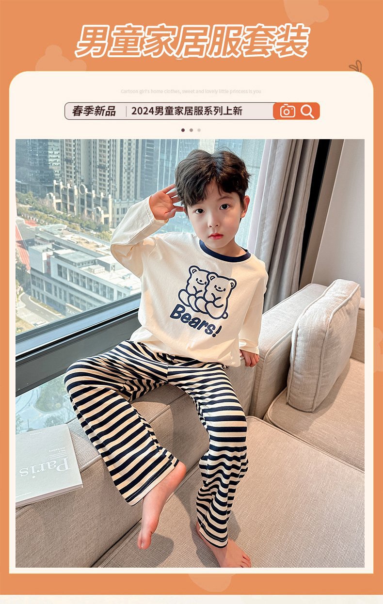 아동용 가정복, 잠옷, 풀오버, 봄, 가을 신작 긴팔 소년 잠옷 세트, 만화 중대형 아동용 에어컨 의류스토어 가기