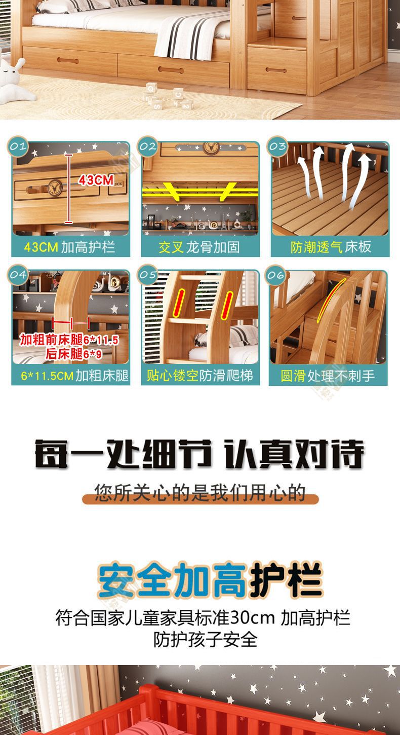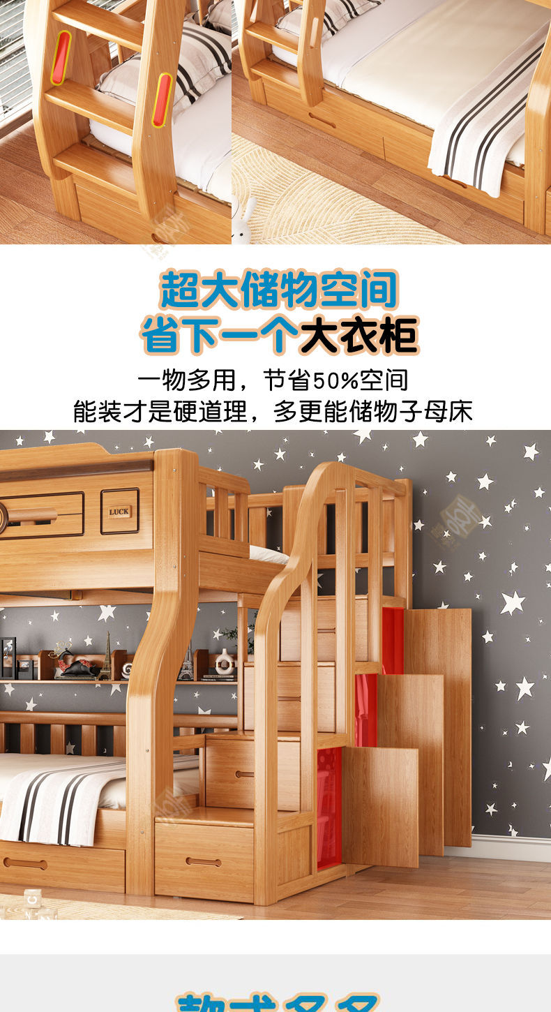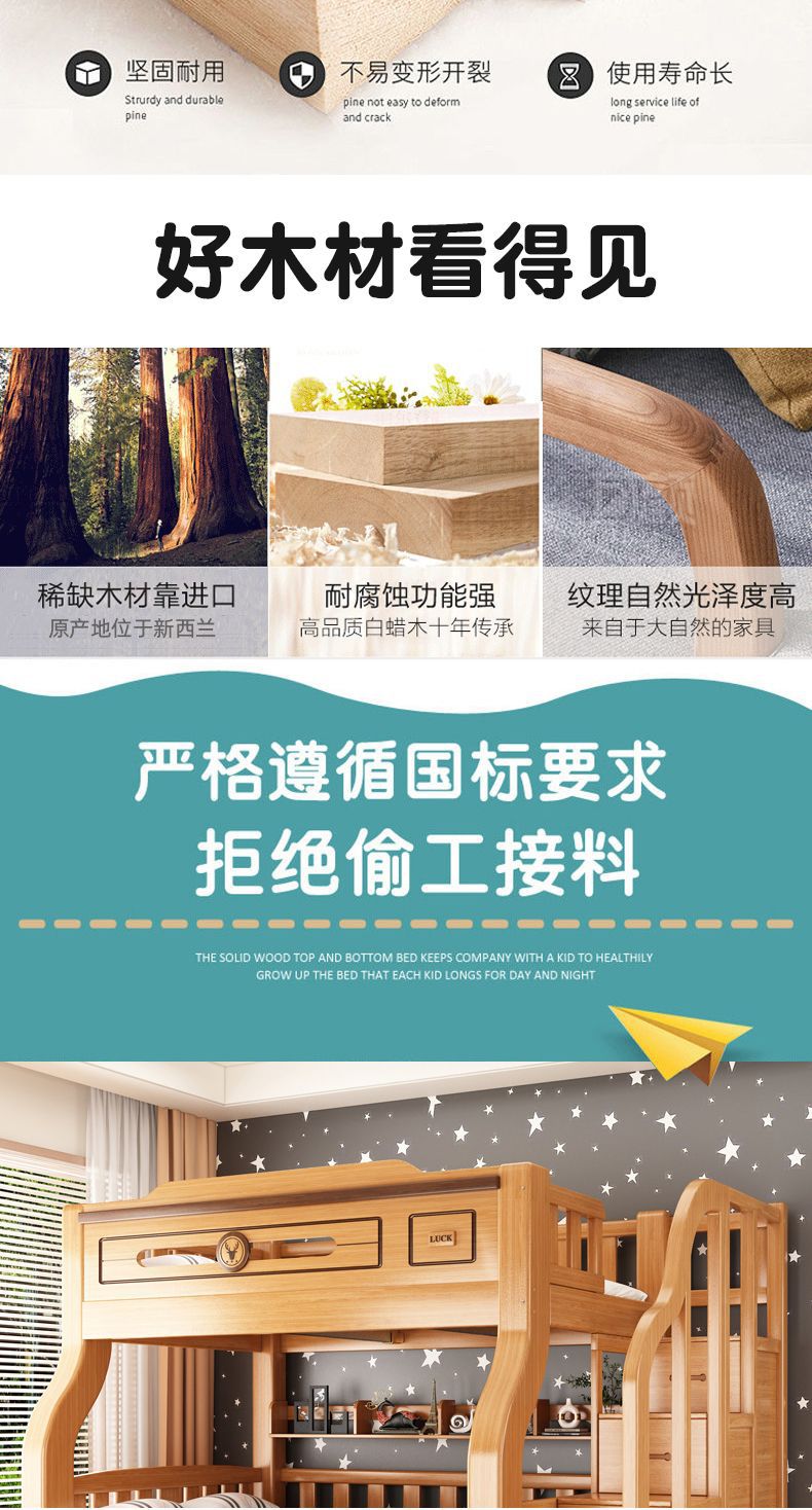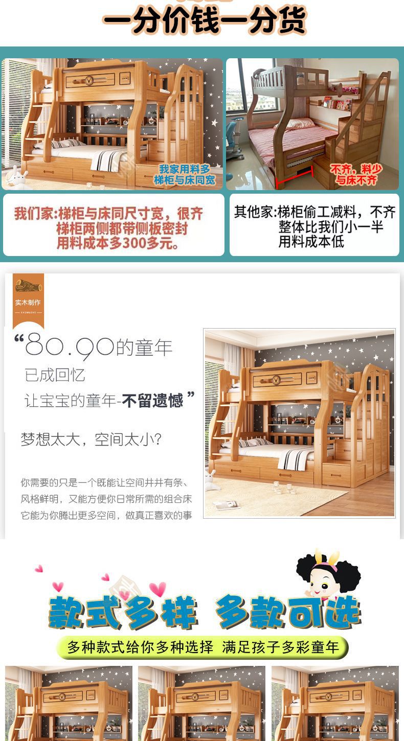 Xizhi 단단한 나무 이층 침대, 작은 아파트 어린이 침대, 성인용 이층 침대, 기숙사 높낮이 침대, 두꺼운 이층 침대스토어 가기