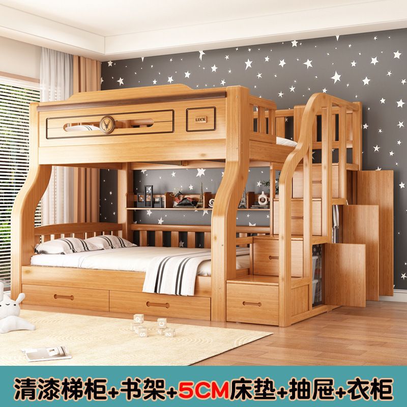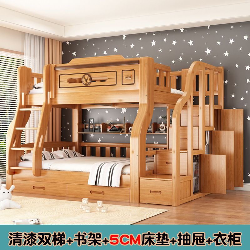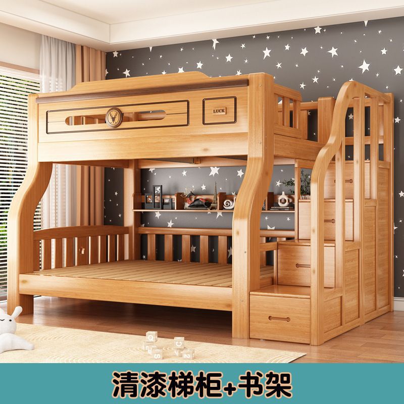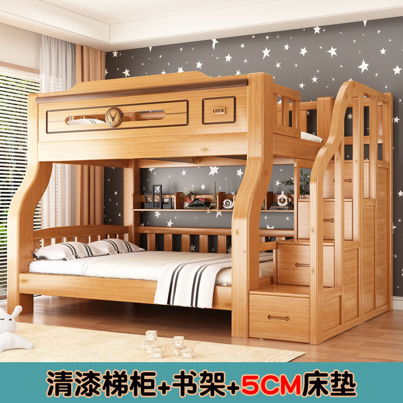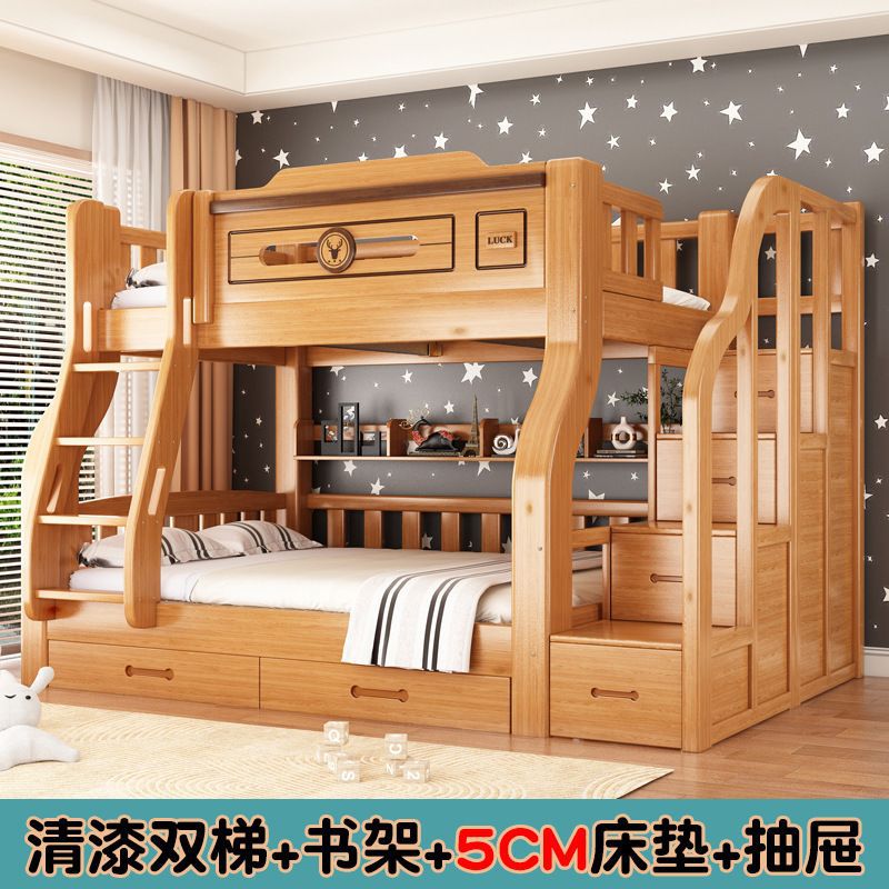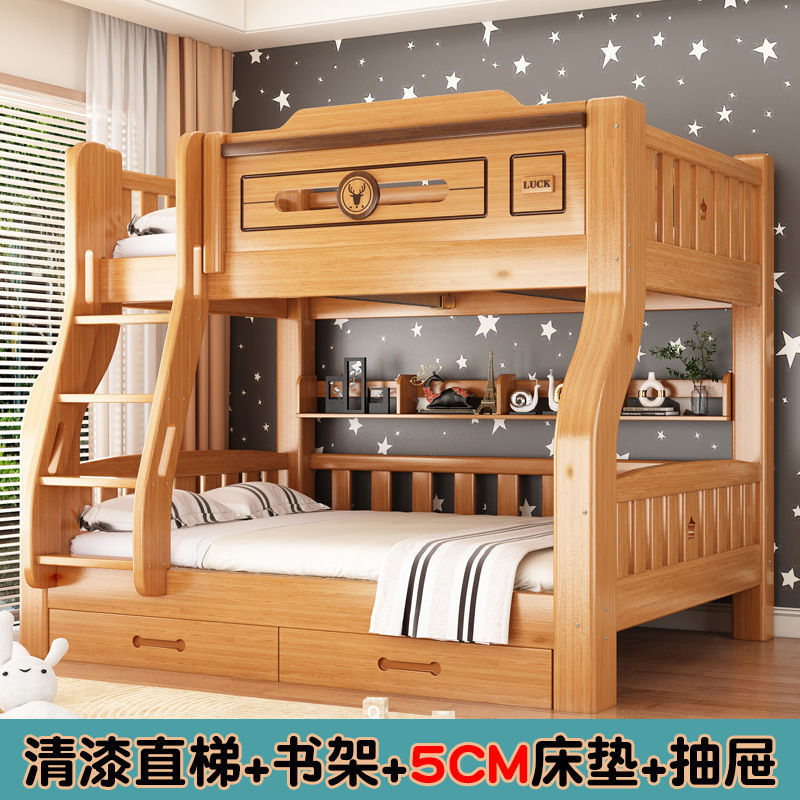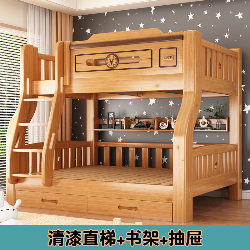 Xizhi 단단한 나무 이층 침대, 작은 아파트 어린이 침대, 성인용 이층 침대, 기숙사 높낮이 침대, 두꺼운 이층 침대