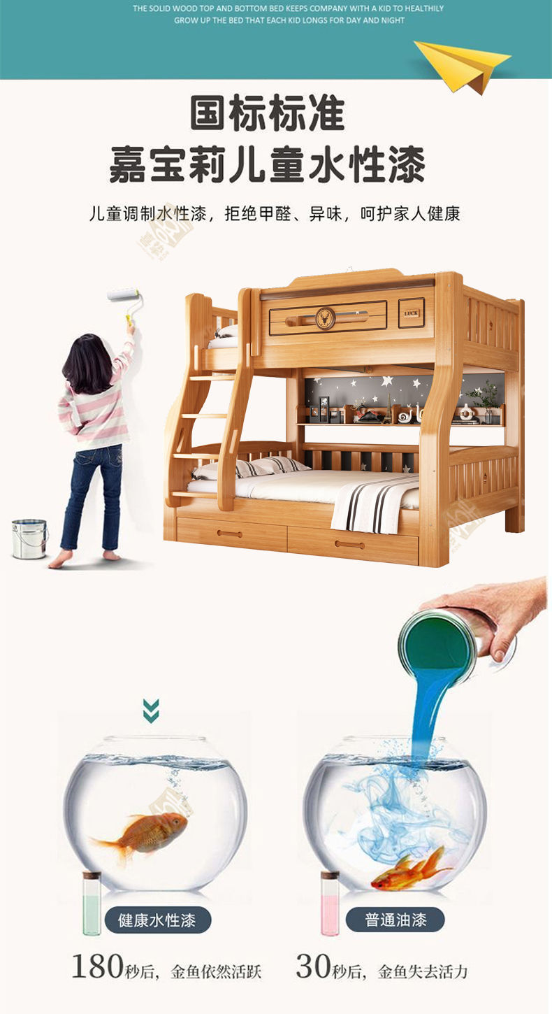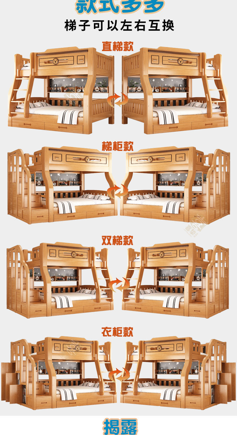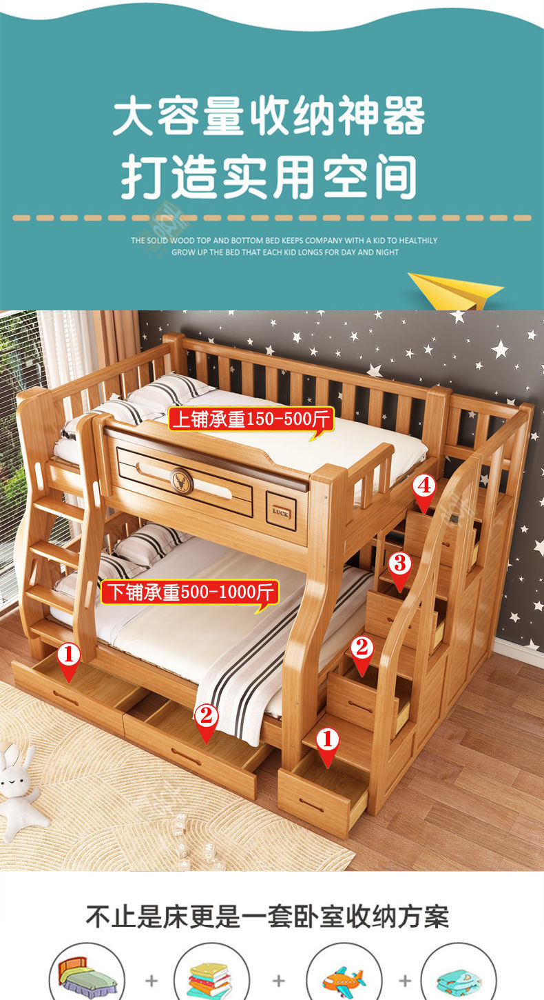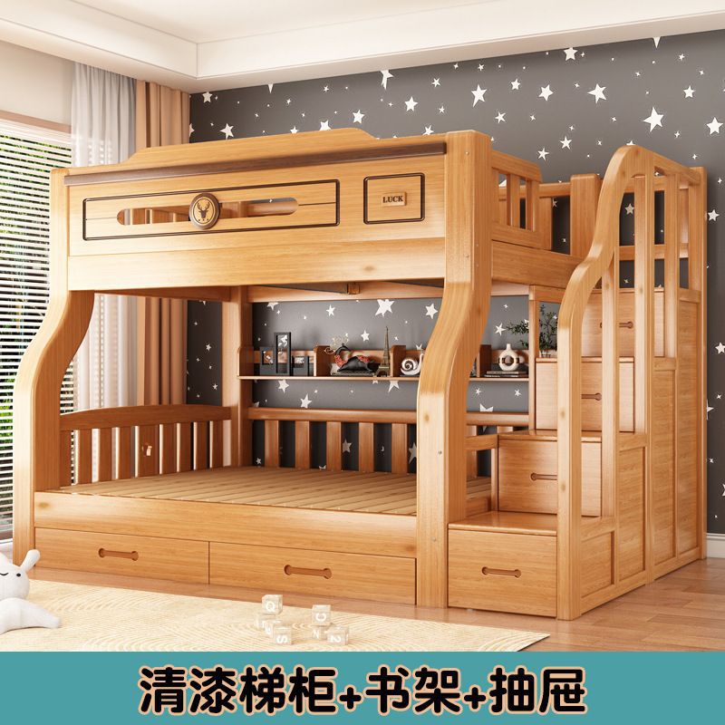Xizhi 단단한 나무 이층 침대, 작은 아파트 어린이 침대, 성인용 이층 침대, 기숙사 높낮이 침대, 두꺼운 이층 침대