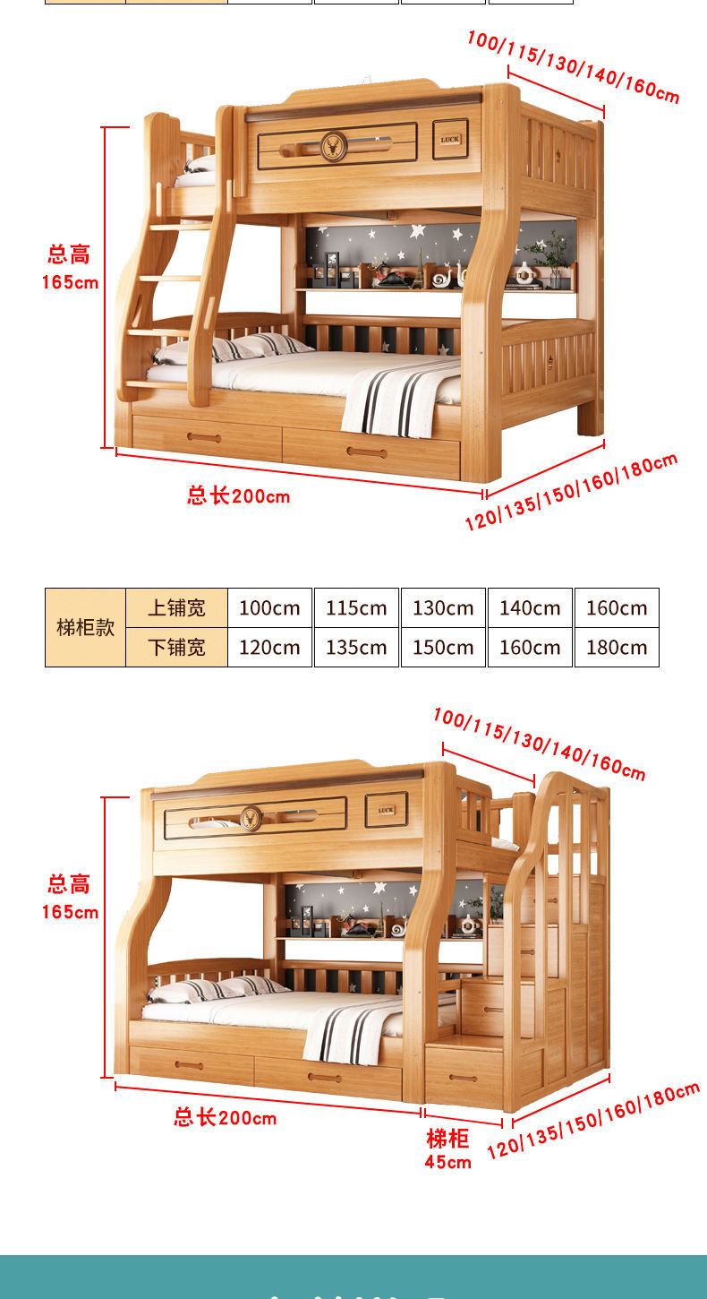 • 상부 침대 폭 160cm, 하부 침대 폭 180cm