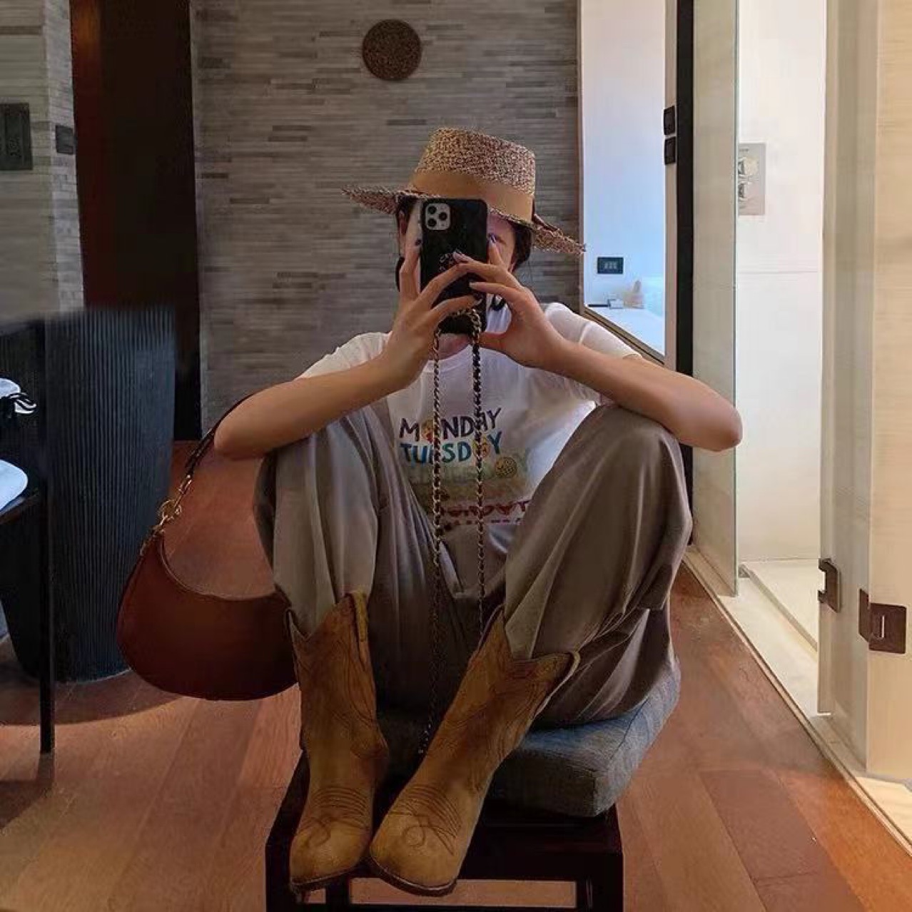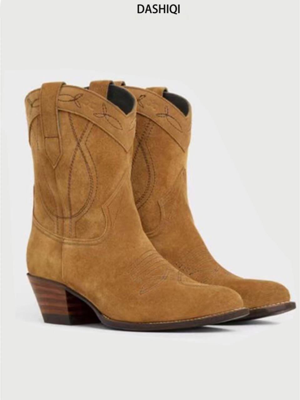 Ashigo's 2025 여성용 다용도 복고풍 포인티드 토 숏부츠, 영국산 천연 가죽 웨스턴 카우보이 부츠, 두꺼운 굽 스트레이트 부츠스토어 가기