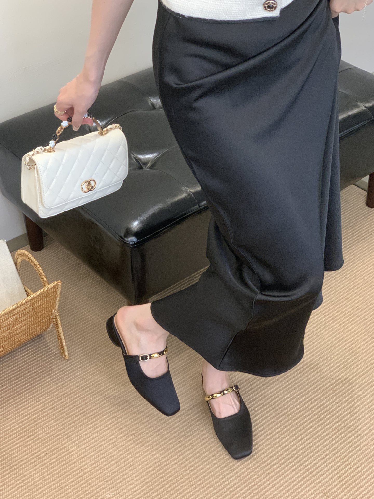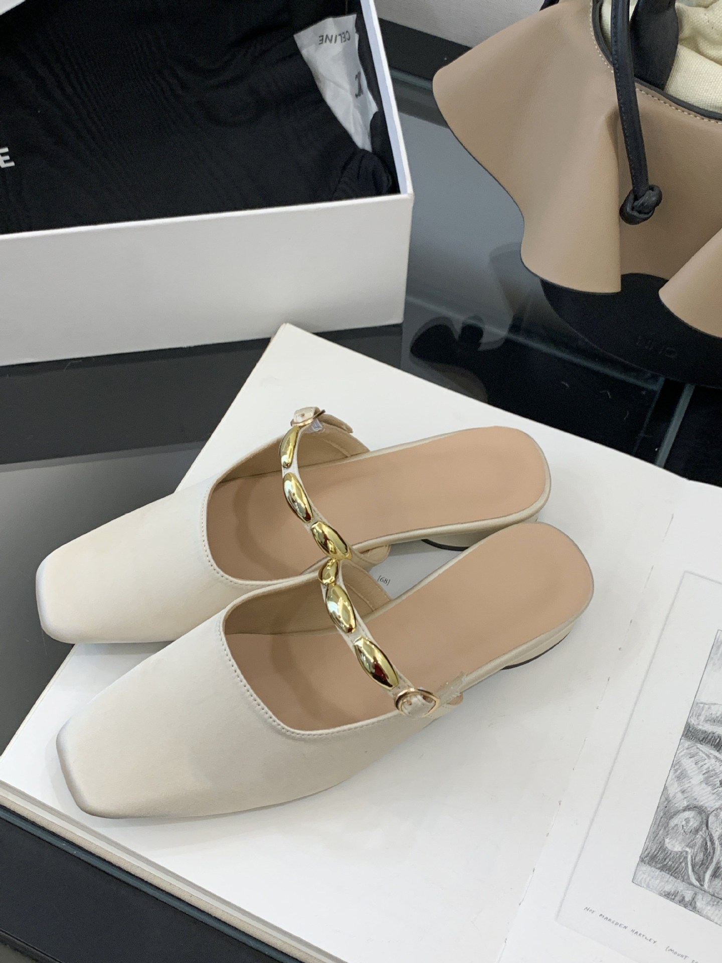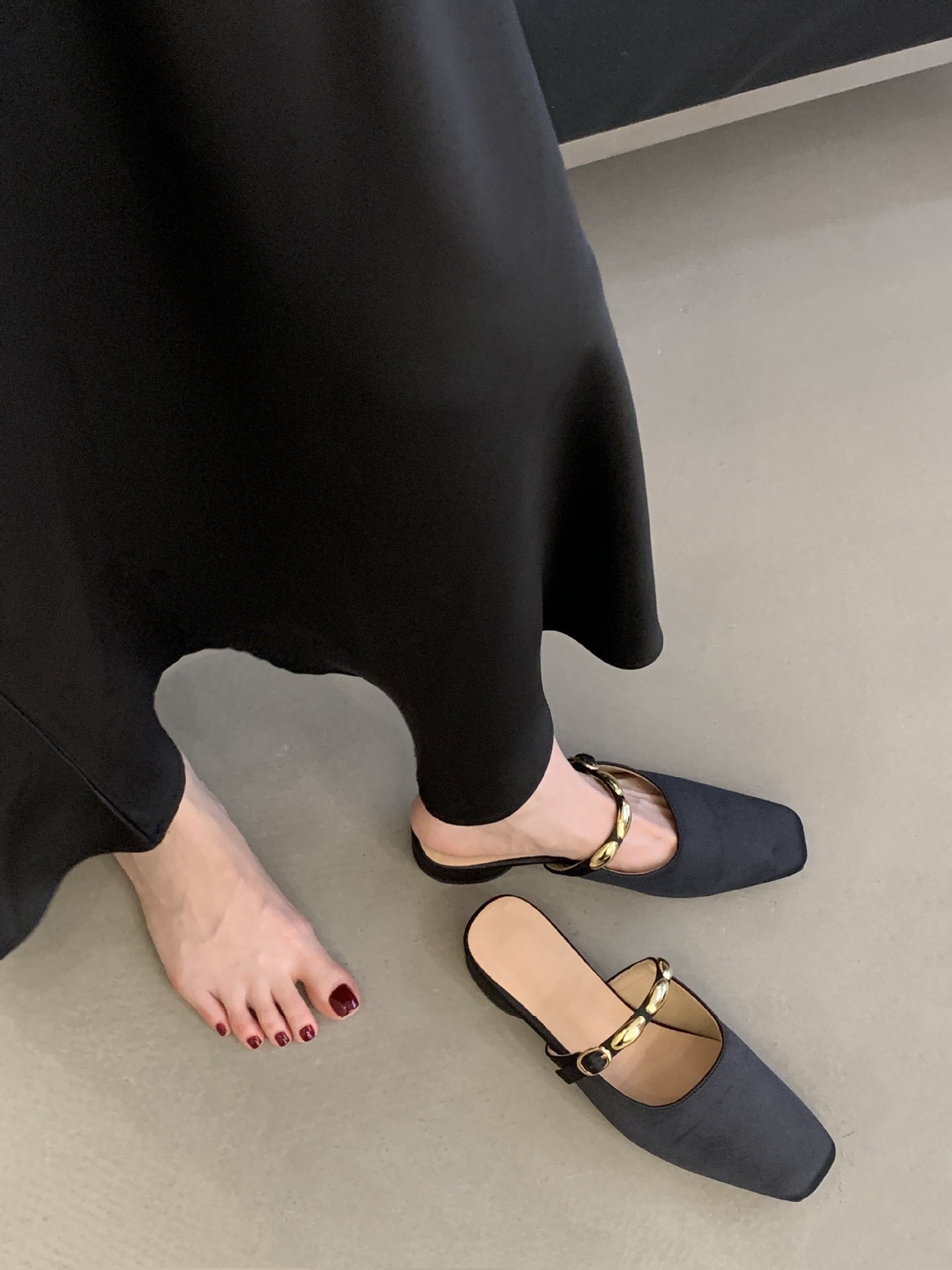 두꺼운 굽 나비매듭 발가락 반슬리퍼 요정 신발 2025 봄 여름 새틴 프렌치 스타일 반슬리퍼스토어 가기