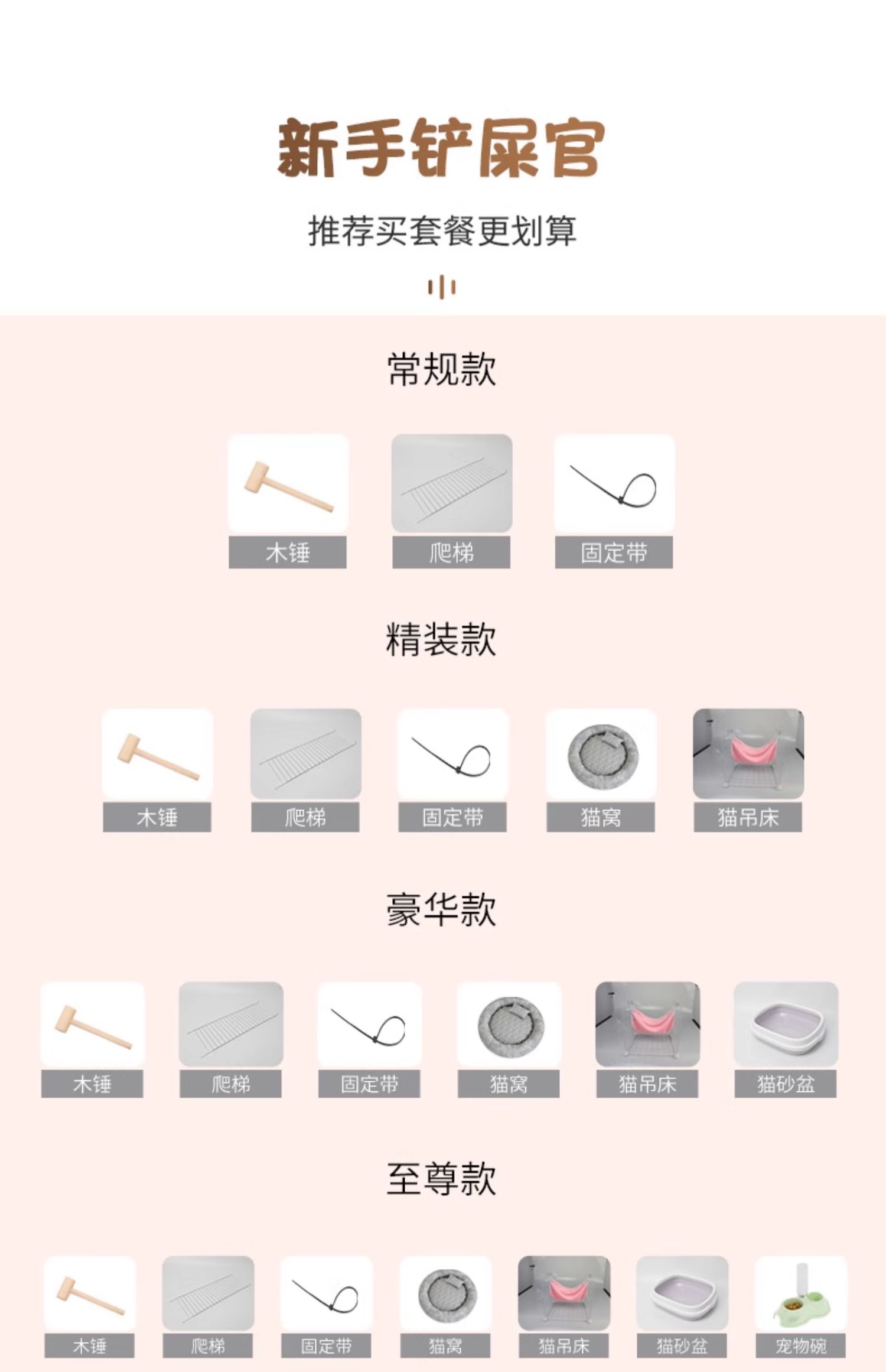 • 럭셔리 모델(일반 모델 + 고양이 둥지 + 고양이 해먹 + 삽이 포함된 고양이 배변 상자)