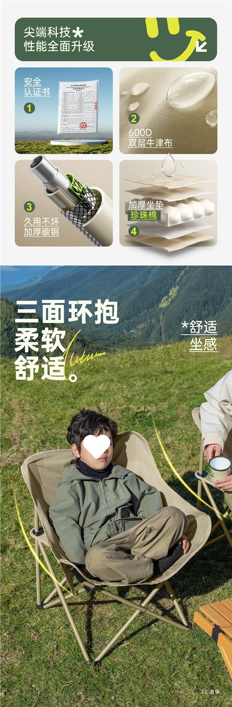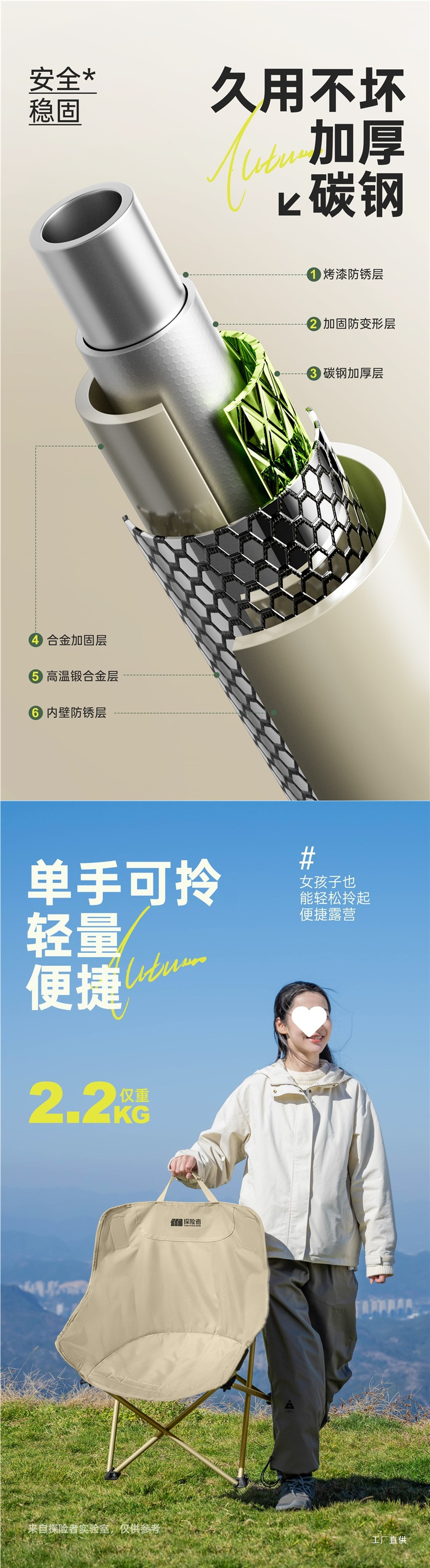 • [럭셔리 라지 카키] 업그레이드된 강화 웨빙 + 두꺼워진 스틸 파이프