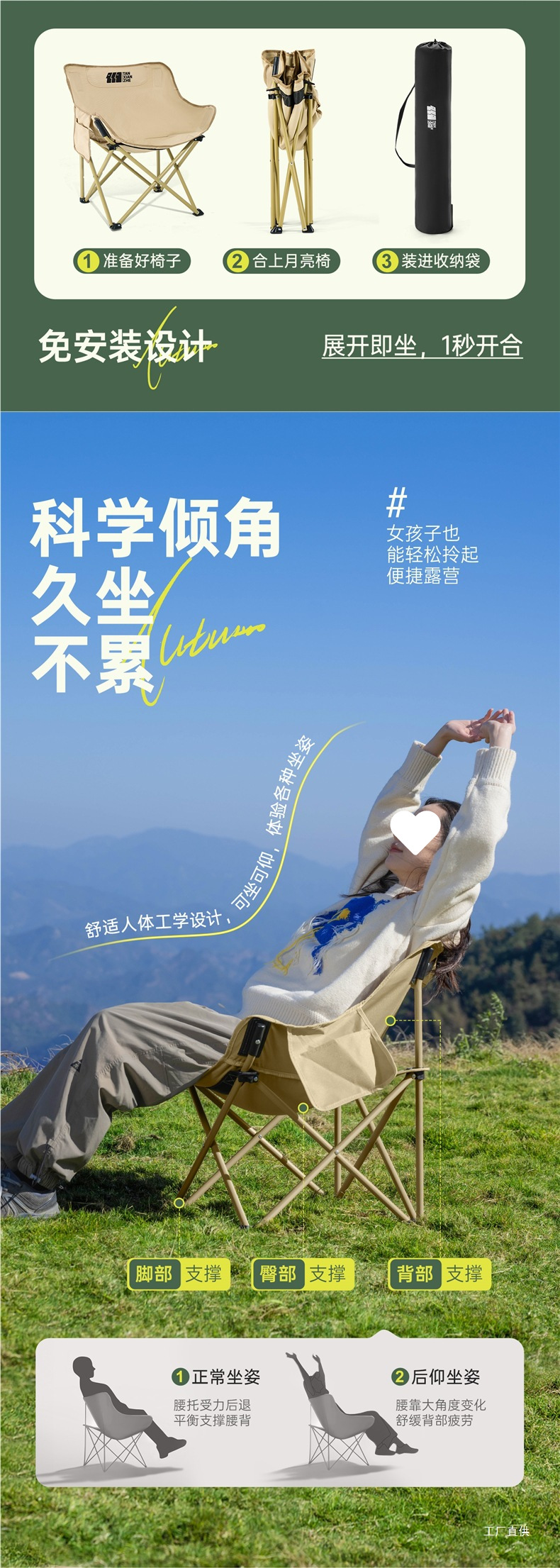 익스플로러 문 의자 캠핑 의자 야외 접이식 의자 휴대용 안락 의자 낚시 의자 해변 의자 피크닉 Xianchi스토어 가기