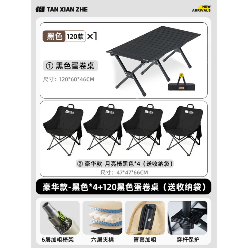 • 럭셔리 모델-블랙*4+120 블랙 에그롤 테이블(수납가방 포함)