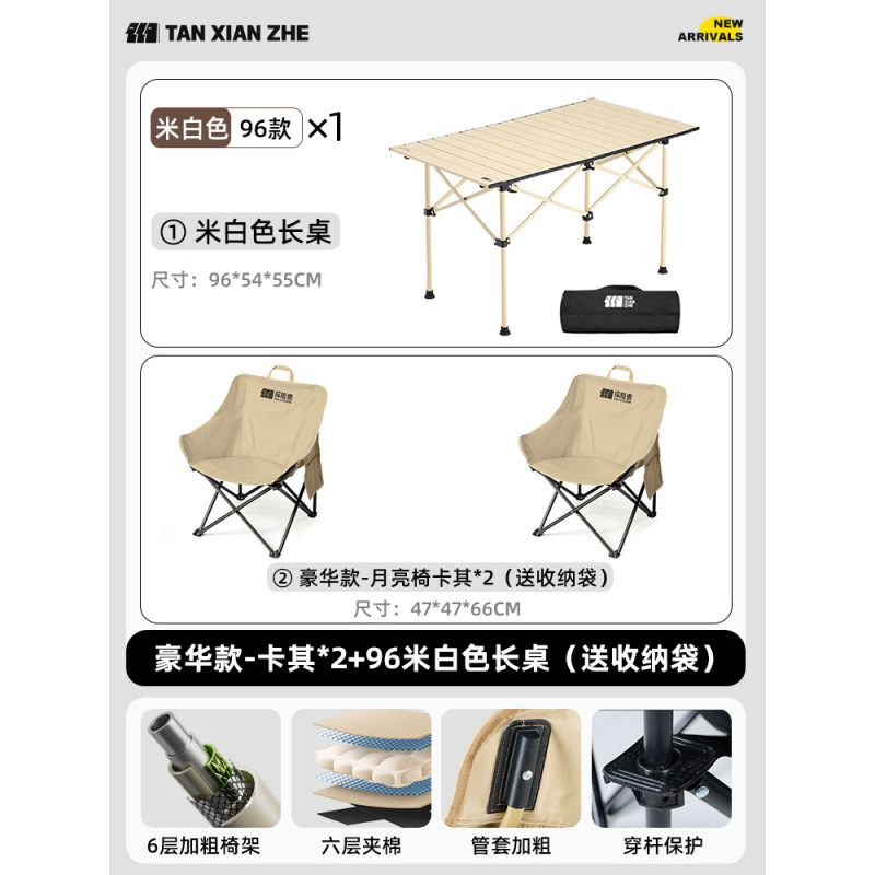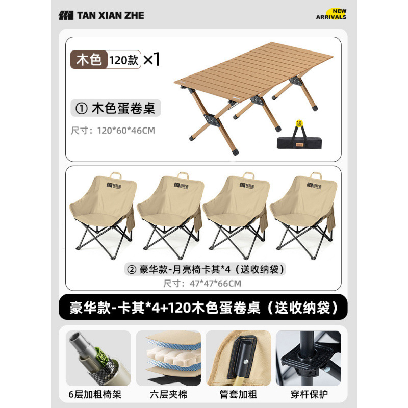 • 럭셔리모델-카키*4+120 원목 에그롤 테이블(수납가방 포함)