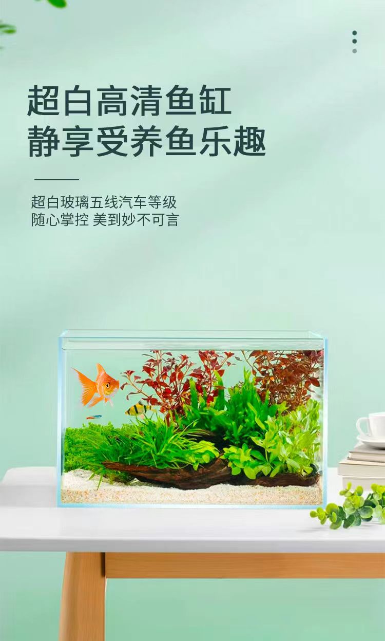 Jingjing 5 라인 초백색 물고기 탱크 2025 새로운 스타일의 거실 작은 데스크탑 생태 조경 금붕어 탱크 수생 식물 탱크스토어 가기