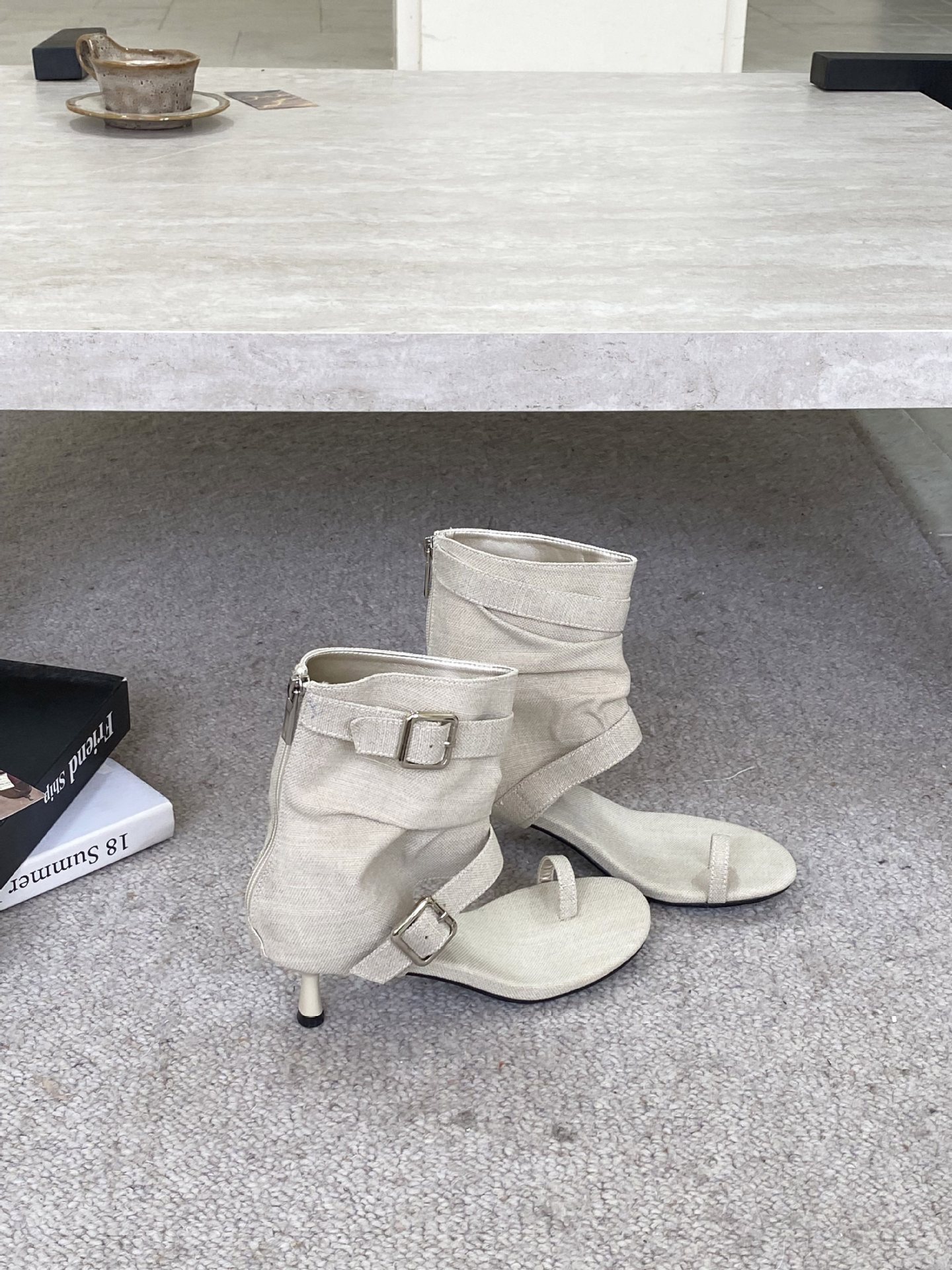 2025 새로운 가을 스타일 라운드 발가락 스틸레토 하이힐 슬리밍 프랑스 패션 섹시하고 아름다운 오픈 토 여성 짧은 샌들