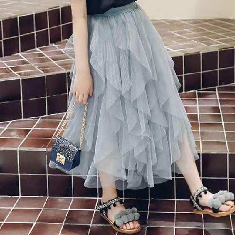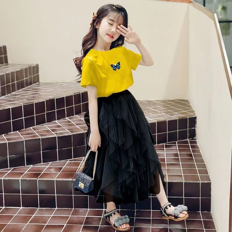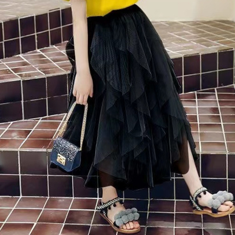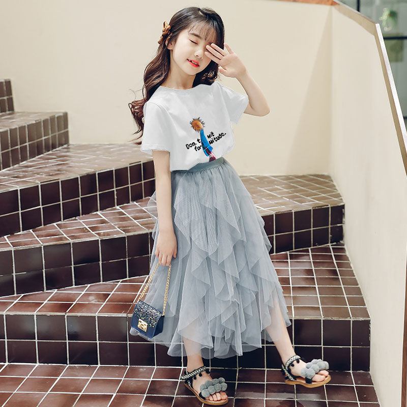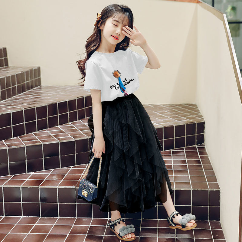 여자 스커트 정장 2025 새로운 공주 거즈 스커트 중대형 어린이 여름 스타일 탑과 스커트 투피스 세트