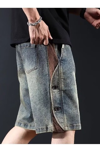 아메리칸 레트로 데님 반바지 남성 2025 여름 신작 루즈 워싱 5부 팬츠 캐주얼 스플라이싱 다용도 팬츠스토어 가기