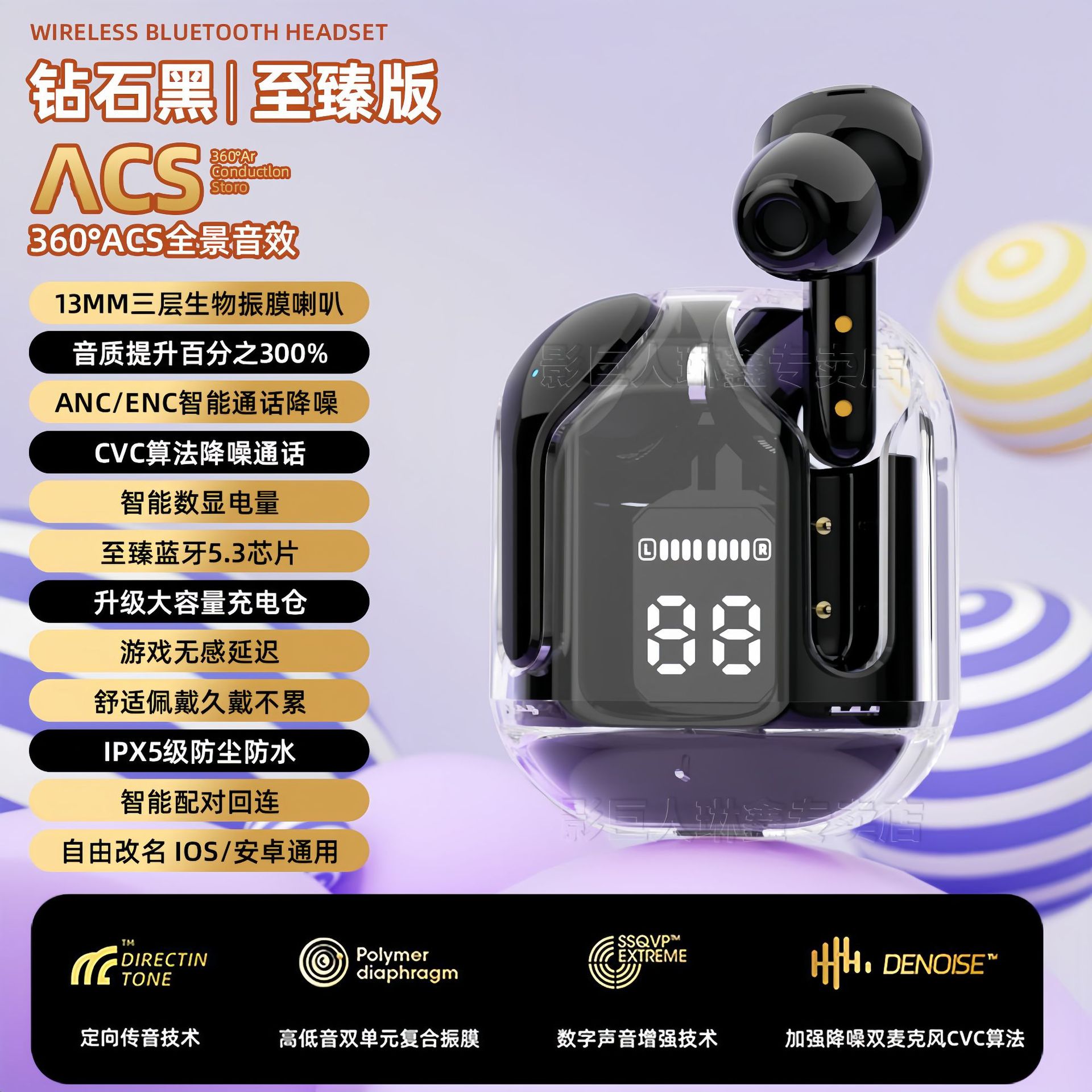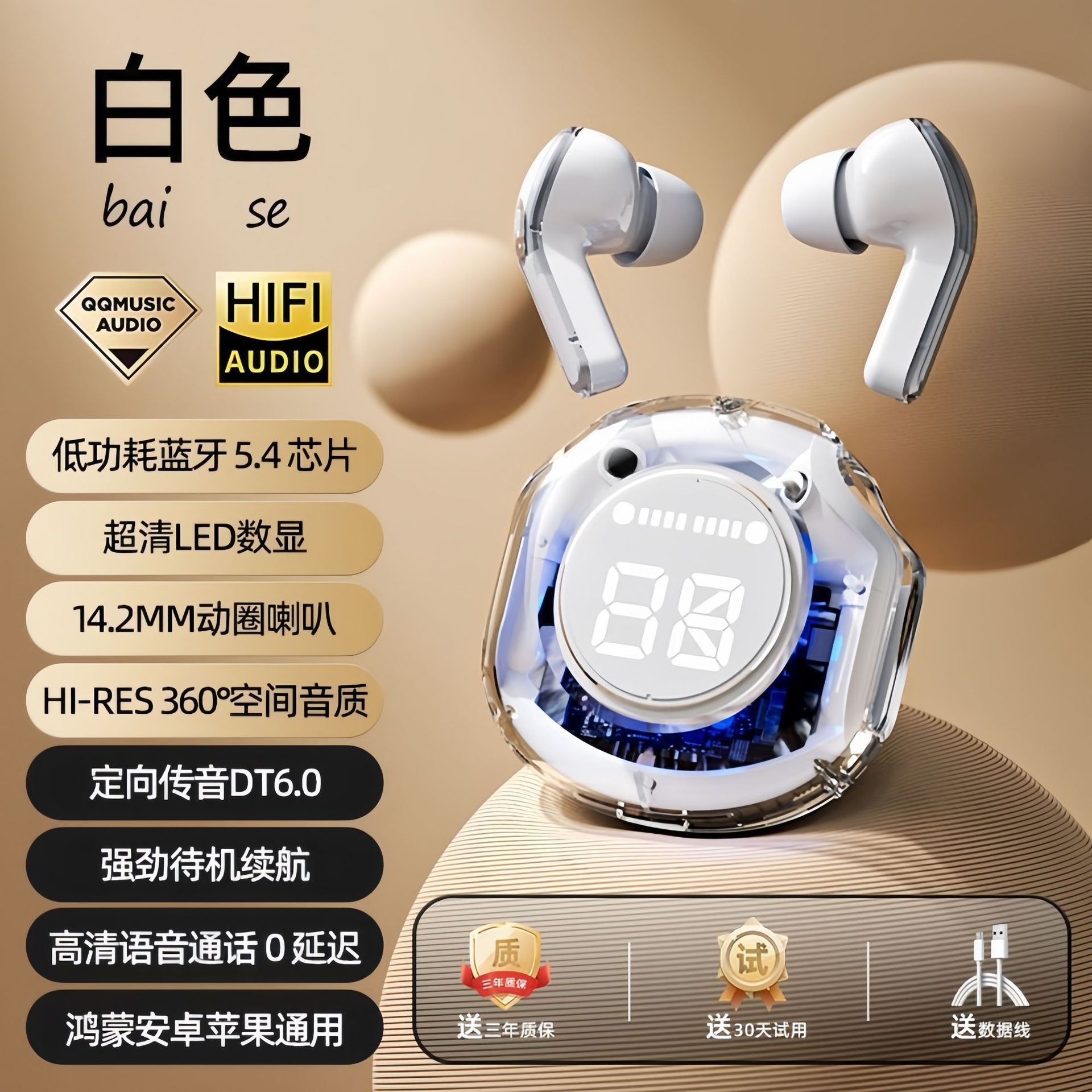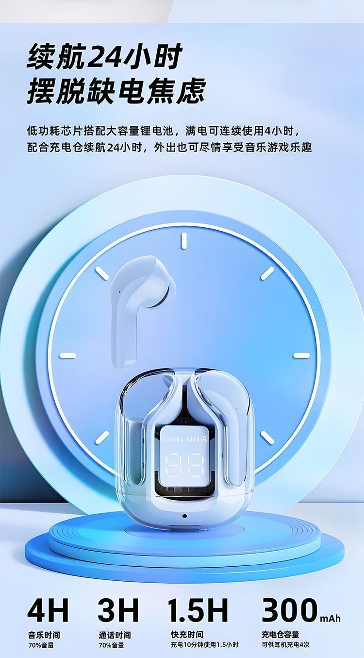 Air31 이어폰형 진정한 무선 TWS Bluetooth 헤드셋 디지털 디스플레이 스테레오 5.3 투명 창 스포츠 게임 핫 스타일