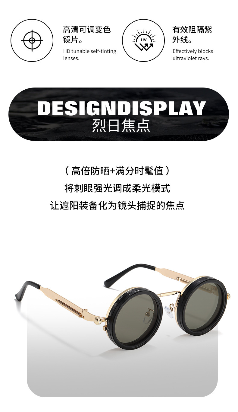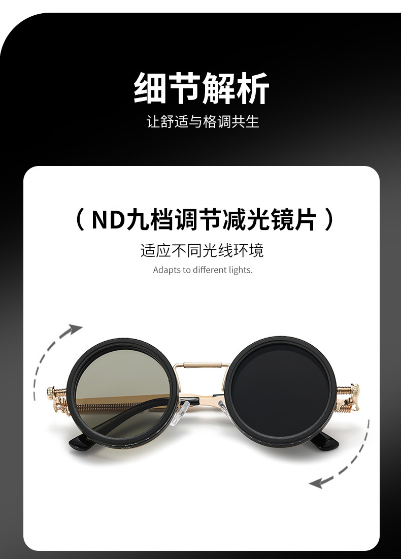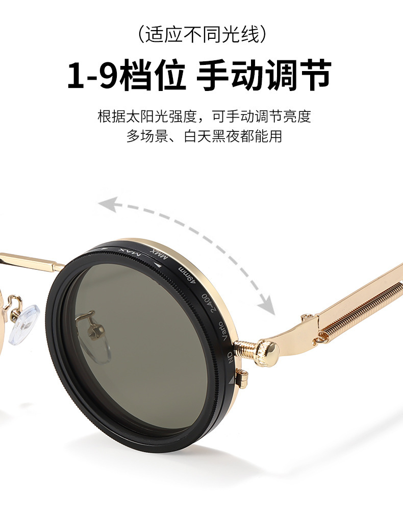 크로스보더 무한 회전 필터 ND 9단계 조절 가능 감광 스팀펑크 선글라스 자외선 차단 선글라스