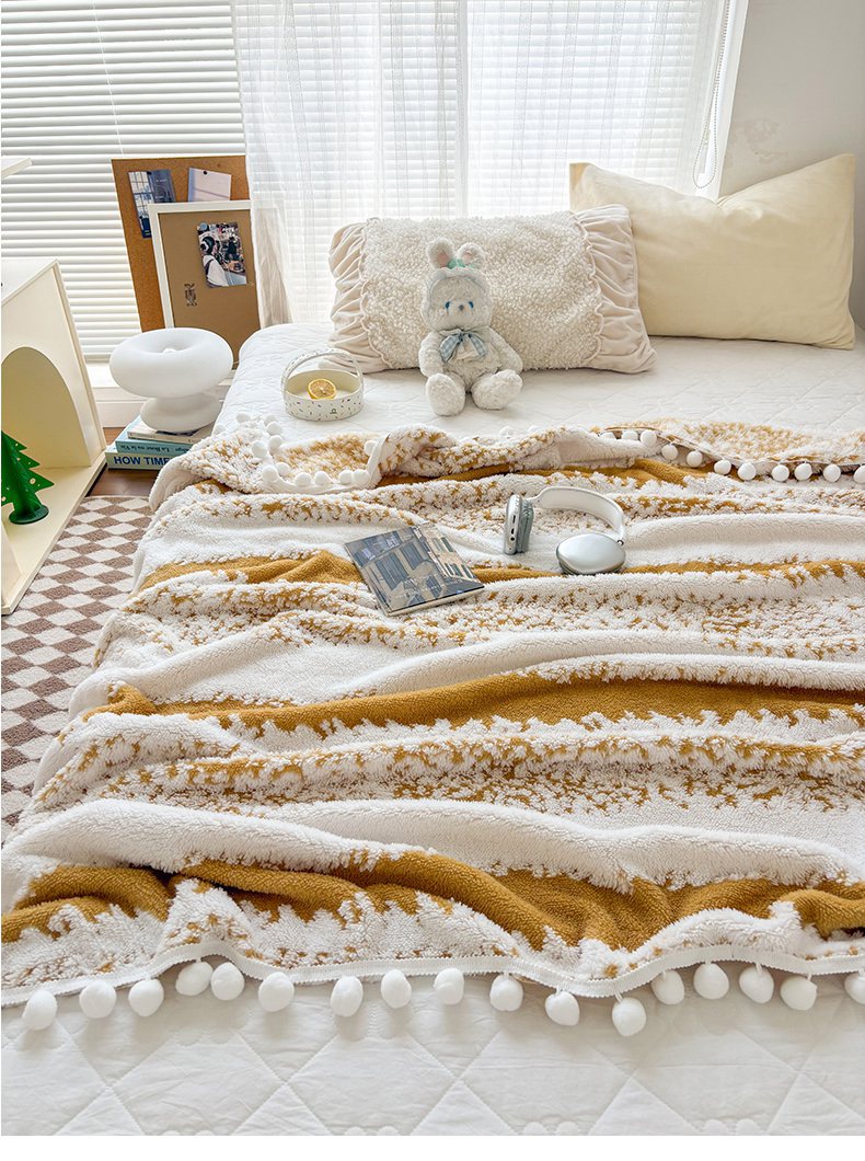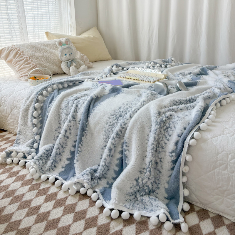 Ins 작은 신선한 양이온 자카드 담요 볼 담요 낮잠 담요 기계 세탁 가능한 소파 커버 담요 침대 엔드 타월 담요