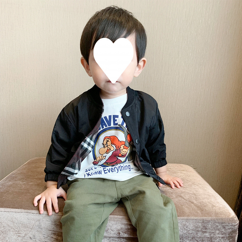 아동복, 남아 코트, 봄, 가을 한국식 체크무늬 아우터, 아동용 리버시블 재킷, 남아용 유행 윈드브레이커스토어 가기