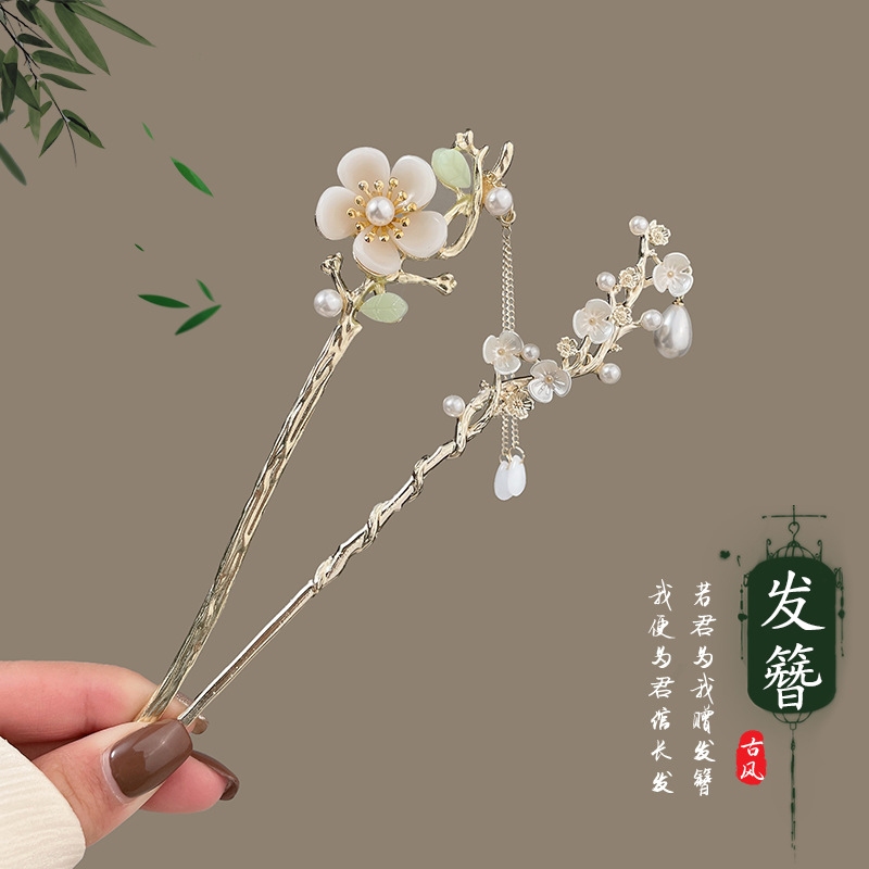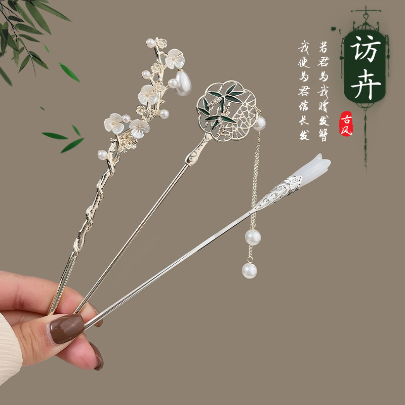 고대 스타일 여성용 머리핀, 고급형, 새로운 중국 스타일 한복 머리핀, 일상 출퇴근 머리핀, 나무 태슬 머리핀, 머리 장식스토어 가기