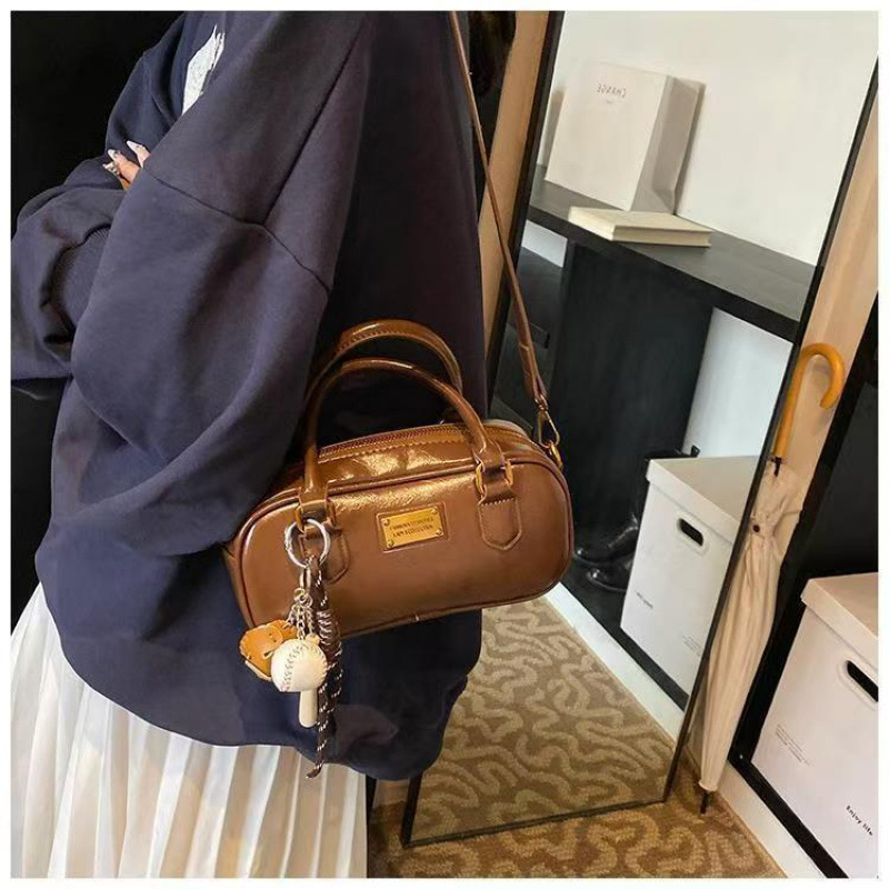 여성을위한 고급 질감의 작은 가방 2025 가을, 겨울 새로운 휴대용 베개 가방 보스턴 디자인 통근 크로스 바디 백스토어 가기