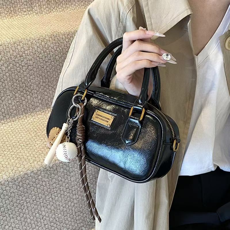 여성을위한 고급 질감의 작은 가방 2025 가을, 겨울 새로운 휴대용 베개 가방 보스턴 디자인 통근 크로스 바디 백